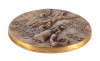 [0F946/X043] Hibátlan állapotú, kétoldalas bronz érem. Egyik oldalon felirat: ACHATIUS BARCSAI DE NAGYBARCSA Másik oldalon felirat: ÉREMGYŰJTŐK HAJDÚ-BIHAR MEGYEI SZERVEZETE 1925 - 1988 Jelzés: TS TÓTH S. Szélesség: 4.2 cm Súly: 0.03 kg Tóth Sándor (1933) szobrász szobrász Születési hely: Miskolc Születési dátum: 1933     Mesterei: Hincz Gyula, Pap Gyula, Barcsay Jenő, Kisfaludi Strobl Zsigmond. 1951-1959: Magyar Képzőművészeti Főiskola, mesterei: Hincz Gyula, Pap Gyula, Barcsay Jenő, Kisfaludi Strobl Zsigmond. 1959-ben a művészeti főiskolák Tanácsköztársasági Pályázatának nagydíját nyerte el. 1959-1960-ban a Művészeti Alap ösztöndíjával a hódmezővásárhelyi telepen alkotott. 1961-ben Szegeden telepedett le és 1974-ig a Művészeti Gimnázium tanára. Ezt követően Nyíregyházán kapott műtermet, ahol alkotótevékenysége mellett eredményes szakköröket vezetett. Egy évtizedig volt a szabolcsi művészek szervezetének titkára. Számos szegedi és nyíregyházi szobrászművészt indított el a pályán. 1977-ben kezdeményezte a Nyíregyháza-sóstói Nemzetközi Éremművészeti és Kisplasztikai Alkotótelep alapítását, az Alkotótelepi Tanácsnak indulástól fogva tagja. Főiskolás éveiben 1954-től nyaranta a hódmezővásárhelyi, 1969-ben a zsennyei, 1971-1975 között a villányi, 1973-ban a kecskeméti és oronskói (PL), 1974-1976 között, 1983-ban, 1985-ben, 1991-ben a nyíregyháza-sóstói, 1975-ben a burgaszi (BG), 1976-ban a potsdami (Német Demokratikus Köztársaság) és a zamosci (PL); 1977-ben a rzeszówi (PL), 1988-ban a palangai (Litvánia), a dzintari-i (Lettország) és a zsdennyevoni (UA), 1988-ban a körmöcbányai, 1992-ben a klaipédai (Litvánia) művésztelepen dolgozott. Eredményes munkásságát számos elismerés jelzi: 1962: Szegedi Nyári Tárlat III. díja; 1963: Szegedi Nyári Tárlat II. díja; 1964: Alföldi Tárlat díja, Gyula; 1968: Szegedi Nyári Tárlat díja; 1969: Szocialista Kultúráért; 1970: Békéscsabai Alföldi Tárlat Nívódíja; 1972: Szegedi Nyári Tárlat díja; Szabadka Város díja; 1973: Békéscsabai Alföldi Tárlat Munkácsy Emlékérme; 1974: Firenzei Giorgio Vasari Nemzetközi Éremverseny 3. díja; 1975: Felszabadulási Pályázat III. díja, Hódmezővásárhely; 1982: Munkácsy-díj; 1984: Szegedi Nyári Tárlat díja; 1986: a Magyar Éremgyűjtők Egyesülete az év legszebb egyesületi érme kitüntetése; 1989: Iserlohn Város díja; 1991: VI. Pál pápa ezüst Emlékérme; 1995: Ravenna Város Aranyérme; 1996: Hatvani Portré Biennálé díja; 1997: Hadtörténeti Múzem Kiállítási díja; Szeged Megyei Jogú Város Polgármesteri Hivatala díja. Az 1986-1987-es tanévben az Egri Tanárképző Főiskola tanszékvezető főiskolai tanára volt. Első kiállításain a szobrászati alkotások mellett festmények és rajzok is helyt kaptak. Rézlemez-domborításai és kisplasztikái témáit leginkább családja életéből vette. Realista stílusú - ritkán absztrakt felfogású (Madarak és halak sorozat, 1972) - alkotásai leggyakrabban bronzból készülnek, de jól bánik más anyagokkal is. Korábban gyakran készített terrakotta, mészkő-, márvány- és faszobrokat. Számos köztéri munkát készített, melyek között emléktáblák, emlékművek, büsztök, önálló térplasztikák sorakoznak. Legmonumentálisabb alkotásaként tarjuk számon a máriapócsi Bazilita templom kapuját. Vert és öntött érmeket is készít. Jelentős emlékérmeinek és orvosi vonatkozású érmeinek száma. Forrás: artportal.hu