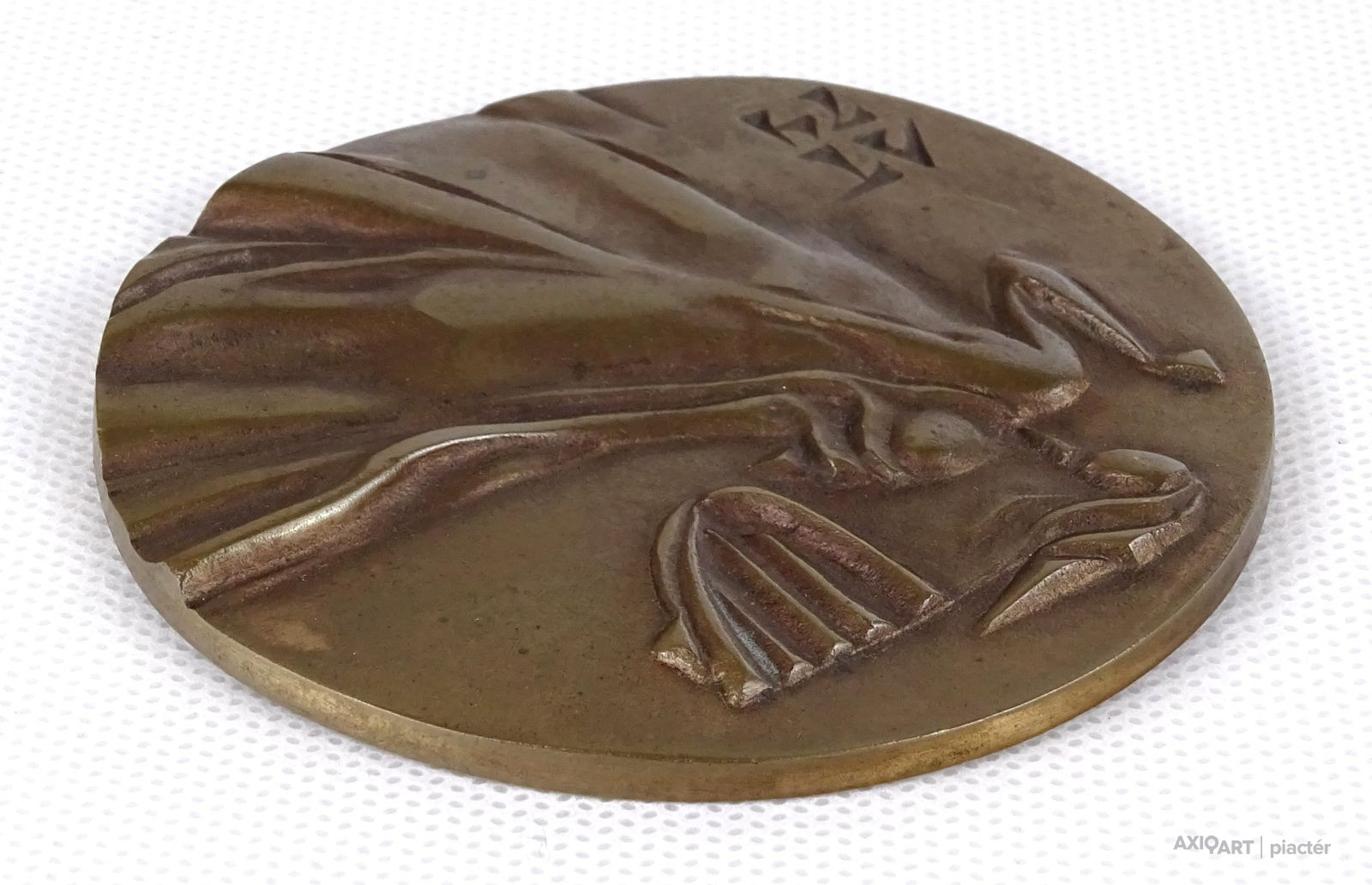 Szép állapotú kétoldalas plasztikus bronz plakett, emlék plakett.