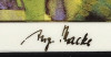 [1Y029/Z018] Olaj farost festmény, üveglap mögött, hibátlan képcsarnokos keretben. Hátoldalán Képcsarnok Vállalat papír címkéje: A művész neve: SCHÉNER MIHÁLY A kép címe: TÁJ Magasság: 66.5 cm Szélesség: 86 cm Súly: 6.54 kg Schéner Mihály festő, grafikus, szobrász, keramikus, bábtervező Medgyesegyháza, 1923-01-9 Elhalálozott: Budapest, 2009. május 11. Honlap: http://www.kormendigaleria.hu/kiadvany.html 1942-1947: Magyar Képzőművészeti Főiskola, tanára: Rudnay Gyula. 1978: Munkácsy-díj; 1984: érdemes művész; 1989: kiváló művész; 1995: Kossuth-díj. 1992-től a Magyar Művészeti Akadémia, 1993-tól a Széchenyi Irodalmi és Művészeti Akadémia tagja. 1956-ig tanított. 1982: Nagyatádi Faszobrász Alkotótelep, 1985: Nemzetközi Acélszobrász Alkotótelep, Dunaújváros. A stílusában felismerhető, mégis sokféle műtárgyat létrehozó ~ gazdag, állandóan alakuló életműve a folyton változó világban helyét kereső, az alkotói szabadságot megvalósító XX. századi képzőművész példázata lehetne. Magát expresszív-szürrealista alkotónak nevezi. Egyaránt dolgozik festékkel, textillel, fával, fémmel. Rajzol, szerkeszt, farag, épít, gyúr, varr és ragaszt, felhasználja a mézesbábok öntőformáit. Festő, rajzoló, textilszobor- és bábkészítő, fazekas, asztalos, esztergályos. Háromlépcsős folyamatban gondolkozik: rajzban tervez, majd fest, szobrot készít, “formába önt”, mindig a végső plasztikai megoldást keresi. Ami állandó és mégis játékosan változékony megjelenésű Schéner művészetében, az a gyermekkori emlékek által meghatározott népi mesterségek iránti tiszteletet kifejező motívumkincs, a tárgyi folklór formakészlete, amely már-már kézjegyként ismétlődik munkáin. Mitologikussá nőtt képzelete új lényeket teremt, pl: a Pigulát, amely disznótestű, emberfejű teremtmény. Schéner festményein a szürrealista motívumokat konstruktív szerkezetbe rendezi, a geometriát és az organikus természeti motívumokat egyaránt beépíti műveibe. A népi, népművészeti formakincsből merített lovas huszárok, betyárok, szegénylegények cifra szűr mentéje, piros csákója, fekete csizmája, az önálló életet élő zsinórdíszek és mézeskalács bábok, a kiskocsik a gyermekkori vásárok, búcsúk színes forgatagába vezet. A primér motívumokat aztán felváltják a vastagon felhordott felületbe karcolt jelek, vonalhálózatok, amelyek a játszó gyermek homokba rajzolt ábráit, a pásztorember fába vésett üzeneteit, az ősember barlang falába rótt mágikus jeleneteit idézik meg. A művész pillanatnyi érdeklődésének megfelelően a színek búvópatakként tűnnek el és jelennek meg ismét. A 60-as években leginkább a formákkal való játék érdekelte, a festmények felülete egyre gazdagodott: a táblaképek felületén applikációk jelentek meg, vagy lemállasztott rétegek hagyták maguk után hiányukat, motívumok nélküli ősformák, archetipikus képzetek bukkantak fel művészetében. A véletlenszerűnek látszó rétegekkel való játék azonban tudatos komponálás eredménye, amely később nyilvánvaló ritmusnak és formai szerkesztettségnek adja át a helyét, mint a Törvénytáblák c. sorozaton. A különböző művészi kifejezési formák egymásra termékenyítő hatással vannak, át- meg áthatják egymást. Textilszobrai, amelyekkel új műfajt teremtett, ugyanazzal az automatikus, expresszív-szürrealista módszerrel készülnek, mint festményei. A hagyományosan a népművészetben alkalmazott anyag, a filc lehetőséget ad a népi formakincs felelevenítésére, amely azonban a művész különös szürrealista átiratában jelenik meg. A szívekkel kivarrt, zsinórdíszes Posztókotlós c. művén mézesbábok lógnak, hátán huszárok lovagolnak. Egész sor textilből készült kéz-plasztikát alkot, amelyeket az ujjakra rávarrt díszekkel öltöztet, személyesít meg. A színes-különös világból aztán ~ újra puritán képi és formai rendbe juttatja el a nézőt, majd nemsokára tépett, gyűrt, vágott, csorgatott, repedezni hagyott szenvedélyesen vonagló képi felületeket hagy hátra. Schéner készített apró gyermekjátékokat, térstruktúra-tereket, mászókákat is. A magyar népi formák mellett szürreális játékaiban gyakran alkalmaz görög mitológiai alakokat, “elkentaurosodott” lovakat, Gorgó-fejeket, sellőket, hárpiákat, Pán-ábrázolásokat. Schéner nemcsak saját művészetéről publikál, hanem művésztársairól is számos írása jelenik meg, elsősorban az Új Auróra c. folyóiratban, amelynek egy ideig főmunkatársa volt. Irodalom kiállítása, Magyar Építőművészet, 1962/4. Húsz év után, Művészet, 1965/4. BOZÓKY M.: ~, Tiszatáj, 1968/5. PERNECZKY G.: Nincs uborkaszezon, Élet és Irodalom, 1969. augusztus 8. BARÁNSZKY-JÓB L.: ~, Művészet, 1969/9. LÁSZLÓ GY.: ~ kaposvári kiállítása, Jelenkor, 1969/4. MAJOR M.: Pásztorok, betyárok, huszárok - kezek, Tükör, 1970. szeptember 15. FRANK J.: Bemutatjuk ~t, Élet és Irodalom, 1972. május 6. ról kiállítása ürügyén, Képzőművészeti Almanach, Budapest, 1972 Sötétkék kokasok, Élet és Irodalom, 1973. szeptember 9. MAJOR M.: ~ játékai, Élet és Irodalom, 1974. július 27. BARTA J.: Egy különös művész, Alföld, 1974/6. VADAS J.: Szárnykészítők, Élet és Irodalom, 1975. október 4. JUHÁSZ F.: A halál ellen játszani, Élet és Irodalom, 1975. május 17. PAP G.: Kincsek és műkincsek, Művészet, 1975/6. P. SZŰCS J.: Az utak kettéválnak, Művészet, 1978/3. Békési művészet, Művészet, 1978/7. SZAMOSI F.: ~ [kismonográfia], Budapest, 1978 VADAS J.: Játék a játékkal, Élet és Irodalom, 1979. augusztus 18. NÉMETH L.: ~ műveiről, Művészet, 1979/4. MIKLÓS P.: Mit akar ez a múzeum?, Művésze
