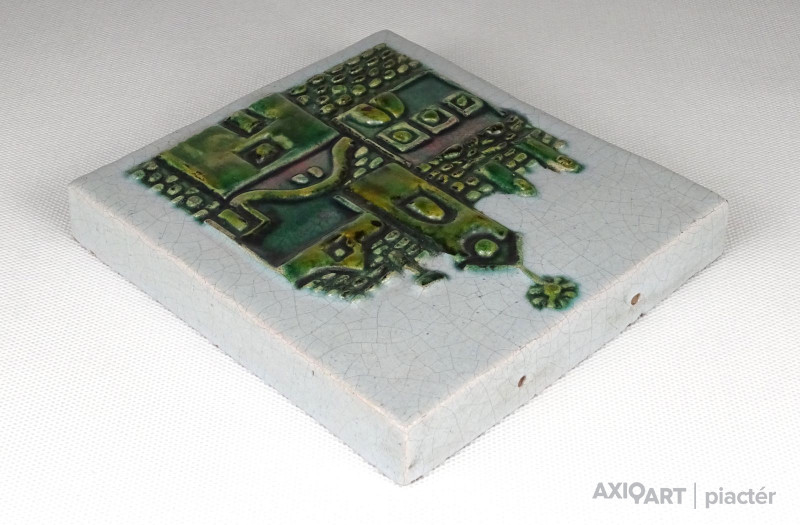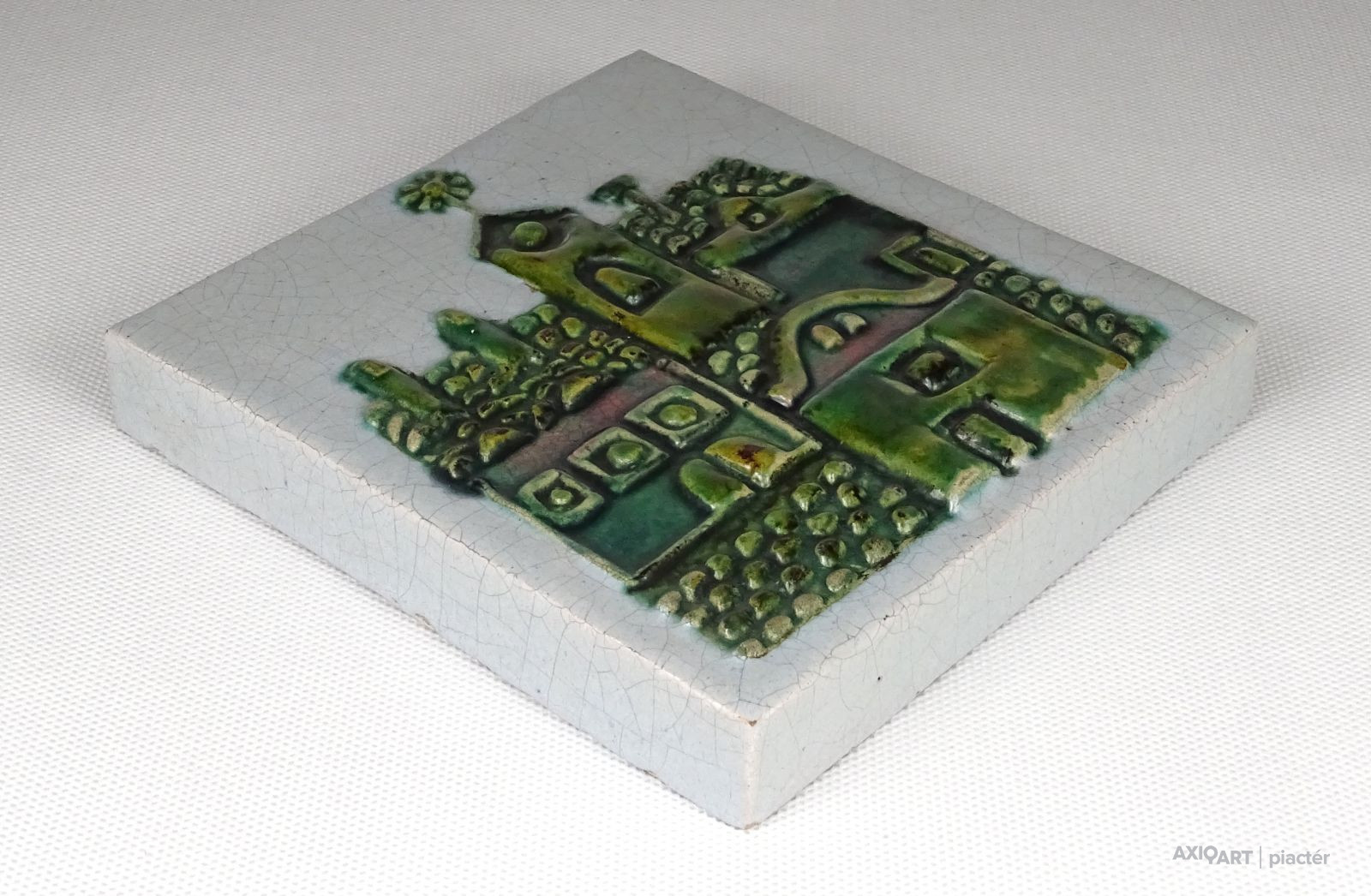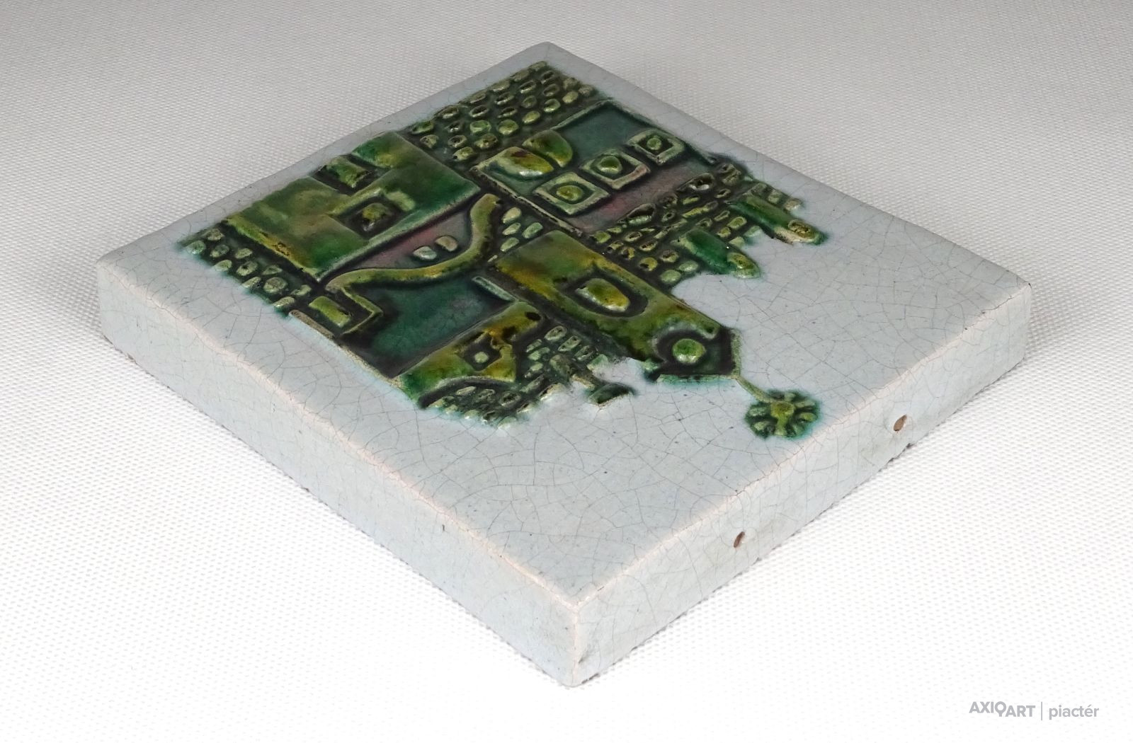 B. Urbán Teréz : Zöld mázas fali kerámia 14 x 13 cm