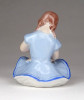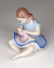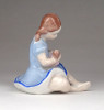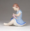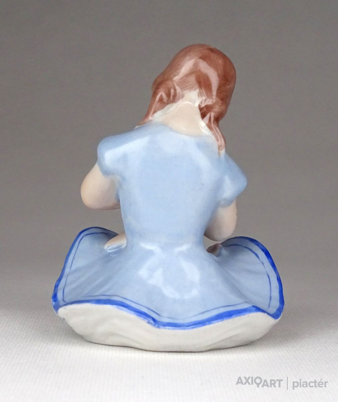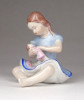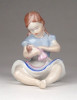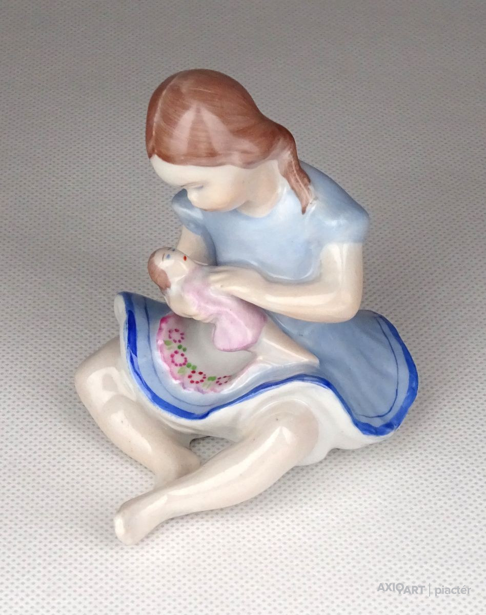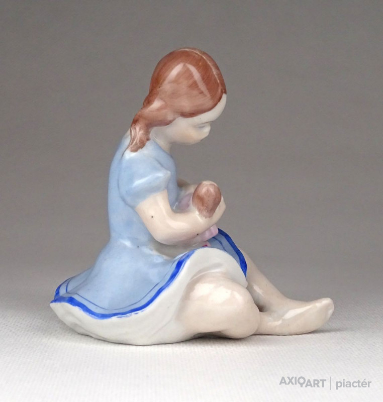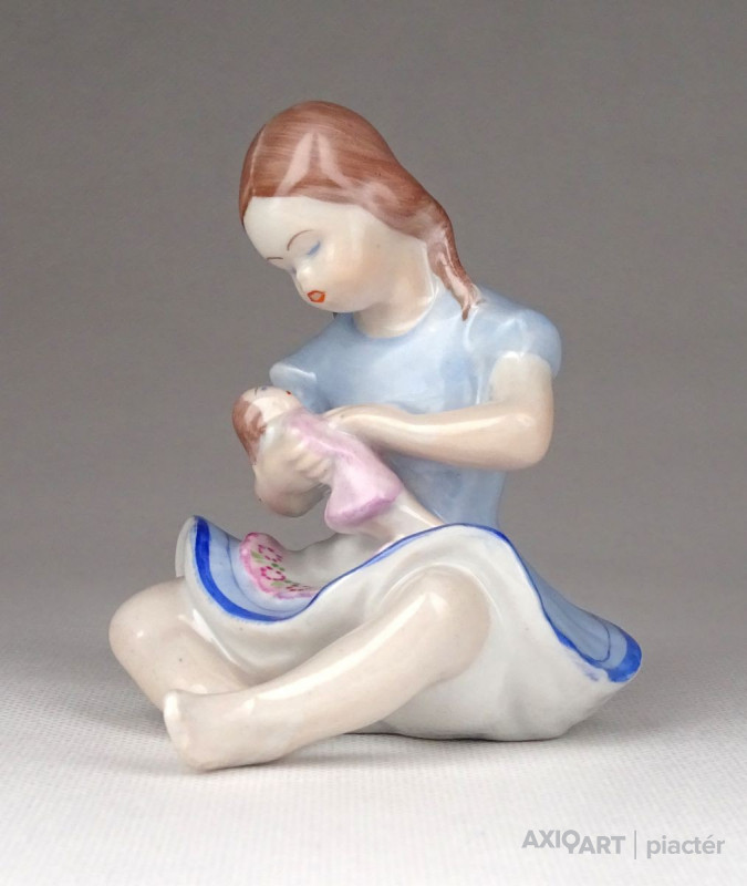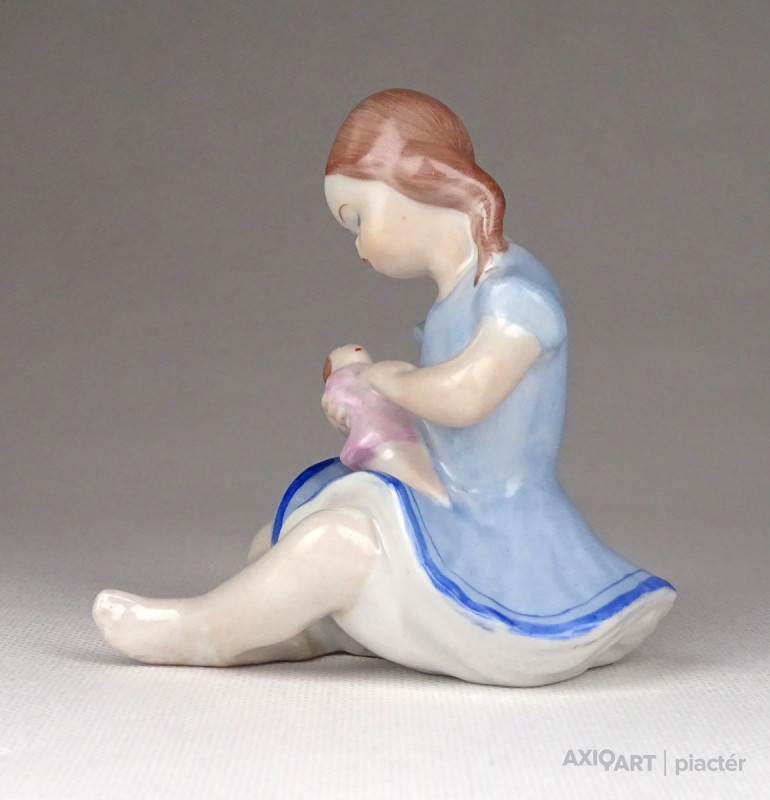 Hibátlan állapotú, jelzett porcelán figura. Ülő, babával játszó kislány porcelán figura.