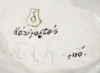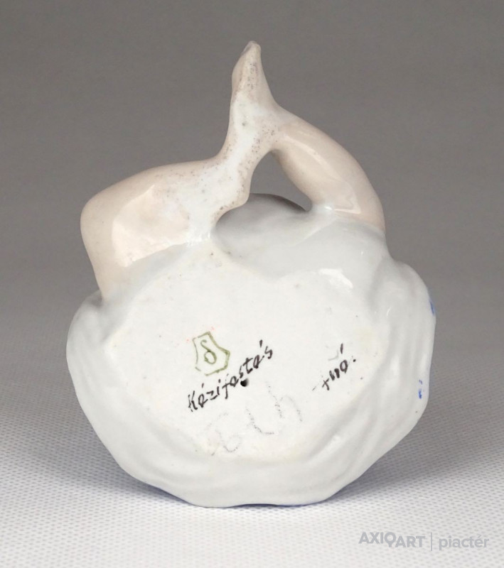 [1F076/X198] Hibátlan állapotú, jelzett porcelán figura. Ülő, babával játszó kislány porcelán figura. Alján zöld Drasche márkajelzés és felirat: KÉZIFESTÉS Kézifestés monogramja: JNÉ Magasság: 8.5 cm Szélesség: 7 cm Hosszúság: 8.8 cm Súly: 0.12 kg
