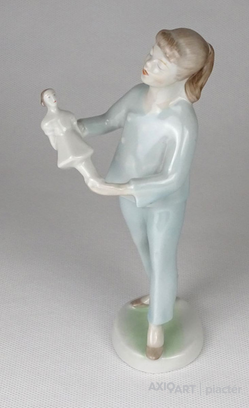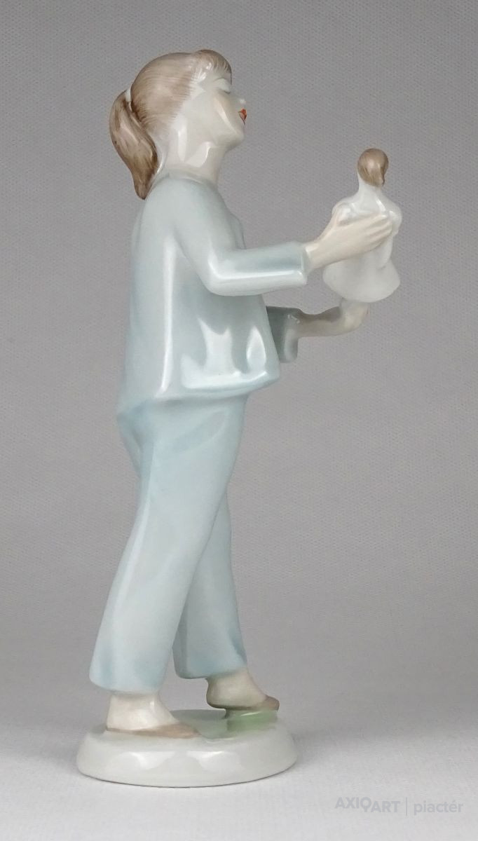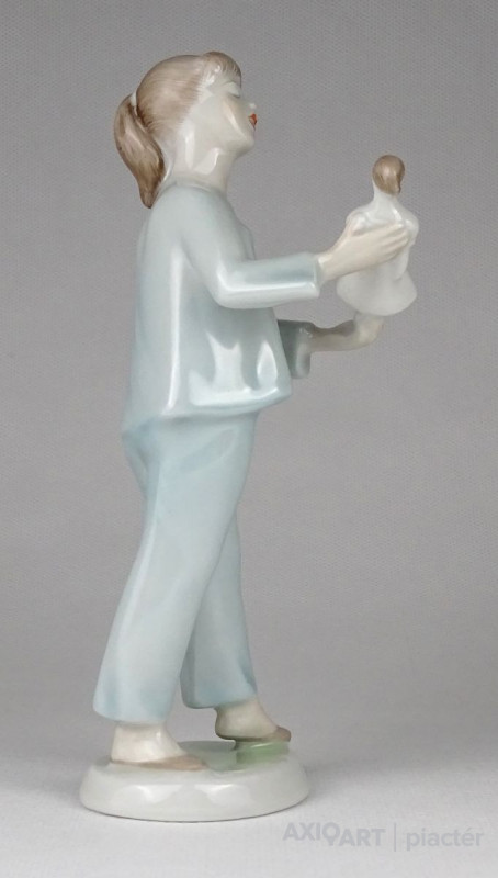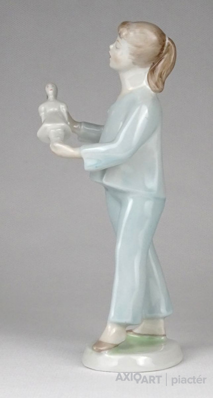 Hibátlan állapotú, jelzett porcelán figura. Babával játszó kislány porcelán figura.
