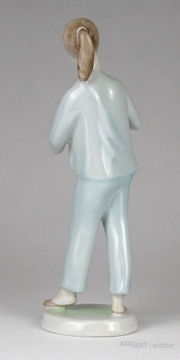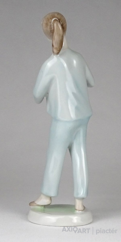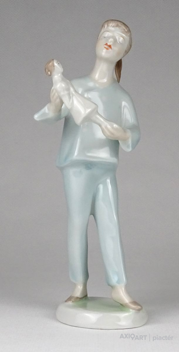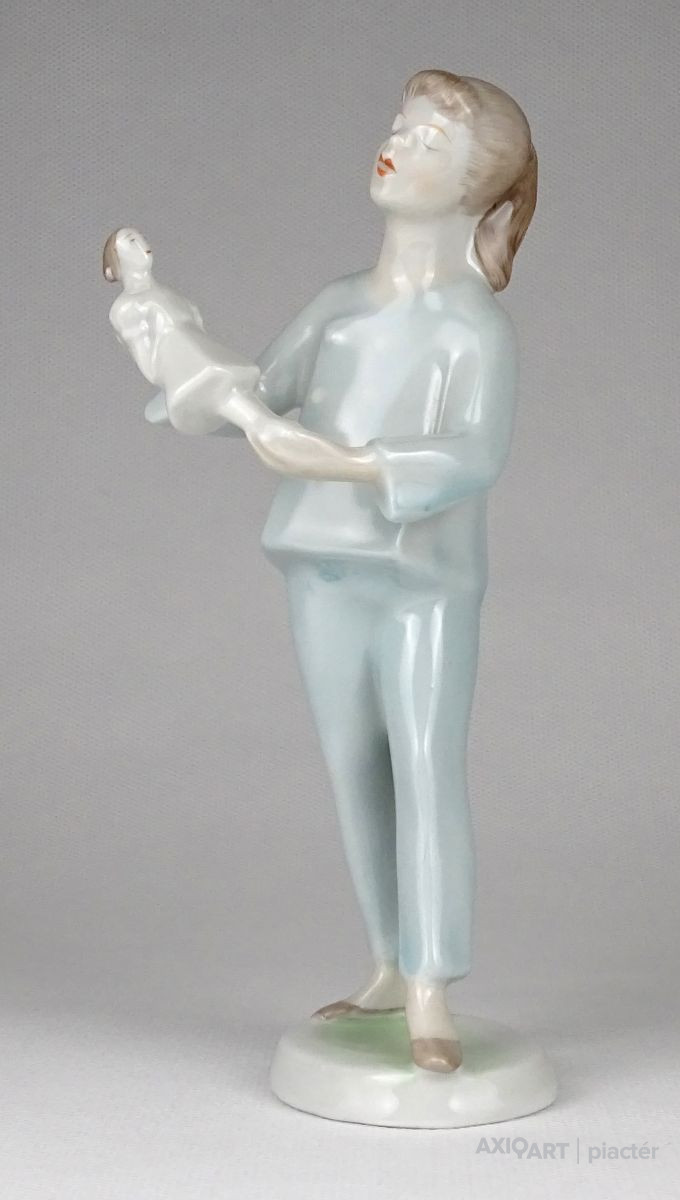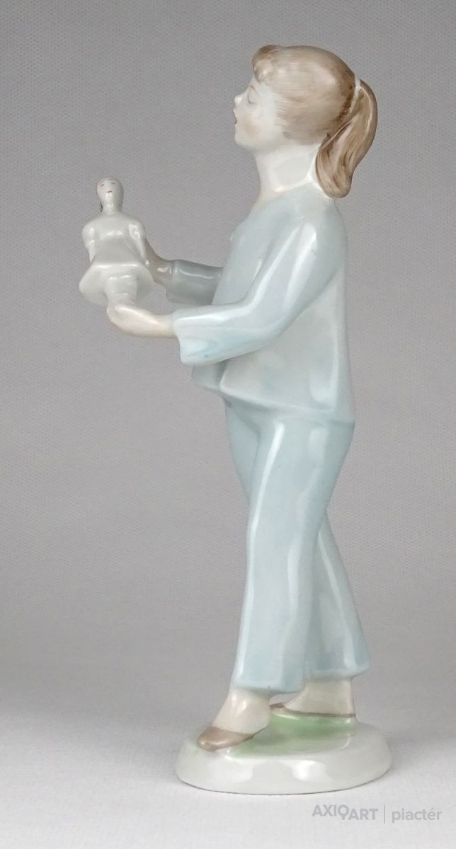 Babázó kislány Hollóházi porcelán figura 17 cm