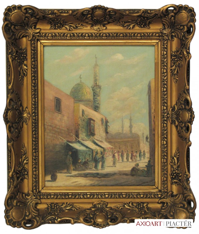 [FK3334/Bp404/30] A kép mérete: 51 x 42 cm keret nélkül. Készült: Olaj, Vászon A kép Bácskay I. jelzéssel, magyar festő, 1940 körül alkotása. Jelezve Jobbra lent "Bácskay I. Cairo" A festmény jó állapotban van. Keret: Ép