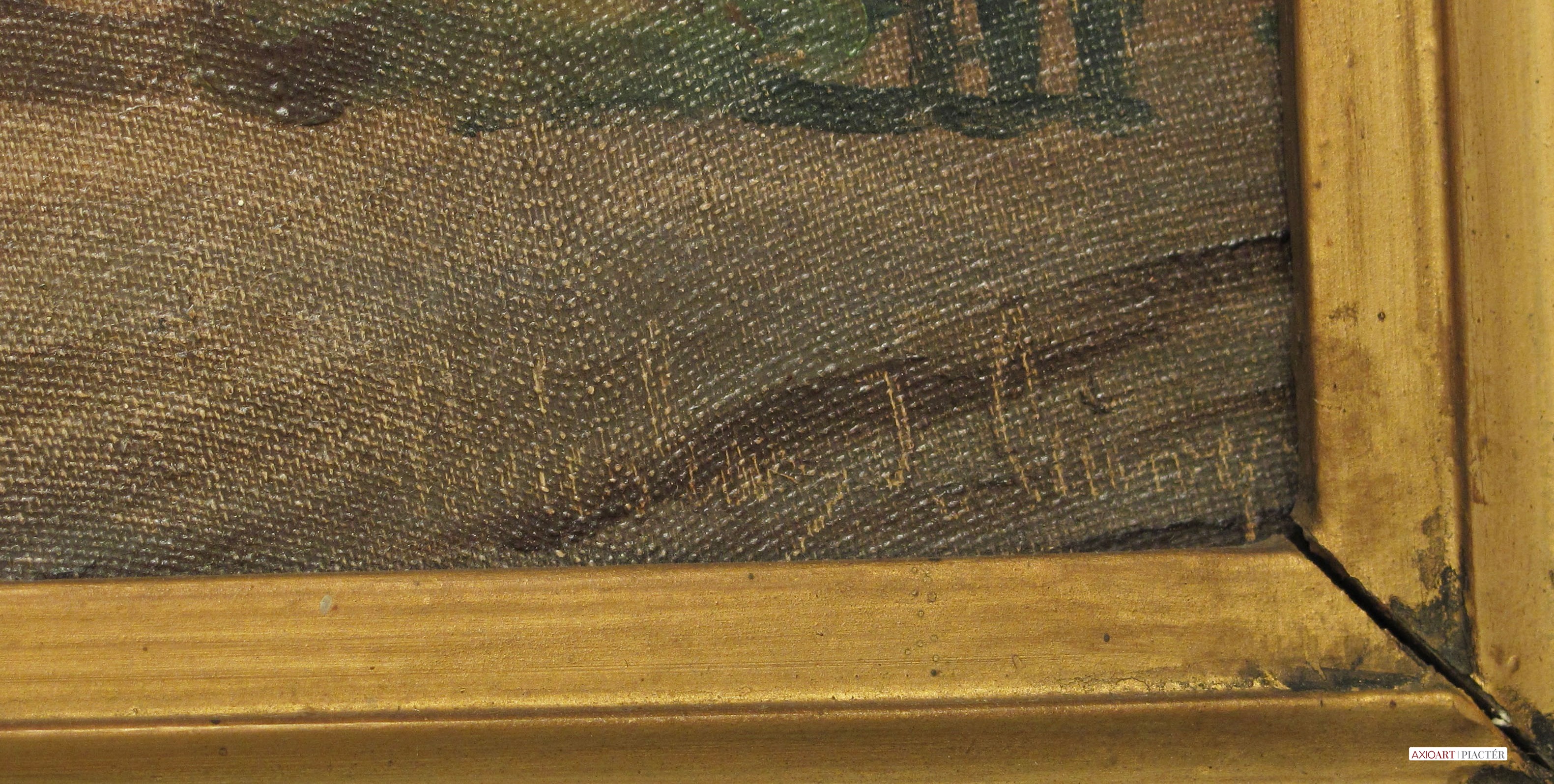 [FK3258/Bp47/17] A kép mérete: 50 x 60 cm keret nélkül. Készült: Olaj, Vászon A kép Szilvásy Margit (Sajókaza, 1898, Budapest, 1977) alkotása. Jelezve Jobbra lent "Szilvásy 954" A festmény jó állapotban van. Keret: Ép A festmény hátoldalán a Képcsarnokvállalat raglapja látható. Magyar festők és grafikusok életrajzi lexikona I-II. Festő. 1936-38 között a budapesti Iparművészeti Iskolában Orbán Antal, Domanovszky Endre és Lux Elek növendéke volt. 1938-42 között stúdiumait a Képzőművészeti Főiskolán végezte, ahol Szőnyi István és Elekfy Jenő irányítása mellett tanult. Első egyéni kállítását 1942-ben rendezte a Műbarát Galériában. Ezt követően a Fókusz Galériában, a Képcsarnokban, a Derkovits Teremben, az Ernst Múzeumban, Salgótartjánban, Helsinkiben, Orivesiben és Mentonban mutatta be önálló tárlaton műveit. Csoportos rendezvényeken a Műcsarnokban, a Nemzeti Szalonban, az Ernst Múzeumben, Sárospatakon és Egerben vett részt. Több európai országban járt tanulmányúton. Még a főiskola megkezdése előtti időkben Sárospatakon népművészeti alkotásokat tanulmányozott: a népi motívumkinccsel kapcsolatos élményeit későbbi művészpályájára nézve is fontosak voltak. Kezdeti alkotásait Rippl-Rónai József finom, visszafogott színvilágú periódusában keletkezett műveinek hatását mutatják. Későbbi munkáin palettája gazdálkodást, kiszínesedést mutat. Érett korszakában keletkezett munkáinak többsége figurális kompozíció. Képein főleg városi alakokat és munkásokat örökített meg. Készített portrékat (Szabó Lőrinc), tájképeket, csendéleteket is. Sz. páratlan színérzéke, festői alakítókedve, impulsív jelleme, tónusérzéke és természetelvűsége, főként a csendélet és a tájkép műfajában érvényesül. Elsősorban olajtemperával és akvarellel dolgozott. (Sz. M. kiállítás, Szabad művészet, 1947, Gyulai Gergely adatközlése nyomán) Magyar festők és grafikusok adattára Tanulmányait 1936-1943 között az Iparművészeti, majd a Képzőművészeti Főiskolán végezte, mesterei Domanovszky Endre, Szőnyi István és Elekfy Jenő voltak. Tanulmányutat Finnországban, Angliában, Olasz- és Franciaországban tett. Első gyűjteményes kiállítása 1942-ben a Műbarát Galériában, az utolsó 1973-ban az Ernst Múzeumban zajlott le. Külföldön Helsinkiben, Orivesi-ben és Mentonban mutatkozott be önállóan. - Páratlan színérzéke és festői alkotókedve, impulzív jelleme, tónusérzéke és természetelvűsége főként a csöndélet és a tájkép műfajában érvényesül, de mélyen érdeklik az emberi sajátosságok kifejeződései, a portrék is. - Irod.: Oelmacher Anna: Durray Tibor és Szilvásy Margit kiállítása. Szabad művészet, 1947. Magyar festők és grafikusok életrajzi lexikona I-II. Műgyűjtők és kereskedők kézikönyve Festő. Tanulmányait a bp.-i Iparművészeti Főiskolán és a Képzőművészeti Főiskolán végezte. Domanovszky Endre, Szőnyi István, Elekfy Jenő növendéke volt. Tanulmányúton járt számos nyugat-európai országban. Több kiállítása volt itthon (Műbarát Galéria, Ernst Múzeum), valamint Helsinkiben, Orivesiben és Mentonban. Páratlan színérzéke és festői alakítókedve, impulzív jelleme, tónusérzéke és természetelvűsége főként a csendélet és tájkép műfajában érvényesül, azonban mélyen érdeklik az emberi sajátosságok kifejeződései, a portrék is. (Sz. M. kiáll./Szabad Műv.-1947) Művészeti lexikon I-IV. Festő. 1936-tól az Iparművészeti Iskolában Orbán Antal, Lux Elek és Domanovszky Endre, 1938-től a Képzőművészeti Főiskolán Szőnyi István és Elekfy Jenő növendéke volt. Máramarosi és balatoni tájképeiből első kollektív kiállítását 1942-ben rendezte. A felszabadulás óta számos országos és csoportkiállításon s több önálló kiállításon mutatta be tartózkodó színekkel megoldott tájábrázolásait, a nagyváros, a gyárak, bányászok, parasztok életét megjelenítő figurális kompozícióit és jó karakterérzékéről tanúskodó portréit. 1959-ben és 1963-ban a Derkovits Teremben fiával, Szilvásy György keramikussal közösen állított ki. 1960-ban Finno.-ban mutatta be akvarelljeit. Kortárs magyar művészeti lexikon I-III. 1936-1943 között az Iparművészeti, majd a Képzőművészeti Főiskolán tanult, mesterei Domanovszky Endre, Szőnyi István és Elekfy Jenő voltak. Többször megfordult Angliában, Olasz- és Franciaországban, Finnországban. 10 gyűjteményes kiállítást rendezett életében, a legutóbbit 1973-ban az Ernst Múzeumban. Külföldön Olaszországban, Finnországban és Franciaországban mutatkozott be. - Impulzív alkatú, kiváló színérzékű mester volt, adottságait a csendéleti és tájképi témákban tudta leginkább kamatoztatni.