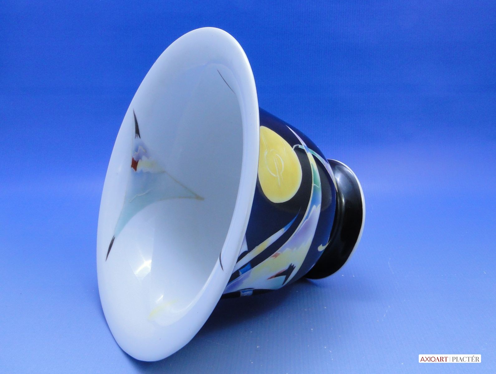 Jelzett, Bakos Éva szignóval ellátott, rendkívül ritka formájú és dekoru kaspó, váza.