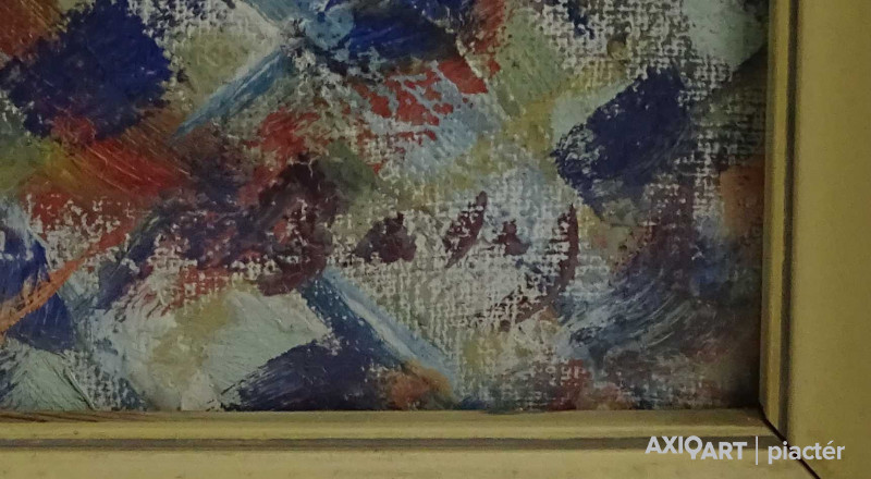 [FK0037/Z018] A kép mérete: 50 x 70 cm keret nélkül. Készült: Olaj, Vászon A kép Paizs László (Szentpéterúr, 1935) alkotása. Jelezve Jobbra lent "P. L." A festmény jó állapotban van. Keret: Ép A festmény hátoldalán a Képcsarnokvállalat címkéje található. Magyar festők és grafikusok életrajzi lexikona I-II. Festő. Tanulmányait a budapesti Iparművészeti Főiskolán végezte 1959-ben. Z. Gács György, Rákosy Zoltán és Szentiványi Lajos növendéke volt. A '60-as évek első felében hagyományosabb felfogású olajképeket festett, mozaikokat, freskókat, utóbb a pop-art körébe tartozó, a francia Arman munkáival rokon műveket alkotott. 1961 óta kiállító művész. Egyéni (Fényes Adolf Terem, Csók Galéria, Műcsarnok, Magyar Nemzeti Galéria, Halászbástya, Bástya Galéria, Vigadó Galéria, Budapest Galéria, Győr, Szombathely, Szeged, Zalaegerszeg, Duisburg, Aix-en-Provence, stb). és vegyes (Ernst Múzeum, Műcsarnok, Óbuda Galéria, Magyar Nemzeti Galéria, Csók Galéria, Vigadó Galéria, Székesfehérvár, Kaposvár, Pécs, Hódmezővásárhely, Firenze, Milano, Padova, Nápoly, Velence, Düsseldorf, Aachen, Genf, stb) tárlatokon vett részt. 1980-ban Munkácsy-díjjal jutalmazták, 1988-ban Érdemes Művész kitüntető elismerésben részesült. Munkáit őrzi a Magyar Nemzeti Galéria, a Fővárosi Képtár, a szombathelyi képtár, a pécsi Janus P. Múzeum, a székesfehérvári István Király Múzeum és a dunaszerdahelyi Kortárs Magyar Galéria. (H.B.: Műv, 1972/4, K.Gy.: Műv. 1977/2, K.G.: Műv. 1978/10, M.L.: Műv, 1983/5, R.G.: Műv, 1987/9, Sz.Gy.: Új Műv. 1995/4, MK) Magyar festők és grafikusok életrajzi lexikona I-II. Műgyűjtők és kereskedők kézikönyve Festő. Tanulmányait a bp.-i Iparművészeti Főiskolán végezte. Mozaikokat ferskókat, utóbb a pop-art körébe tartozó, a francia Arman műveivel rokon műveket alkotott. Mozaikok: a Szegedi Megyei Tanács, a Pécsi Óvoda, a Gödöllői Agrártudományi Egyetem. Freskók: Budapest - Csatárka úti Gyermekotthon. 1971-ben a Fényes Adolf Teremben volt kiállítása, 1983-ban pedig a szegedi Móra Ferenc Múzeumban nagyszabású tárlatokon mutatta be munkáit. 1988-ban érdemes művész kitüntető elismerésben részesült. (MK) Magyar festők és grafikusok adattára Az Iparművészeti Főiskolán végzett 1959-ben. Mozaikokat (Szeged, Megyei Tanács; Pécs, Óvoda; Gödöllő, Agrártudományi Egyetem), freskókat (Budapest, Csatárka úti Gyermekotthon), újabban a pop art körébe tartozó, a francia Arman műveivel rokon műveket alkotott. 1971-ben a Fényes Adolf Teremben nyílt kiállítása. 1983 februárjában a szegedi Móra Ferenc Múzeumban megrendezett nagyszabású tárlaton mutatta be alkotásait. 1988-ban érdemes művész kitüntető elismerésben részesült. - MK Művészeti lexikon I-IV. (Szentpéterur, 1935. dec. 26.- ): festő. Az Iparművészeti Főiskolán 1959-ben végzett Rákosy Zoltán, Z. Gách György és Szentiványi Lajos növendékeként. Épületdiszítő mozaikokat, (Szeged, Megyei Tanács, 1961; Pécs, Óvoda, 1964), műanyagfreskókat (Bp., Csatárka úti Gyermekotthon, 1964) és gobelinterveket készít. Kortárs magyar művészeti lexikon I-III. Festő, szobrász, grafikus. 1959: MIF, mesterei: Z. Gács György, Rákosy Zoltán, Szentiványi Lajos. 1980: Munkácsy-díj; 1988: érdemes művész. Főiskolás éveinek második felében, majd azt követően számos murális munka kivitelezésében vett részt, Fónyi Géza, Konecsni György, Z. Gács György, Rákosi Zoltán és Domanovszky Endre mellett dolgozva. A 60-as évek első felének hagyományosabb fölfogású olajképeket festett. 1964-ben a Velencei B.-n megismerkedett az amerikai pavilonban a pop art Európában akkor még újnak számító törekvésével, és részben ez inspirálta, hogy 1967-ben textil, fém, bőr anyagú "varrottas" képeket küldjön az FKS éves tárlatára; a megnyitó előtt többek között az ő munkáit is eltávolították a falról. A 70-es években pop art-os objekteket (A trónörököspár politikai gyilkosság áldozata lett, 1970, plexiüveg, újság, szarvasbogarak), majd konstruktív, átlátszó plexiüveg plasztikákat készített belső fénytörő határfelületekkel. A 80-as években készültek az anyagában színezett, konstruktív, nagyméretű poliészter szobrai, majd színes poliészter táblaképeket alkotott, mesterségesen roncsolt felületekkel, mintha régészeti leletek vagy atomtámadás utáni festmény-szurrogátumok lennének. Ekkor kezdett organikus plaszikájú bronzszobrokat is mintázni. A 90-es években, a táblaképek és szobrok mellett nagyméretű, egyedi grafikákat készített, formavilágában némileg a roncsolt táblaképekből kiindulva, de szinte kizárólag az emberi alakból elvonatkoztatott torzókat megjelenítve. Ek: 1966: Művészklub, Győr; 1971: Fényes A. T.; 1972: Bercsényi 28-30 G.; 1973: BME B-épület; 1976: Csók G.; 1977: G. Hildebrandt, Duisburg (NSZK); 1979: Bástya G., Halászbástya; Helyőrségi Műv. H., Nagyatád; József A. Műv. Közp., Szeged; Göcsej M., Zalaegerszeg; 1982: Bezzegh G., Küsnacht (CH); 1983: Móra F. M., Szeged; 1987: Műcsarnok (kat.); MNG; 1988: Pandora G., Badacsonytomaj; 1989: Parktheatter, Iserlohn (NSZK); Qualitas G.; Hevesi S. Színház, Zalaegerszeg; 1990: Vasarely Fondation (Ferdinánd Judittal, Fóth Ernővel), Aix-en-Provence (FR); 1994: Vigadó G.; 1997: Pest Center G.; 1998: Budapest G. (kat.); 1999: Pest Center G. (kat); G. Arcis, Sárvár; MMA, Bp.; 2001: SZK, Szhely; Ernst M. (kat.) Vcsk: 1961, 1964, 1966: FKS, Ernst M.; 1962: 9. Magyar Képzőműv. kiállítás, Műcsarnok; 1967: Mai magyar festészet, Új-Delhi; 1969: Vas megyei művészek, Savaria M., Szhely; V. Orsz. Grafikai B., Miskolc; 1971: Új művek, Műcsarnok; 1972: Fiatal művészek Budapestről. Likovni Salon, Újvidék (YU); 1972, 1973: Balatonboglár