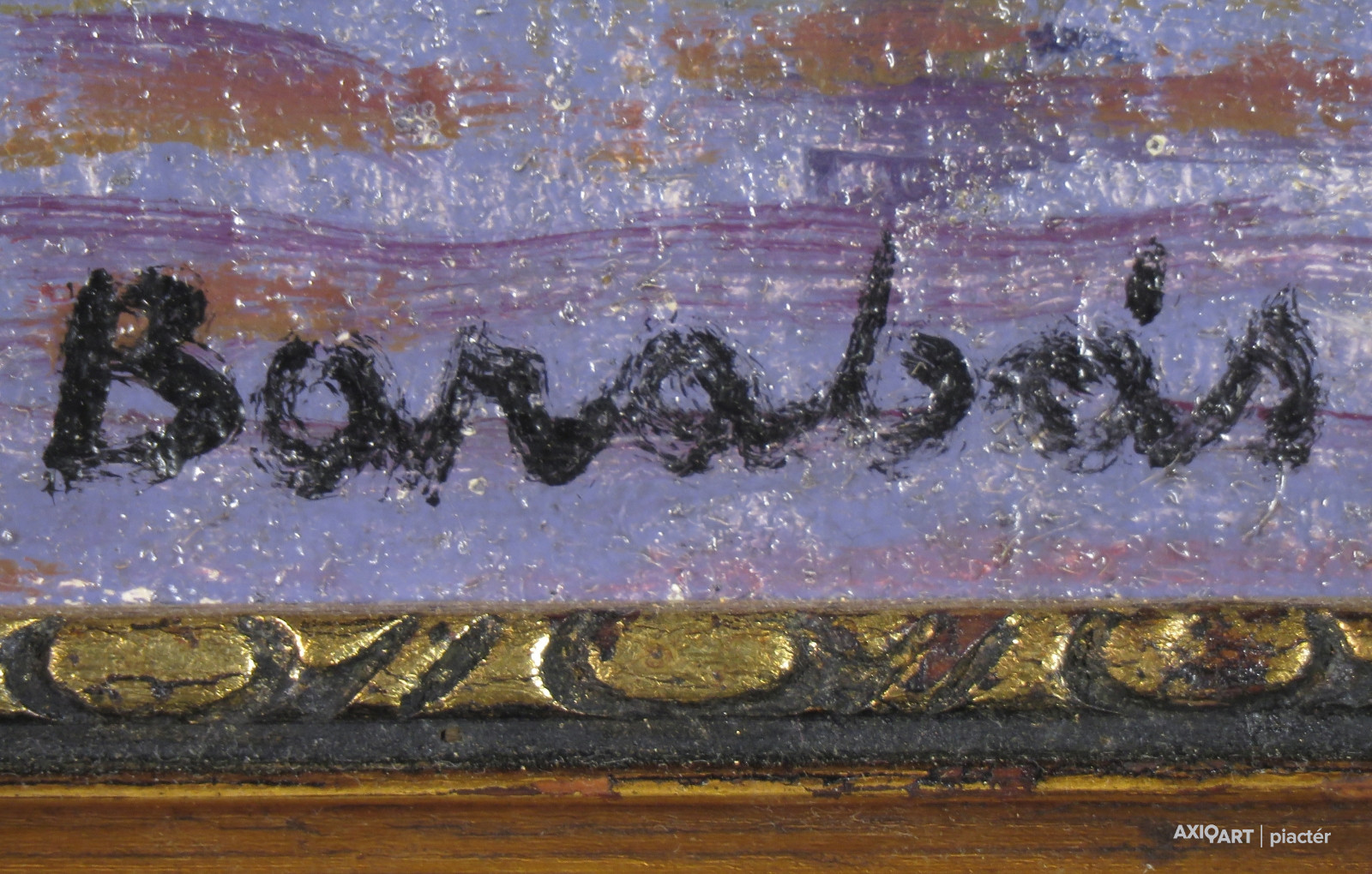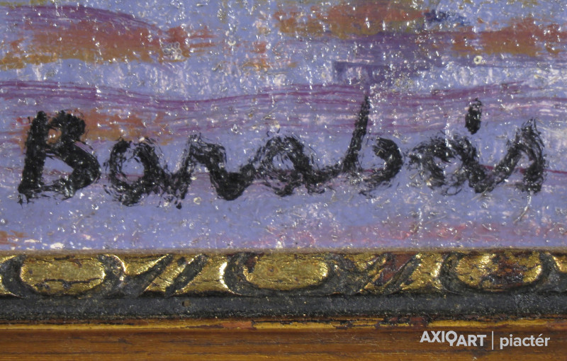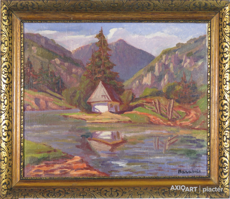 [FKC293/BX-1] A kép mérete: 50 x 60 cm keret nélkül. Készült: Olaj, Vászon A kép Barabás Márton (Márkusfalvi) (Pusztasőreg, 1893, Toronto, 1974) alkotása. Jelezve jobbra lent "Barabás" A festmény jó állapotban van. Keret: Ép Magyar festők és grafikusok életrajzi lexikona I-II. Festő. 1911-14 között és 1918-19 között a budapesti Képzőművészeti Főiskolát látogatta, a Müncheni Bajor Királyi Akadémián Heckel és Stuck tanítványa volt. Párizsban és Velencében járt tanulmányúton. Franciaországi alkotásait később Berlinben állította ki. Több nyáron át a dachaui művésztelepet látogatta. 1920 után egy ideig Erdélyben élt, a székely életből vett zsáner- és tájképeket alkotott. Megfestette a román király arcképét is. Budapesten is nagy sikert arattak festményei. Ezt követően több olasz városban dolgozott, 1958-ban Los Angelesbe távozott. Az itteni Szent István templomban lelhető a "Magyar Szentek" című nagyméretű alkotása. 1959-ben Kanadában telepedett le. Az USA-ban és Kanadában főleg hegyvidéki panoramikus képeket festett. Több műve került a budapesti Vármegyeházára, a Hadtörténeti Múzeumba, a szegedi Móra Ferenc Múzeumba. Barabás Miklós unokaöccse volt. (ML, KMHM, Murádin Jenő) Magyar festők és grafikusok életrajzi lexikona I-II. Műgyűjtők és kereskedők kézikönyve Festő. 1911-14 k. a bp.-i Képzőművészeti Főiskolán, Münchenben, Párizsban végezte tanulmányait. Franciaországi alkotásait később Berlinben állította ki. 1920 után egy ideig Erdélyben élt, a székely életből vett zsánerképeket és tájképeket festett. Megfestette a román király arcképét is. Budapesten is nagy sikert arattak képei. Itáliában is dolgozott. 1958-ban az USA-ba távozott és Los Angelesben telepedett le. Az itteni Szent István templomban található a "Magyar Szentek" című nagyméretű alkotása. Több műve került a bp.-i Vármegyeházára, a Hadtörténeti Múzeumba és a szegedi Móra Ferenc Múzeumba. Barabás Miklós unokaöccse volt. (ML, KMHM) Magyar festők és grafikusok adattára Barabás Miklós festőművész unokaöccse. Művészeti tanulmányait a budapesti Képzőművészeti Főiskolán, Münchenben és Párizsban végezte. Franciaországi képeit később Berlinben állította ki. Hazatérve Erdélybe, székely életből vett zsánerképeket és tájképeket festett. Megbízást kapott a román király arcképének megfestésére. Budapesten is nagy sikert arattak képei, amelyek közül található a pesti Vármegyeházán, a Hadtörténeti Múzeumban és a szegedi Móra Ferenc Múzeumban. A II. világháború után az USA-ba vándorolt és Los Angelesben telepedett le. Az ottani Szent István templomban található a Magyar Szentek c. nagyméretű alkotása. - Irod.: GYKKL Művészeti lexikon I-IV. Festő. 1911-14-ben a Képzőművészeti Főiskolán tanult, majd Párizsban dolgozott. 1920 után főként Erdélyben és Olaszo.-ban élt. Tájképeket festett. 1943-ban a bp.-i vármegyeház könyvtártermét freskókkal díszítette. 1958 óta Kanadában él. Kortárs magyar művészeti lexikon I-III. 1911-14 és 1918-19 között MKF, közben Münchenben a Bajor Kir. Akadémián Stuck és Heckel növendéke. Párizsban és Velencében járt tanulmányúton; több nyáron át a dachaui művésztelepet látogatta. Erdélyben, majd az itáliai városokban dolgozott; 1959-ben Kanadában telepedett le. Erős néprajzi érdeklődéssel festett falusi tájakat, munkajeleneteket, Kanadában és az USA-ban hegyvidéki panoramikus képeket. Ek: 1967: Bognár G., Los Angeles. Mk: MNG; Római Katolikus Magyar Egyesület, Los Angeles. Km: Falképek (1943, Bp., Vármegyeháza könyvtárterme). (M.J.)