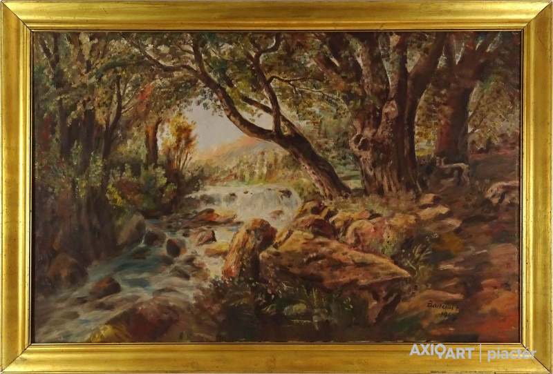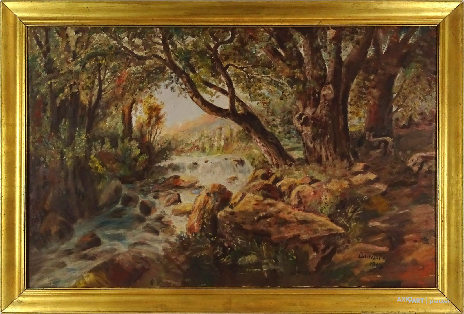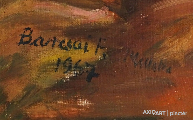 [1F112/001] Olaj vászon festmény, régi aranyozott keretben. Datált jelzés jobbra lent: BARCSAI F. 1967 Magasság: 75 cm Szélesség: 110.5 cm Súly: 1.725 kg
