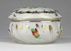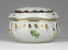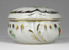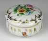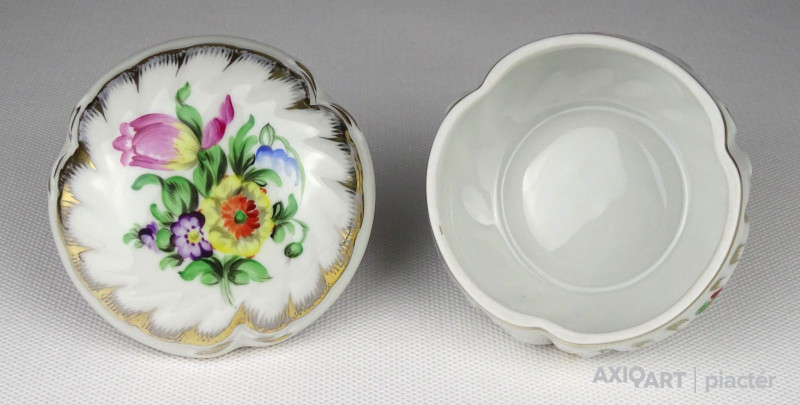 Régi, hibátlan állapotú, kézzel festett, aranyozott díszítésű, virágmintás gyűrűtartó, bonbonier.