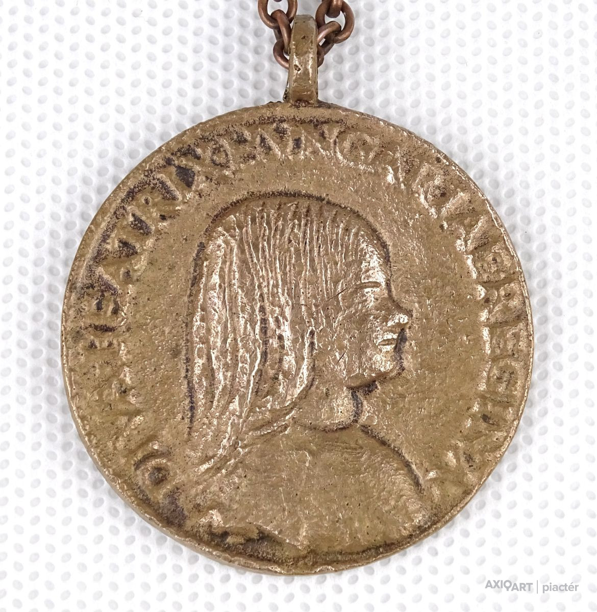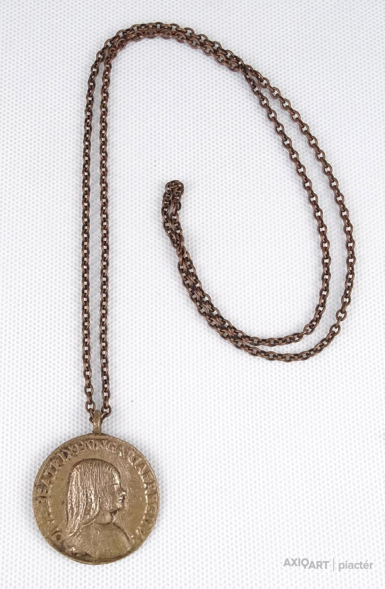 [1N923/X024/8] Réz láncon található réz plasztikus medállal. Feliratok: DIVA BEATRIX HUNGARIAE REGINA Hátoldalán jelzés: COPIE Súly: 0.035 kg