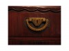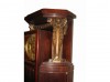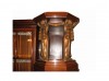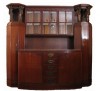 Fazettázott, metszett üveges felső rész. Nagyméretű márvány lap a nagytálaló alsó részében, középen lent 5 fiókkal, rajtuk nagyméretű míves kézi veretes fogantyúk. Két oldalán ajtós rész, felette aranyozott fa faragvány ember alakos díszekkel. Fotó szerinti kissé kopottas állapotban.