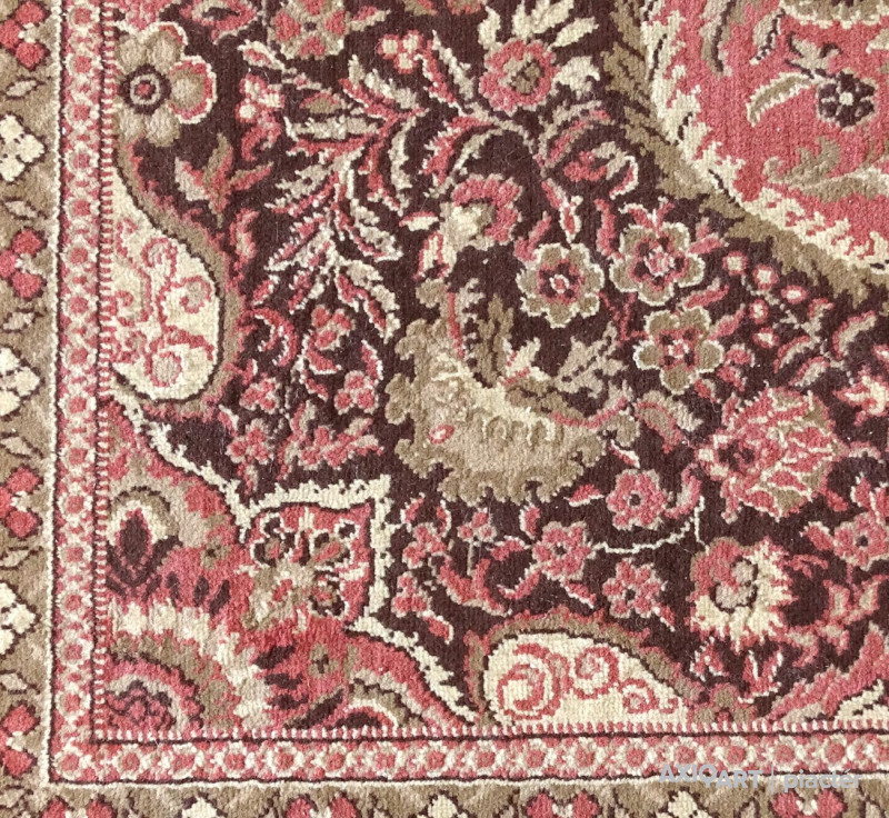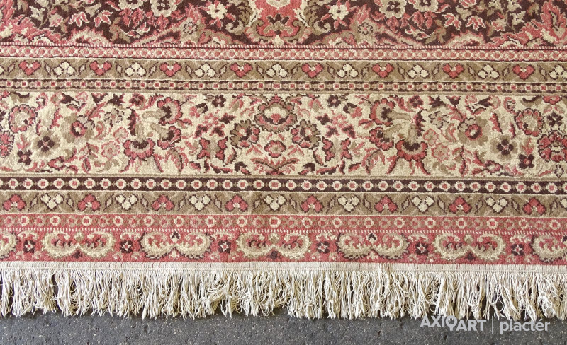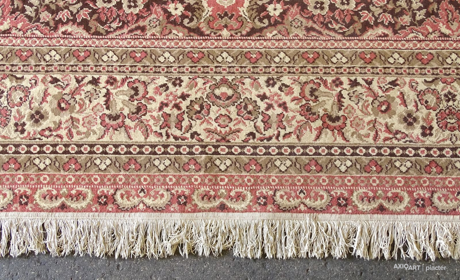 Szép állapotú hatalmas mályva és barna árnyalatú szőnyeg. Szép állapotban megmaradt, rojtjai is szépek. Azonnal enteriőrbe helyezhető.