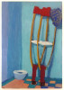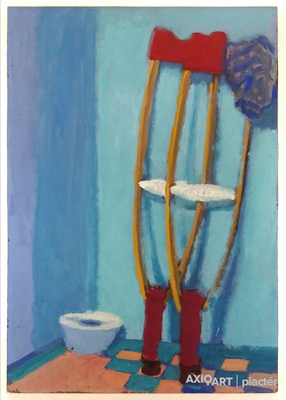 [1Y029/Z018] Olaj farost festmény, üveglap mögött, hibátlan képcsarnokos keretben. Hátoldalán Képcsarnok Vállalat papír címkéje: A művész neve: SCHÉNER MIHÁLY A kép címe: TÁJ Magasság: 66.5 cm Szélesség: 86 cm Súly: 6.54 kg Schéner Mihály festő, grafikus, szobrász, keramikus, bábtervező Medgyesegyháza, 1923-01-9 Elhalálozott: Budapest, 2009. május 11. Honlap: http://www.kormendigaleria.hu/kiadvany.html 1942-1947: Magyar Képzőművészeti Főiskola, tanára: Rudnay Gyula. 1978: Munkácsy-díj; 1984: érdemes művész; 1989: kiváló művész; 1995: Kossuth-díj. 1992-től a Magyar Művészeti Akadémia, 1993-tól a Széchenyi Irodalmi és Művészeti Akadémia tagja. 1956-ig tanított. 1982: Nagyatádi Faszobrász Alkotótelep, 1985: Nemzetközi Acélszobrász Alkotótelep, Dunaújváros. A stílusában felismerhető, mégis sokféle műtárgyat létrehozó ~ gazdag, állandóan alakuló életműve a folyton változó világban helyét kereső, az alkotói szabadságot megvalósító XX. századi képzőművész példázata lehetne. Magát expresszív-szürrealista alkotónak nevezi. Egyaránt dolgozik festékkel, textillel, fával, fémmel. Rajzol, szerkeszt, farag, épít, gyúr, varr és ragaszt, felhasználja a mézesbábok öntőformáit. Festő, rajzoló, textilszobor- és bábkészítő, fazekas, asztalos, esztergályos. Háromlépcsős folyamatban gondolkozik: rajzban tervez, majd fest, szobrot készít, “formába önt”, mindig a végső plasztikai megoldást keresi. Ami állandó és mégis játékosan változékony megjelenésű Schéner művészetében, az a gyermekkori emlékek által meghatározott népi mesterségek iránti tiszteletet kifejező motívumkincs, a tárgyi folklór formakészlete, amely már-már kézjegyként ismétlődik munkáin. Mitologikussá nőtt képzelete új lényeket teremt, pl: a Pigulát, amely disznótestű, emberfejű teremtmény. Schéner festményein a szürrealista motívumokat konstruktív szerkezetbe rendezi, a geometriát és az organikus természeti motívumokat egyaránt beépíti műveibe. A népi, népművészeti formakincsből merített lovas huszárok, betyárok, szegénylegények cifra szűr mentéje, piros csákója, fekete csizmája, az önálló életet élő zsinórdíszek és mézeskalács bábok, a kiskocsik a gyermekkori vásárok, búcsúk színes forgatagába vezet. A primér motívumokat aztán felváltják a vastagon felhordott felületbe karcolt jelek, vonalhálózatok, amelyek a játszó gyermek homokba rajzolt ábráit, a pásztorember fába vésett üzeneteit, az ősember barlang falába rótt mágikus jeleneteit idézik meg. A művész pillanatnyi érdeklődésének megfelelően a színek búvópatakként tűnnek el és jelennek meg ismét. A 60-as években leginkább a formákkal való játék érdekelte, a festmények felülete egyre gazdagodott: a táblaképek felületén applikációk jelentek meg, vagy lemállasztott rétegek hagyták maguk után hiányukat, motívumok nélküli ősformák, archetipikus képzetek bukkantak fel művészetében. A véletlenszerűnek látszó rétegekkel való játék azonban tudatos komponálás eredménye, amely később nyilvánvaló ritmusnak és formai szerkesztettségnek adja át a helyét, mint a Törvénytáblák c. sorozaton. A különböző művészi kifejezési formák egymásra termékenyítő hatással vannak, át- meg áthatják egymást. Textilszobrai, amelyekkel új műfajt teremtett, ugyanazzal az automatikus, expresszív-szürrealista módszerrel készülnek, mint festményei. A hagyományosan a népművészetben alkalmazott anyag, a filc lehetőséget ad a népi formakincs felelevenítésére, amely azonban a művész különös szürrealista átiratában jelenik meg. A szívekkel kivarrt, zsinórdíszes Posztókotlós c. művén mézesbábok lógnak, hátán huszárok lovagolnak. Egész sor textilből készült kéz-plasztikát alkot, amelyeket az ujjakra rávarrt díszekkel öltöztet, személyesít meg. A színes-különös világból aztán ~ újra puritán képi és formai rendbe juttatja el a nézőt, majd nemsokára tépett, gyűrt, vágott, csorgatott, repedezni hagyott szenvedélyesen vonagló képi felületeket hagy hátra. Schéner készített apró gyermekjátékokat, térstruktúra-tereket, mászókákat is. A magyar népi formák mellett szürreális játékaiban gyakran alkalmaz görög mitológiai alakokat, “elkentaurosodott” lovakat, Gorgó-fejeket, sellőket, hárpiákat, Pán-ábrázolásokat. Schéner nemcsak saját művészetéről publikál, hanem művésztársairól is számos írása jelenik meg, elsősorban az Új Auróra c. folyóiratban, amelynek egy ideig főmunkatársa volt. Irodalom kiállítása, Magyar Építőművészet, 1962/4. Húsz év után, Művészet, 1965/4. BOZÓKY M.: ~, Tiszatáj, 1968/5. PERNECZKY G.: Nincs uborkaszezon, Élet és Irodalom, 1969. augusztus 8. BARÁNSZKY-JÓB L.: ~, Művészet, 1969/9. LÁSZLÓ GY.: ~ kaposvári kiállítása, Jelenkor, 1969/4. MAJOR M.: Pásztorok, betyárok, huszárok - kezek, Tükör, 1970. szeptember 15. FRANK J.: Bemutatjuk ~t, Élet és Irodalom, 1972. május 6. ról kiállítása ürügyén, Képzőművészeti Almanach, Budapest, 1972 Sötétkék kokasok, Élet és Irodalom, 1973. szeptember 9. MAJOR M.: ~ játékai, Élet és Irodalom, 1974. július 27. BARTA J.: Egy különös művész, Alföld, 1974/6. VADAS J.: Szárnykészítők, Élet és Irodalom, 1975. október 4. JUHÁSZ F.: A halál ellen játszani, Élet és Irodalom, 1975. május 17. PAP G.: Kincsek és műkincsek, Művészet, 1975/6. P. SZŰCS J.: Az utak kettéválnak, Művészet, 1978/3. Békési művészet, Művészet, 1978/7. SZAMOSI F.: ~ [kismonográfia], Budapest, 1978 VADAS J.: Játék a játékkal, Élet és Irodalom, 1979. augusztus 18. NÉMETH L.: ~ műveiről, Művészet, 1979/4. MIKLÓS P.: Mit akar ez a múzeum?, Művésze