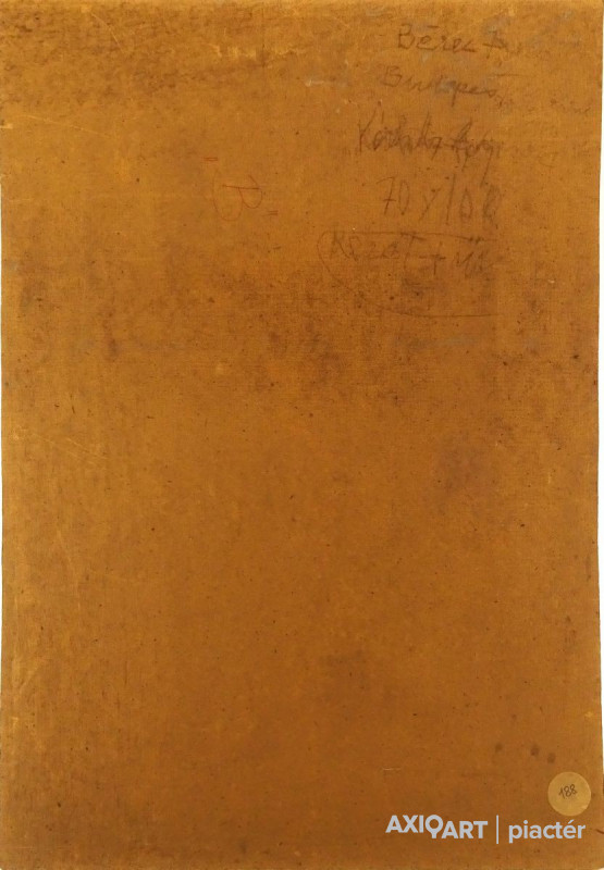 [FK3264/FL-4] A kép mérete: 31,5 x 70,5 cm keret nélkül. Készült: Olaj, tempera, Farostlemez A kép Kurucz D. István (Hódmezővásárhely, 1914, Budapest, 1996) alkotása. Jelezve Jobbra lent "Kurucz 977" A festmény jó állapotban van. Keret: Ép A festmény hátoldalán a Képcsarnokvállalat raglapja látható. Magyar festők és grafikusok életrajzi lexikona I-II. Festő, grafikus. Vásárhelyről, ahol Darvasy István festőművész figyelt fel tehetségére, került Szőnyi István magániskolájába. A fővárosi Képzőművészeti Főiskolának, ahol Rudnay Gyula, Réti István, Benkhard Ágost, Szőnyi István voltak a tanítómesterei 1940-ig volt a tanítványa. A monumentális festészetet Nagy Sándor tanította. Tanulmányúton járt több kelet- és nyugat-európai államban, Mongóliában, Japánban, Algériában. 1940-ben Hódmezővásárhelyen telepedett le, 1943-1947 között bekapcsolódott szülővárosa művészeti és közéletébe. A Vásárhely Népe c. lap munkatársa volt. 1949-59 között Szőnyi tanársegédjeként freskótechnikát tanított a főiskolán. 1951-52-ben megszervezte a Honvédségi Képzőművészeti Stúdiót, majd kinevezték a Honvéd Képzőművészeti Iskola igazgatójának. A vásárhelyi iskola reprezentáns egyéniségeként jelentős szerepe volt a Vásárhelyi Őszi Tárlatok elindításában. Megszervezete és vezette a Mednyánszky Társaságot, s haláláig művészeti vezetője volt a Hajdúböszörményi Nemzetközi Művésztelepnek. Évekig elnöke volt a Hortobágyi Alkotótábornak. Az alföldi parasztok életét megörökítő képei a falképek összefoglaló stílusában a népi realizmus és a dekoratív sommázás szellemében készültek. Számos falképet festett (Kossuth Akadémia, hódmezővásárhelyi iskola, stb.). 1941-től számos kisebb-nagyobb egyéni kiállítása volt, bemutatkozott több hazai és külhoni városban. 1941-től minden jelentősebb országos rendezvény és a magyar művészek külföldi bemutatóinak résztvevője. Rendszeresen szerepelt a Vásárhelyi Őszi Tárlatokon, a Hatvani Tájkép és Portrébiennálékon, a Szegedi Nyári Tárlatokon. Képei bemutatásra kerültek a vásárhelyi iskola jubileumi rendezvényein. 1962-ben több alkotásával szerepelt a Velencei Biennálén. Díjak: SZOT-díj, Munkácsy-díj, Érdemes és Kiváló Művész kitüntetés, Tornyai-plakett, római ösztöndíj, a Munka Érdemrend arany fokozata, Káplár Miklós-díj és emlékplakett, Kossuth-díj. Művei megtalálhatók minden jelentősebb hazai, több olasz és japán közgyűjteményben. (ML, D.J.: Műv. 1985/5, Tasnádi Attila adatközlése nyomán, L.L.: Műv. 1983/3) Magyar festők és grafikusok életrajzi lexikona I-II. Műgyűjtők és kereskedők kézikönyve Festő, grafikus. Vásárhelyről, ahol Darvasy István festőművész figyelt fel tehetségére, került Szőnyi István magániskolájába. A fővárosi Képzőművészeti Főiskolának, ahol Rudnay Gyula, Réti István, Benkhard Ágost, Szőnyi István voltak a tanítómesterei 1941-ig volt a növendéke. A monumentális festészetet Nagy Sándor tanította. Egy ideig tanársegédként működött Szőnyi mellett. Több ízben járt Itáliában tanulmányúton. Évekig művészeti vezetője volt a Hajdúböszörményi Nemzetközi Művésztelepnek. Az alföldi parasztok életét megörökítő képei a falképek összefoglaló stílusában a népi realizmus és a dekoratív sommázás szellemében készülnek. A II. világháború alatt szerepet vállalt a Szocialista Képzőművészek Csoportjának akcióiban. 1949-1960 k. a Képzőművészeti Főiskola falképtanszékének tanára volt. Több falképet festett (Kossuth Akadémia, hódmezővásárhelyi iskola, stb.). 1962-ben több alkotásával szerepelt a Velencei Biennálén, SZOT-díjas, Munkácsy-díjas, érdemes és kiváló művész kitüntető elismerésében részesült. (ML, D.J.: Műv.-1985/5, L.L: Műv.-1983/3) Magyar festők és grafikusok adattára Tanulmányait a Képzőművészeti Főiskolán végezte, ahol Rudnay Gyula és Réti István voltak a mesterei. 1941-1943-ban ösztöndíjas Rómában. 1943-1947 között Hódmezővásárhelyen dolgozik, egyidejűleg a Vásárhelyi Hétfő c. hetilap szerkesztője. 1949-1960 közötti években a budapesti Képzőművészeti Főiskola freskó tanszékének tanára. Az 1940-es évek eleje óta kiállító művész. 1962-ben a Velencei Biennálén állították ki műveit. 1970-ben Csók István Galériában volt kiállítása. A Vásárhelyi Őszi Tárlatok és a Szegedi Nyári Tárlatok rendszeres kiállító művésze. Az alföldi festészet egyéni hangú továbbfejlesztője. Táblaképeket, freskókat és kerámia falképeket alkot. Munkácsy-díjas, érdemes és kiváló művész kitüntető elismerésében részesült. A SZOT a legelső képzőművészek közt, 1962-ben tüntette ki díjával. A 70. születésnapját ünneplő művész 1984 decemberében életmű kiállítást rendezett műveiből a hódmezővásárhelyi Tornyai János Múzeumban. 1986-ban a budapesti Hollósy Galériában nyílt kiállítása. - Irod.: Szij Rezső: Kurucz Dezső István festőművész. Bp. 1967.; Kulcsár Ödön: SZOT-díjasok. Bp., 1981.; Lóska Lajos: Mindig freskót szerettem volna festeni. Beszélgetés Kurucz Dezső Istvánnal. Művészet, 1984. 3. Művészeti lexikon I-IV. Festő, Munkácsy-díjas. A Képzőművészeti Főiskolán Rudnay Gyula, Réti István, Benkhard Ágost, Szőnyi István növendéke volt 1934-40 között. Több ízben járt külföldi tanulmányúton. Az alföldi parasztok életét megörökítő képei a falképek összefoglaló stílusában a népi realizmus és a dekoratív sommázás szellemében készülnek. 1949-60 között a Képzőművészeti Főiskola falképtanszékének tanára volt. Több falképet festett (Kossuth Akadémia; Hódmezővásárhely, iskola, pápai pártház, 1965). Legutóbb 195