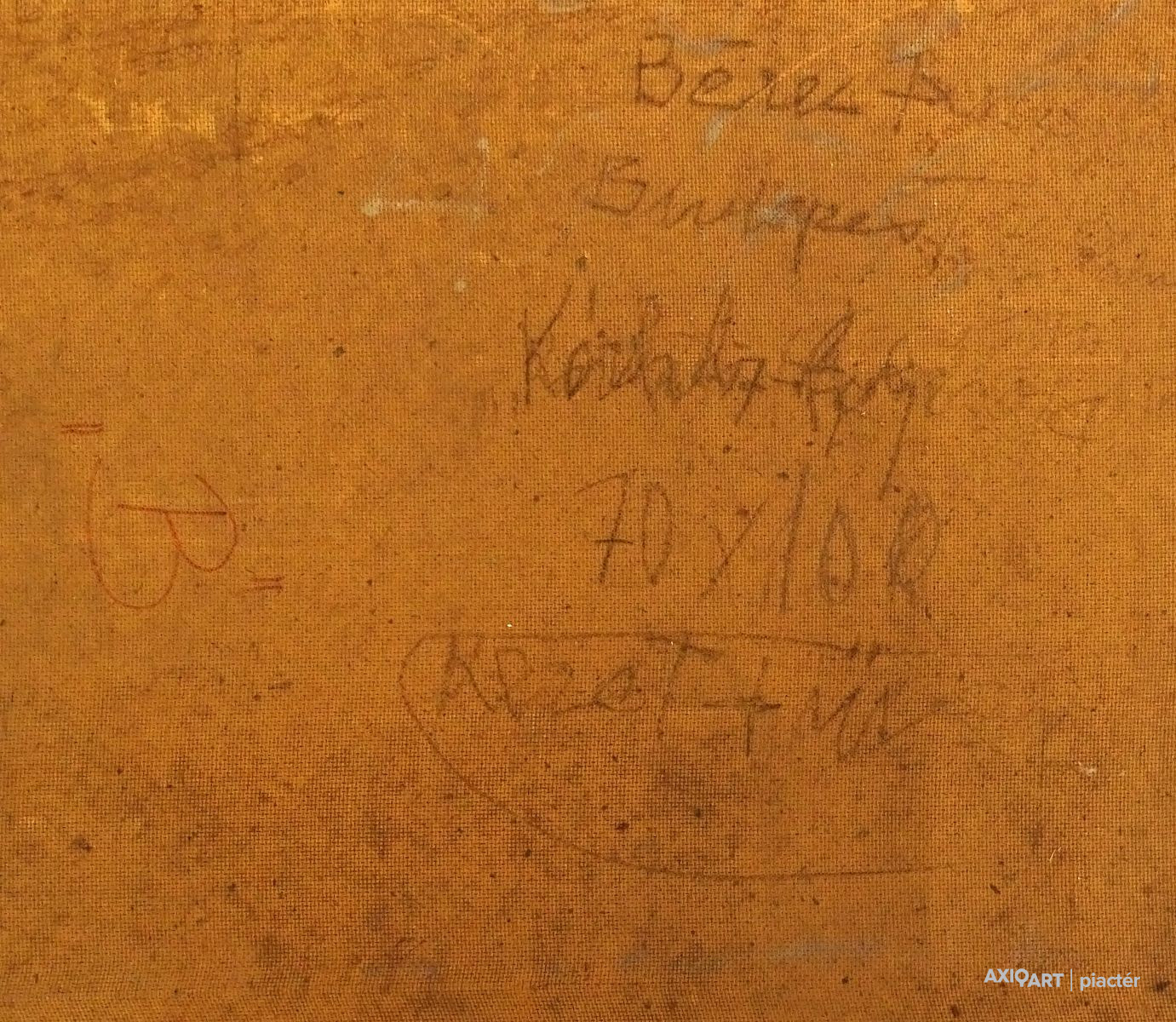 [FK2668/Bp301/4] A kép mérete: 50,5 x 80,5 cm keret nélkül. Készült: Olaj, Vászon A kép Moldován István (Kolozsvár, 1911) alkotása. Jelezve Jobbra lent "Moldován István" A festmény jó állapotban van. Keret: Ép A festmény hátoldalán a Képcsarnokvállalat raglapja láltható. Magyar festők és grafikusok életrajzi lexikona I-II. Festő. Tanulmányait Kolozsvárott, a Szépművészeti Főiskolán kezdte 1930-ban. A következő esztendőben a nagybányai Szépművészeti Iskolában Thorma János és Krizsán János korrektúráján képezte magát. 1931-ben a budapesti Képzőművészeti Főiskola hallgatója lett. Réti István, később Szőnyi István volt a mestere. Már mint főiskolás sok díjat és kitüntetést nyert. 1948-ban megkapta a római ösztöndíjat, de lemondva róla, Erdélybe ment. 1948-1950 között Erdélyben élt, és népművészetben gazdag vidékein festett. 1943-ban Kolozsvárott, 1946-ban Gyöngyösön, 1955-ben, 1959-ben és 1962-ben a Kulturális Kapcsolatok Intézetében, illetve a Csók Galériában rendezett egyéni bemutatókat. Ezen kívül több Európai országban, az USA-ban, Kanadában és Indiában is bemutatta munkáit. Eleinte sajátos atmoszférájú, lírai tájképeket, eleven színvilágú képmásokat festett, később mondernebb, erőteljesebben szerkesztett művekkel jelentkezett. A Pécsi Tanárképző Főiskola számára mozaikot készített. Erdély szerelmese volt. A székely népművészet gazdag formavilágának hatása döntő jelentőségűvé vált sokoldalú művészetében. Műv. díjak: a Szinyei Társaság elismerő oklevele, a Főváros festészeti-díja, "Kolozsvár a képzőművészetben" II. díj, állami ösztöndíj, római ösztöndíj, a Képzőművészek Szövetsége Észak-Magyarországi festészeti díja, SZOT festészeti díj. Több murális művet (mozaik) alkotott. A Magyar Nemzeti Galéria több alkotását őrzi. (M. L.: Műv. 1967/6, RI-NM) Magyar festők és grafikusok életrajzi lexikona I-II. Műgyűjtők és kereskedők kézikönyve Festő. Tanulmányait a kolozsvári Szépművészeti Főiskolán kezdte 1930-ban. A nagybányai szabadiskolában is megfordult. Itt Thorma János és Krizsán János korrektúráján képezte magát. 1931-ben Budapesten a Képzőművészeti Főiskola hallgatója lett. Réti István, később Szőnyi István volt a mestere. Már mint főiskolás sok díjat nyert. 1948-ban megkapta a római ösztöndíjat, de lemondva róla, Erdélybe ment. 1948-1950 k. Erdélyben élt, és népművészetben gazdag vidékein festett. 1943-ban Kolozsváron, 1946-ban Gyöngyösön, 1955-ben, 1959-ben és 1962-ben a Kulturális Kapcsolatok Intézetében, illetve a Csók Galériában rendezett önálló kiállítást. Ezen kívül több Európai országban, az USA-ban, Kanadában és Indiában is bemutatta műveit. Eleinte sajátos atmoszférájú, lírai tájképeket, eleven színvilágú képmásokat festett, később mondernebb, erőteljesebben szerkesztett művekkel jelentkezett. A Pécsi Tanárképző Főiskola számára mozaikot készített. Erdély szerelmese volt. A székely népművészet gazdag formavilágának hatása döntő jelentőségűvé vált sokoldalú művészetében. 1942-ben megkapta a Szinyei Társaság elismerését, és a Főváros festészeti-díjat,1943-ban elnyerte a "Kolozsvár a képzőművészetben" c. díjat. 1947-ben állami ösztöndíjat,1948-ban a római ösztöndíjat, 1972-ben a Képzőművészek Szövetsége Észak-Magyarországi festészeti díját kapta meg. A MNG több művét őrzi. (M. L.: Műv.-1976/6) Magyar festők és grafikusok adattára Tanulmányait Kolozsvárott a Képzőművészeti Főiskolán, majd Nagybányán Thorma János és Krizsán János irányítása mellett kezdte, 1931-től Budapesten megszakításokkal a Képzőművészeti Főiskolán Réti István és Szőnyi István növendékeként fejezte be. 1949-ben és 1950-ben ösztöndíjjal dolgozott Erdélyben, majd hosszú tanulmányutakra indult Nyugat-Európába, az Egyesült Államokba, s a Szovjetunióba. Először Kolozsvárott lépett a nyilvánosság elé 1943-ban, majd 1946-ban Egerben és Gyöngyösön, 1947-ben Miskolcon, 1948-ban Hatvanban, 1955, 1961 és 1981-ben a Csók Galériában, 1959-ben a KKI-ben, 1960-ban Nagykanizsán, 1963-ban Kiskunfélegyházán, 1966-ban Debrecenben, 1969 és 1975-ben Békéscsabán, 1971-ben a Mednyánszky Teremben, 1973-ban Gyöngyösön és Debrecenben, 1977-ben Egerben, 1979-ben Veszprémben, 1983-ban Miskolcon, 1984-ben Csepelen, 1986-ban a Vigadó Galériában rendezett önálló kiállítást. Külföldi kiállításai: Moszkva, Varsó, India, Szófia, Párizs, Bukarest, Belgrád, New York, Montreál és Toronto. Eddig közel kétezer színes táblaképet festett, de szívesen foglalkozik mozaikkészítéssel is. 1964-ben a Pécsi Pedagógiai Főiskola, 1968-ban a Salgótarjáni Kórház, 1969-ben a názáreti templom és 1970-ben a Videoton Vállalat díszterme részére mozaikot készített. - Erdély szerelmese. A székely népművészet gazdag formavilágának hatása döntő jelentőségűvé vált festészetében. Olyan formanyelvet alakított ki magának, amely színvilágában és summázó formaalakításában sajátos erdélyi zamat érződik, ugyanakkor korszerűen modern is konstruktivista stílusa. Munkásságát 1942-ben a Szinyei Társaság elismerésével és a Fővárosi festészeti-díjjal, 1943-ben Római-ösztöndíjjal, 1947-ben Állam ösztöndíjjal (Románai), 1963-ben a SZOT festészeti-díjával, 1972-ben a Képzőművészek Szövetsége Észak-Magyarországi festészeti-díjával tüntették ki. - Irod.: Bíró Béla: Kolozsváry Moldován István. Erdélyi Helikon, 1943.; Felvinczi Takács Zoltán: Kolozsváry Moldován István. Kolozsvár, 1943.; Dutka Mária: Magyar Nemzet, 1961.; Maksay László: Moldován István. Művészet, 1965.; D. Fehér Zsuzsa. Moldován István, Bp. 1971.; Theisler G