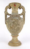 [0L446/X096] Hódmezővásárhelyi, jelzett Kincses István kerámia váza, rendkívül díszes, plasztikus szalamandra párral. Rendkívül ritka, gyűjteményes példány. Alján jelzés: KINCSES I HMV Magasság: 31 cm Szélesség: 21 cm Súly: 2.3 kg