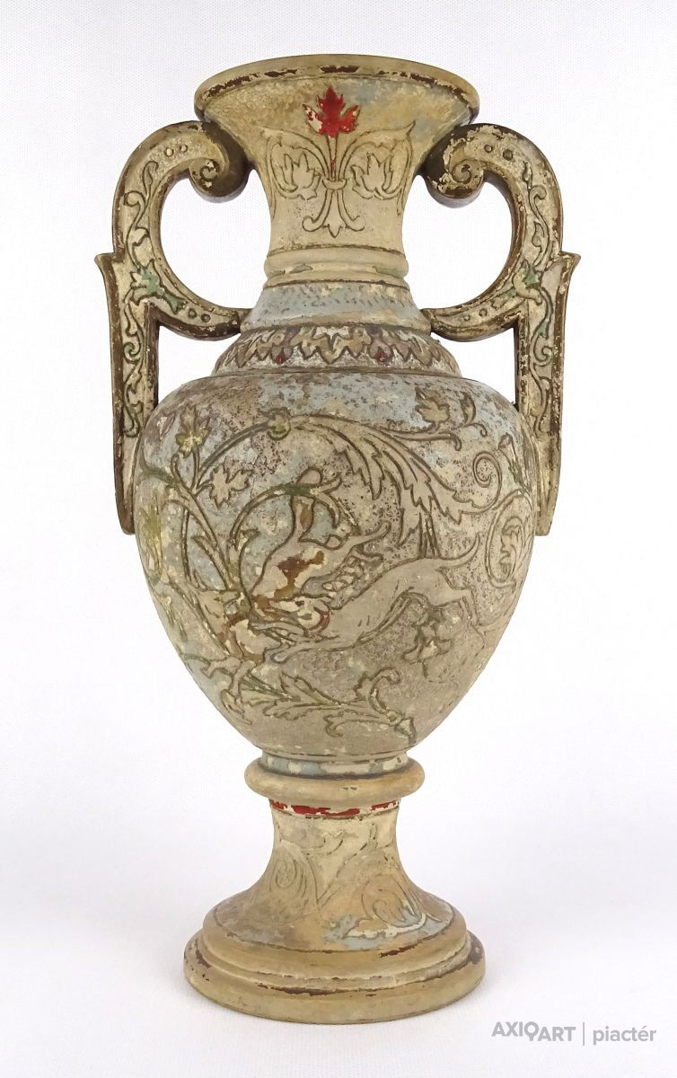 Bernard Bloch : Antik vadászjelenetes terrakotta váza 31 cm XIX. század