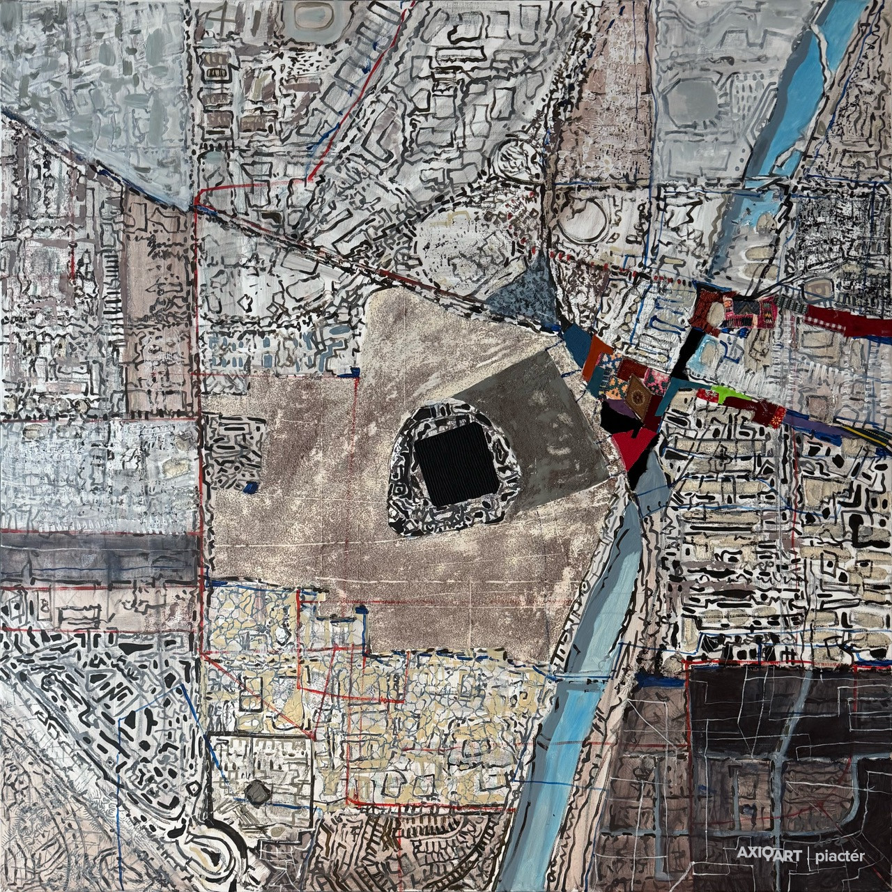 akril-vászon, szövet textúrák, 2020, hibátlan, 140x140, jjl.: BYHON 2020, nem keretezett