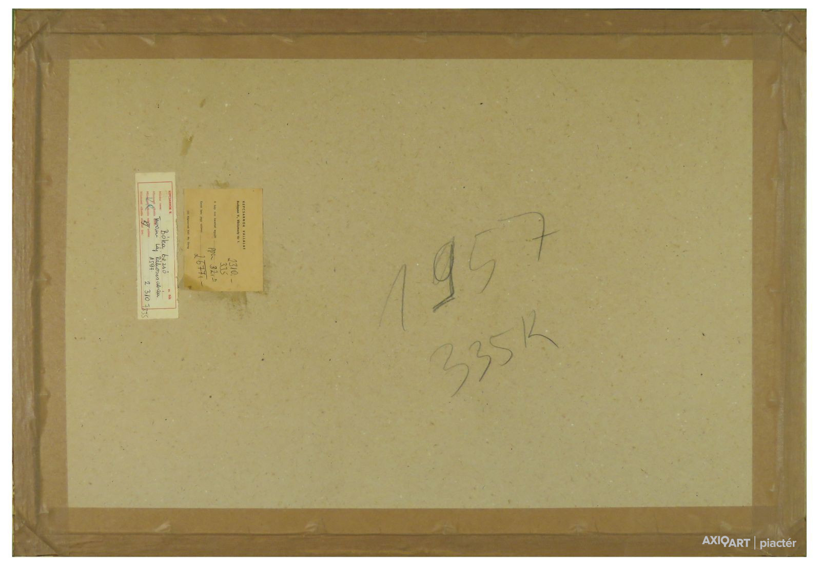 A festmény hátoldalán a Képcsarnok Vállalat raglapja található.