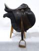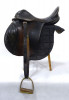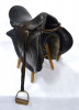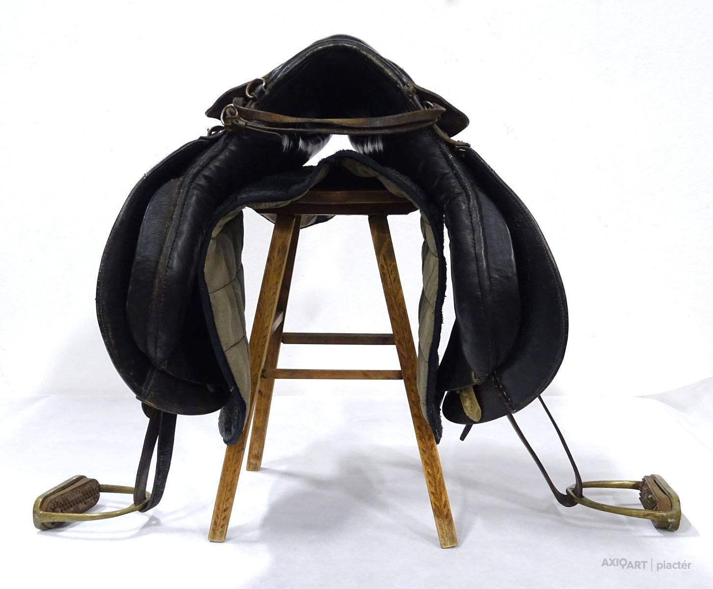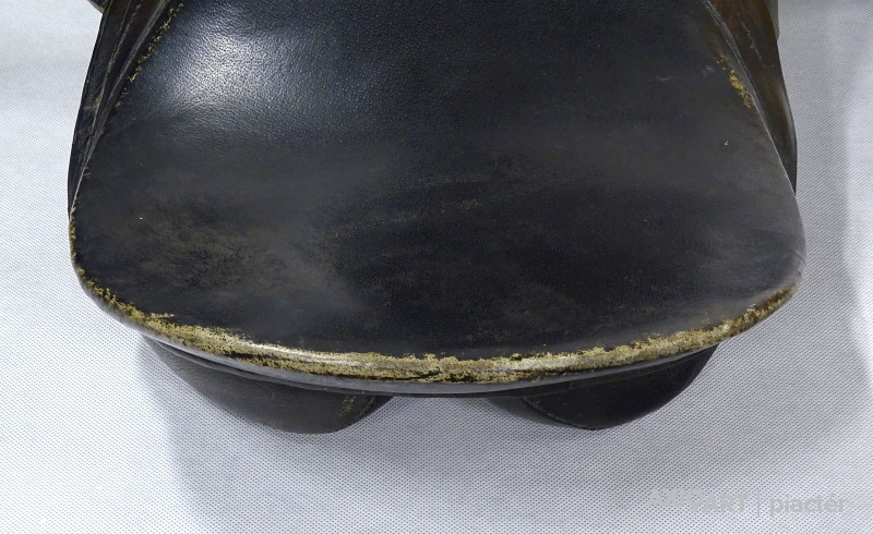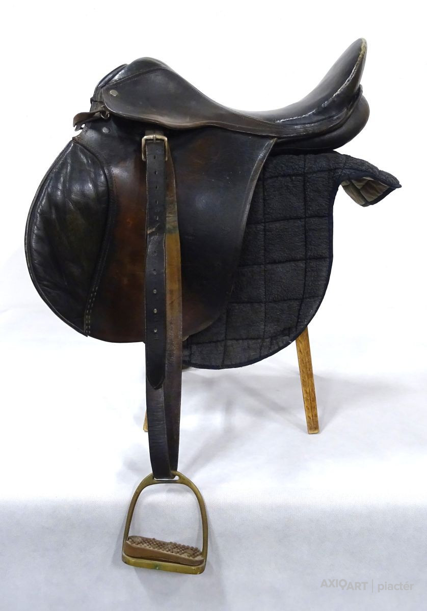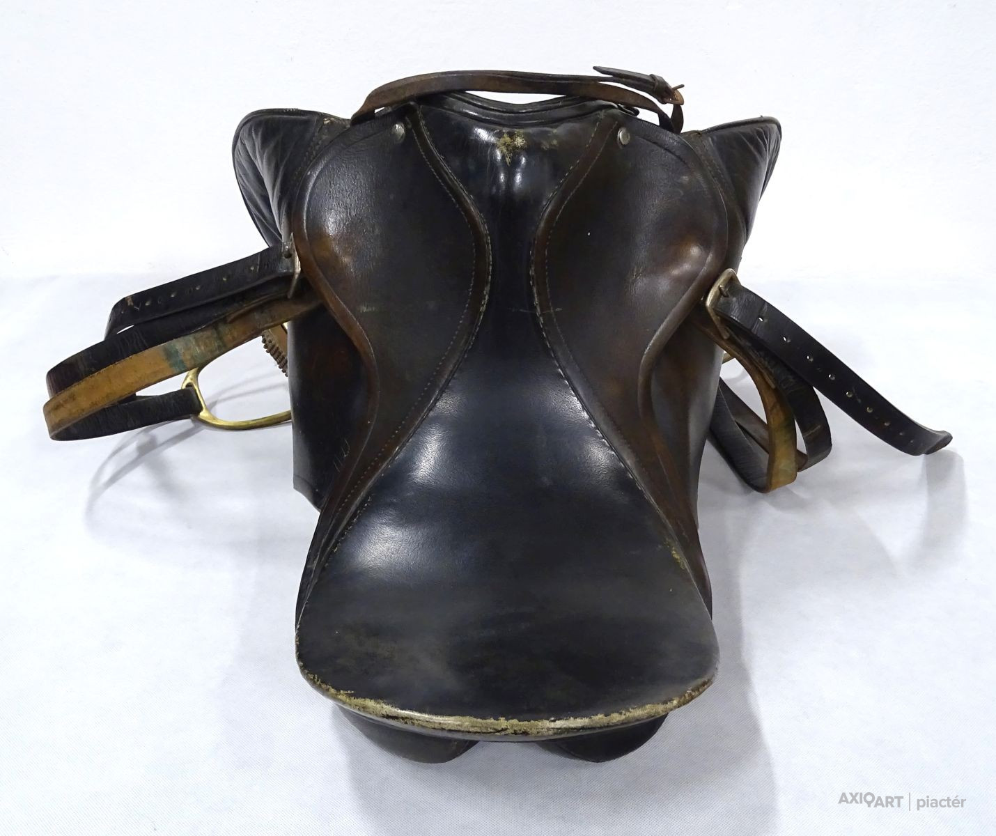 Szép állapotú bőr nyereg alátéttel, réz kengyellel. A réz kengyelben jelzett gumi csúszásgátló betét található.