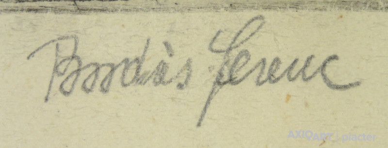 [FKC048/Bp67/27] 25% ÁRENGEDMÉNY MINDEN TERMÉKÜNKRE Dec. 17-ig A kép mérete: 19,5 x 29 cm keret nélkül. Készült: Rézkarc, Papír A kép Bordás Ferenc (Temesvár, 1911, Budapest, 1982) alkotása. Jelezve Jobbra lent "Bordás Ferenc (cer.)" A festmény jó állapotban van. Keret: Ép Magyar festők és grafikusok életrajzi lexikona I-II. Grafikus és festő. Korán megnyilatkozó tehetségét Devich Sándor szegedi rajztanár irányításával fejlesztette. Mint grafikus indult, elsősorban fametszéssel foglalkozott, melyre az akkor már Európa-szerte ismert szegedi grafikusművész, Buday György példája ösztönözte. A rézkarc művelése iránt pedig Hubert Woyty-Wimmer, bécsi mester keltette fel érdeklődését, noha az akkoriban Szegeden freskózó Aba-Novák Vilmos is érdeklődést váltott ki belőle. Vallomása szerint tőle tanult a legtöbbet, nem is formailag, hanem tartalmilag. Tanulmányúton járt Ausztriában, háromszor Olaszországban. A szegedi képzőművészek 1937-es kiállításán 42 fametszettel vett részt. Rendszeresen szerepelt Comóban, Luganóban, a hamburgi nemzetközi ex libris kongresszuson. A hadifogság után Székesfehérvárott Pallay Józseffel, valamint Áron Nagy Lajossal Képzőművészeti Kört vezetett 1950-ig. Indulása már az első években modern, s expresszionizmusba ágyazott szürrealista művek kerültek ki keze alól. Az '50-es évek végén inkább a színek felé hajlott, a grafikában is elsősorban a kolor-linó vonzotta, de itt is a vonalak és a színek teljes egyensúlyára törekedett. Prospektus, plakát, könyvcímlap, s a merkantil-grafika egyéb ágai mellett kirándult a könyvillusztráció területére is (Berczeli A.K., Fekete Madonna, Erdélyi album, stb.). A franciaországi Nancy-ban Diplome d'Honneur-rel tüntették ki, a Valentin Le Campion emlékpályázaton kitüntetést nyert. 1965-ben a Firenzei Akadémia megalapításának 500. évfordulóján tiszteletbeli tagjai közé sorolta. (T.E.: Műv. 1968/2, G.F.: Műv. 1971/3, Kiáll. Kat.) Magyar festők és grafikusok életrajzi lexikona I-II. Műgyűjtők és kereskedők kézikönyve Grafikus és festő. Korán megnyilatkozó tehetségét Devich Sándor szegedi rajztanár irányításával fejlesztette. Mint grafikus indult, elsősorban fametszéssel foglalkozott, melyre az akkor már Európa-szerte ismert szegedi grafikusművész, Buday György példája ösztönözte. A rézkarc művelése iránt pedig Hubert Woythy-Wimmer, bécsi mester keltette fel érdeklődését, noha az akkoriban Szegeden freskózó Aba-Novák Vilmos is érdeklődést váltott ki belőle. Vallomása szerint tőle tanult a legtöbbet, nem is formailag, hanem tartalmilag. Tanulmányúton járt Ausztriában, háromszor Olaszországban. A szegedi képzőművészek 1937-es kiállításán 42 fametszettel vett részt. Rendszeresen szerepelt Comoban, Luganoban, a hamburgi nemzetközi ex librisz-kongresszuson. A hadifogság után Székesfehérváron Pallay Józseffel, valamint Áron Nagy Lajossal Képzőművészeti Kört vezetett 1950-ig. Indulása már az első években modern, s expresszionizmusba ágyazott szűrrealista művek kerültek ki keze alól. Az 50-es évek végén inkább a színek felé hajlott, grafikáiban is elsősorban a kolor-linó vonzotta, de itt a vonalak és a színek teljes egyensúlyára törekedett. Prospektus, plakát, könyvcímlap, s a merkantil-grafika egyéb ágai mellett kirándult a könyvillusztráció területére is (Berczeli A.K.-Fekete Madonna, Erdélyi album, stb.). Nancy-ban Diplome d'Honneur-rel tüntették ki, a Valentin Le Campion emlékpályázaton kitüntetést nyert, majd 1965-ben a Firenzei Akadémia megalapításának 500. évfordulóján tiszteletbeli tagjai közé sorolta. (T.E.: Műv.-1968/2, G.F.: Műv.-1971/3) Magyar festők és grafikusok adattára Korán megnyilatkozó tehetségével Devich Sándor foglalkozott. Grafikusi hajlamainak kibontakozásában, elsősorban is a fametszésre - Buday György példája ösztönözte. A rézkarc művelése iránt pedig Hubert Weyty-Wimmer bécsi mester keltette föl érdeklődését, noha az akkoriban Szegeden freskózott Aba-Novák Vilmos is lekötötte. A szegedi képzőművészek 1937-es kiállításán 42 különböző fametszettel szerepelt. Szovjet hadifogsága után Székesfehérváron orvosként dolgozik, szabadidejében pedig a képzőművészeti kört vezeti. Grafikai tevékenysége teljes kötetlenségében - az ötvenes évektől kezdve - Budapesten való végleges letelepedését követően bontakozott ki. - Irod.: Szelesi Zoltán: Szeged képzőművészete. Szeged, 1975. Művészeti lexikon I-IV. Grafikus. Orvosi diplomát szerzett, de már egyetemi hallgató korától foglalkozik grafikával. Különösen a fametszést műveli. Több könyvet illusztrált. Művész életrajzok kortárs magyar képzőművészek Orvosi tanulmányaival párhuzamosan Aba-Novák Vilmostól festészetet, Devich Sándortól és Buday Györgytől grafikát tanult Szegeden, majd kisgrafikával és ex librisszel kezdett foglalkozni. Kiállításai voltak Szegeden (1937, 1938, 1971), Budapesten (1961, 1965, 1967, 1970, 1974, 1977), valamint a lengyelországi Malborkban (1967) és Tarnowban (1972). Tagja volt a firenzei Képzőművészeti Akadémiának (1965), munkáit díjazták számos nemzetközi kisgrafikai rendezvényen. - Az egyformán jól kezelt grafikai technikák közül a fametszet állt hozzá a legközelebb, melyet intellektuális igénnyel, egyéni jelképrendszer megteremtésével művelt. Vonzódott a drámai és epikus témákhoz, de sajátos egyensúlyérzéke mindig megóvta a túlzásoktól.
