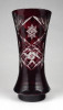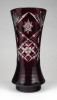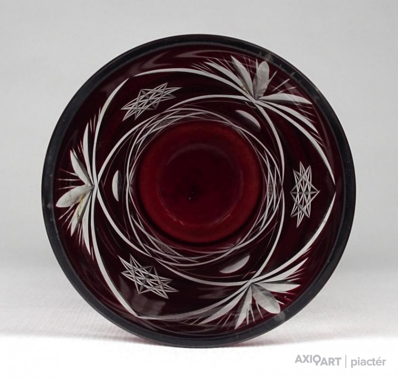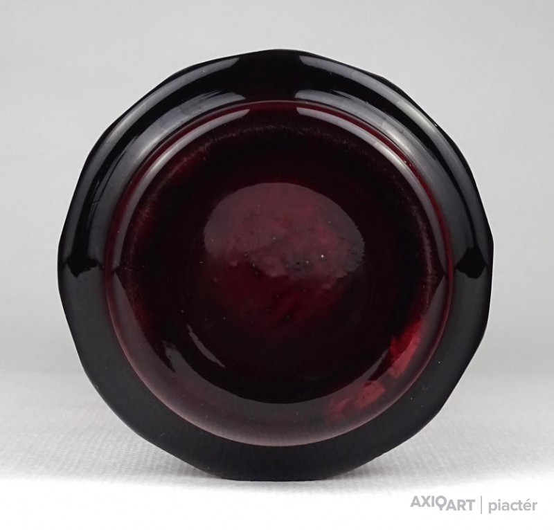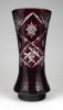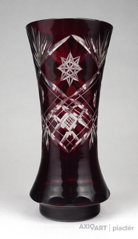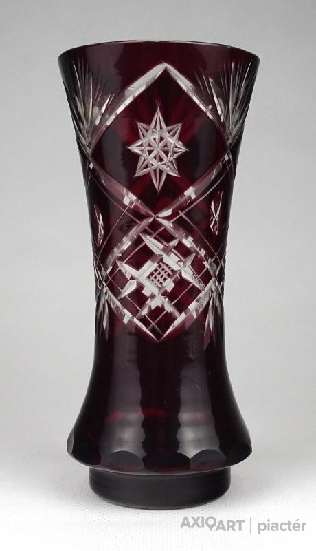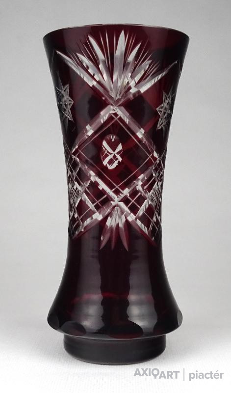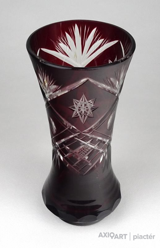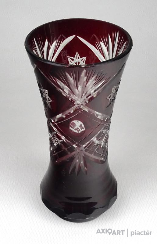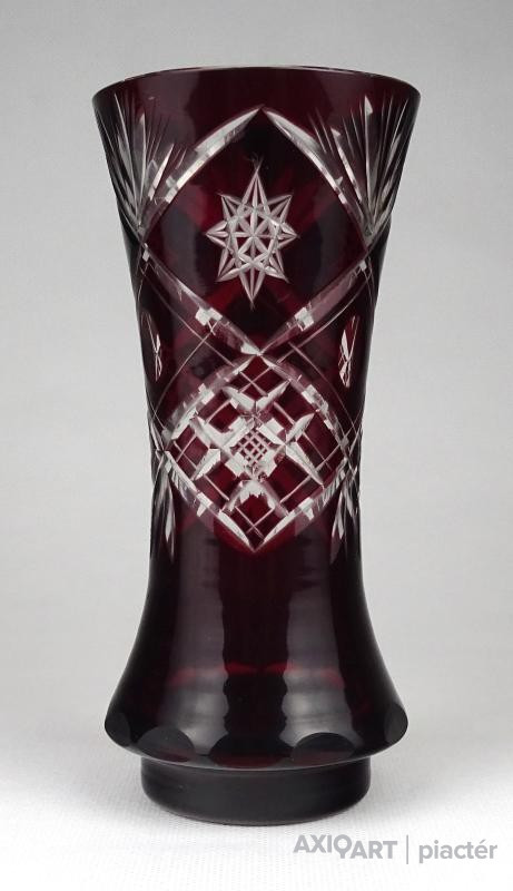 Hibátlan állapotú, gazdagon csiszolt, bordóra színezett, üveg váza, díszváza.