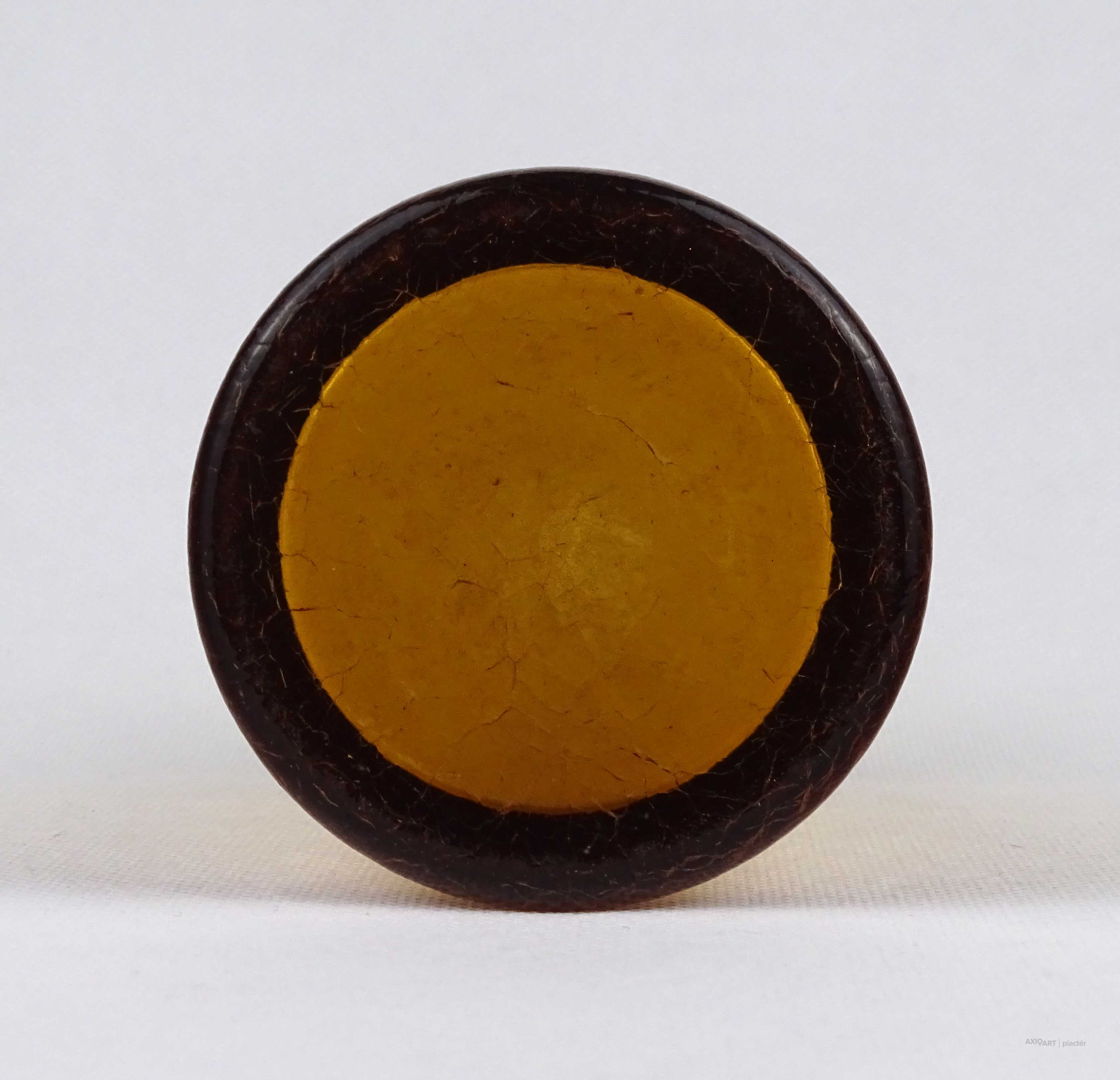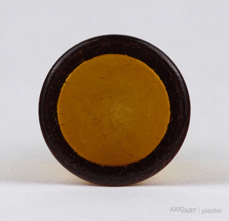 Borostyán sárga színű vastag falú repesztett üveg váza 13.7 cm