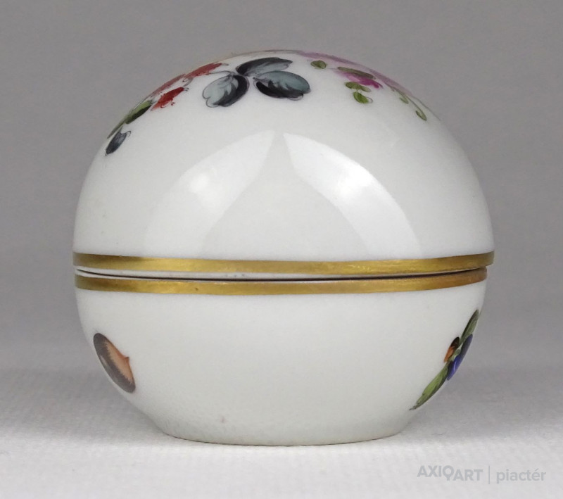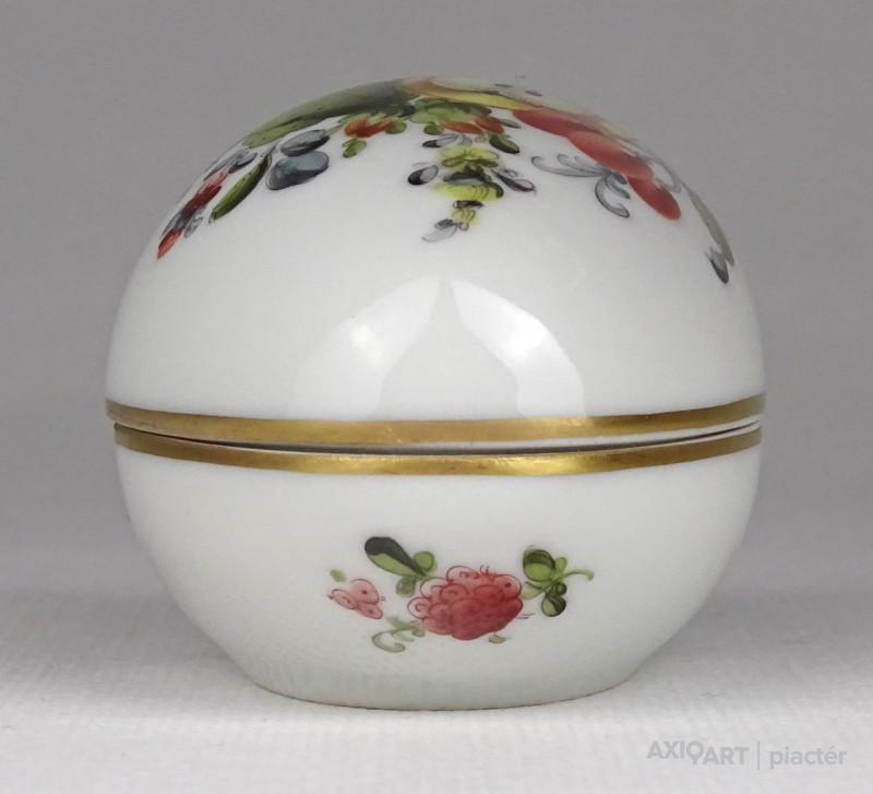 Szép állapotú, gyümölcs mintás, tojás alakú, Herendi porcelán bonbonier.
