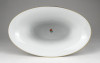 Hibátlan állapotú, ovális alakú, nagy méretű Viktória mintás, vastagon aranyozott oroszlán lábas porcelán kaspó.
