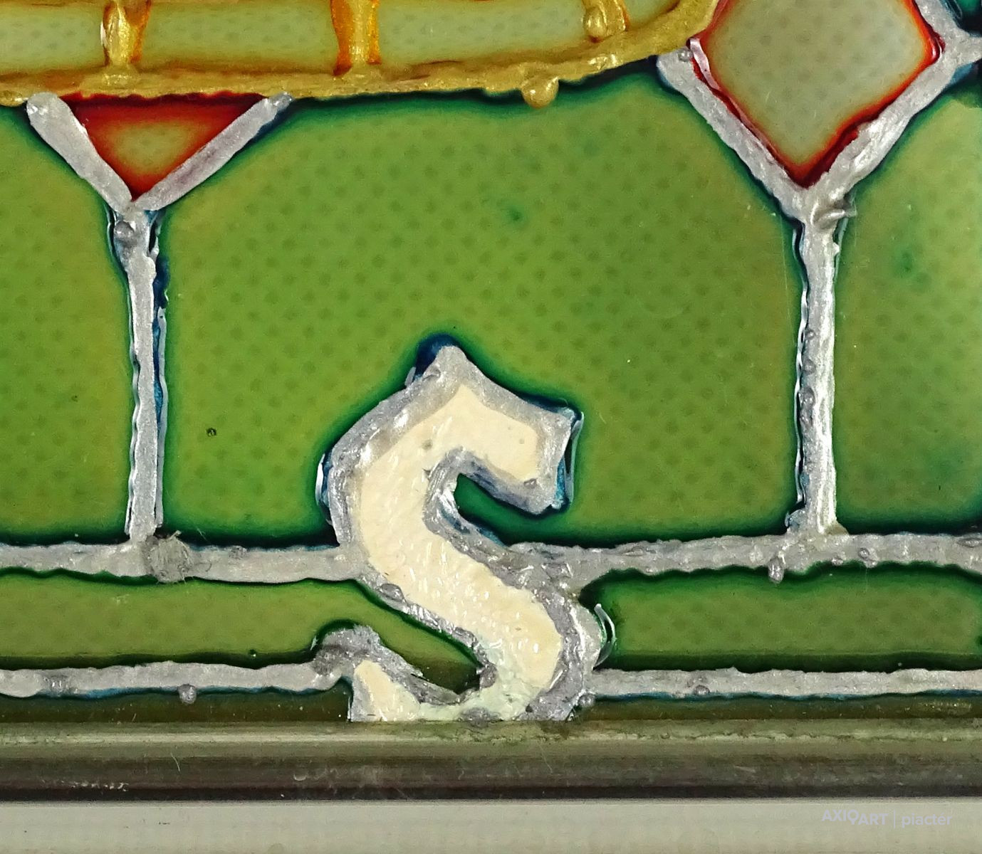 [1Y029/Z018] Olaj farost festmény, üveglap mögött, hibátlan képcsarnokos keretben. Hátoldalán Képcsarnok Vállalat papír címkéje: A művész neve: SCHÉNER MIHÁLY A kép címe: TÁJ Magasság: 66.5 cm Szélesség: 86 cm Súly: 6.54 kg Schéner Mihály festő, grafikus, szobrász, keramikus, bábtervező Medgyesegyháza, 1923-01-9 Elhalálozott: Budapest, 2009. május 11. Honlap: http://www.kormendigaleria.hu/kiadvany.html 1942-1947: Magyar Képzőművészeti Főiskola, tanára: Rudnay Gyula. 1978: Munkácsy-díj; 1984: érdemes művész; 1989: kiváló művész; 1995: Kossuth-díj. 1992-től a Magyar Művészeti Akadémia, 1993-tól a Széchenyi Irodalmi és Művészeti Akadémia tagja. 1956-ig tanított. 1982: Nagyatádi Faszobrász Alkotótelep, 1985: Nemzetközi Acélszobrász Alkotótelep, Dunaújváros. A stílusában felismerhető, mégis sokféle műtárgyat létrehozó ~ gazdag, állandóan alakuló életműve a folyton változó világban helyét kereső, az alkotói szabadságot megvalósító XX. századi képzőművész példázata lehetne. Magát expresszív-szürrealista alkotónak nevezi. Egyaránt dolgozik festékkel, textillel, fával, fémmel. Rajzol, szerkeszt, farag, épít, gyúr, varr és ragaszt, felhasználja a mézesbábok öntőformáit. Festő, rajzoló, textilszobor- és bábkészítő, fazekas, asztalos, esztergályos. Háromlépcsős folyamatban gondolkozik: rajzban tervez, majd fest, szobrot készít, “formába önt”, mindig a végső plasztikai megoldást keresi. Ami állandó és mégis játékosan változékony megjelenésű Schéner művészetében, az a gyermekkori emlékek által meghatározott népi mesterségek iránti tiszteletet kifejező motívumkincs, a tárgyi folklór formakészlete, amely már-már kézjegyként ismétlődik munkáin. Mitologikussá nőtt képzelete új lényeket teremt, pl: a Pigulát, amely disznótestű, emberfejű teremtmény. Schéner festményein a szürrealista motívumokat konstruktív szerkezetbe rendezi, a geometriát és az organikus természeti motívumokat egyaránt beépíti műveibe. A népi, népművészeti formakincsből merített lovas huszárok, betyárok, szegénylegények cifra szűr mentéje, piros csákója, fekete csizmája, az önálló életet élő zsinórdíszek és mézeskalács bábok, a kiskocsik a gyermekkori vásárok, búcsúk színes forgatagába vezet. A primér motívumokat aztán felváltják a vastagon felhordott felületbe karcolt jelek, vonalhálózatok, amelyek a játszó gyermek homokba rajzolt ábráit, a pásztorember fába vésett üzeneteit, az ősember barlang falába rótt mágikus jeleneteit idézik meg. A művész pillanatnyi érdeklődésének megfelelően a színek búvópatakként tűnnek el és jelennek meg ismét. A 60-as években leginkább a formákkal való játék érdekelte, a festmények felülete egyre gazdagodott: a táblaképek felületén applikációk jelentek meg, vagy lemállasztott rétegek hagyták maguk után hiányukat, motívumok nélküli ősformák, archetipikus képzetek bukkantak fel művészetében. A véletlenszerűnek látszó rétegekkel való játék azonban tudatos komponálás eredménye, amely később nyilvánvaló ritmusnak és formai szerkesztettségnek adja át a helyét, mint a Törvénytáblák c. sorozaton. A különböző művészi kifejezési formák egymásra termékenyítő hatással vannak, át- meg áthatják egymást. Textilszobrai, amelyekkel új műfajt teremtett, ugyanazzal az automatikus, expresszív-szürrealista módszerrel készülnek, mint festményei. A hagyományosan a népművészetben alkalmazott anyag, a filc lehetőséget ad a népi formakincs felelevenítésére, amely azonban a művész különös szürrealista átiratában jelenik meg. A szívekkel kivarrt, zsinórdíszes Posztókotlós c. művén mézesbábok lógnak, hátán huszárok lovagolnak. Egész sor textilből készült kéz-plasztikát alkot, amelyeket az ujjakra rávarrt díszekkel öltöztet, személyesít meg. A színes-különös világból aztán ~ újra puritán képi és formai rendbe juttatja el a nézőt, majd nemsokára tépett, gyűrt, vágott, csorgatott, repedezni hagyott szenvedélyesen vonagló képi felületeket hagy hátra. Schéner készített apró gyermekjátékokat, térstruktúra-tereket, mászókákat is. A magyar népi formák mellett szürreális játékaiban gyakran alkalmaz görög mitológiai alakokat, “elkentaurosodott” lovakat, Gorgó-fejeket, sellőket, hárpiákat, Pán-ábrázolásokat. Schéner nemcsak saját művészetéről publikál, hanem művésztársairól is számos írása jelenik meg, elsősorban az Új Auróra c. folyóiratban, amelynek egy ideig főmunkatársa volt. Irodalom kiállítása, Magyar Építőművészet, 1962/4. Húsz év után, Művészet, 1965/4. BOZÓKY M.: ~, Tiszatáj, 1968/5. PERNECZKY G.: Nincs uborkaszezon, Élet és Irodalom, 1969. augusztus 8. BARÁNSZKY-JÓB L.: ~, Művészet, 1969/9. LÁSZLÓ GY.: ~ kaposvári kiállítása, Jelenkor, 1969/4. MAJOR M.: Pásztorok, betyárok, huszárok - kezek, Tükör, 1970. szeptember 15. FRANK J.: Bemutatjuk ~t, Élet és Irodalom, 1972. május 6. ról kiállítása ürügyén, Képzőművészeti Almanach, Budapest, 1972 Sötétkék kokasok, Élet és Irodalom, 1973. szeptember 9. MAJOR M.: ~ játékai, Élet és Irodalom, 1974. július 27. BARTA J.: Egy különös művész, Alföld, 1974/6. VADAS J.: Szárnykészítők, Élet és Irodalom, 1975. október 4. JUHÁSZ F.: A halál ellen játszani, Élet és Irodalom, 1975. május 17. PAP G.: Kincsek és műkincsek, Művészet, 1975/6. P. SZŰCS J.: Az utak kettéválnak, Művészet, 1978/3. Békési művészet, Művészet, 1978/7. SZAMOSI F.: ~ [kismonográfia], Budapest, 1978 VADAS J.: Játék a játékkal, Élet és Irodalom, 1979. augusztus 18. NÉMETH L.: ~ műveiről, Művészet, 1979/4. MIKLÓS P.: Mit akar ez a múzeum?, Művésze