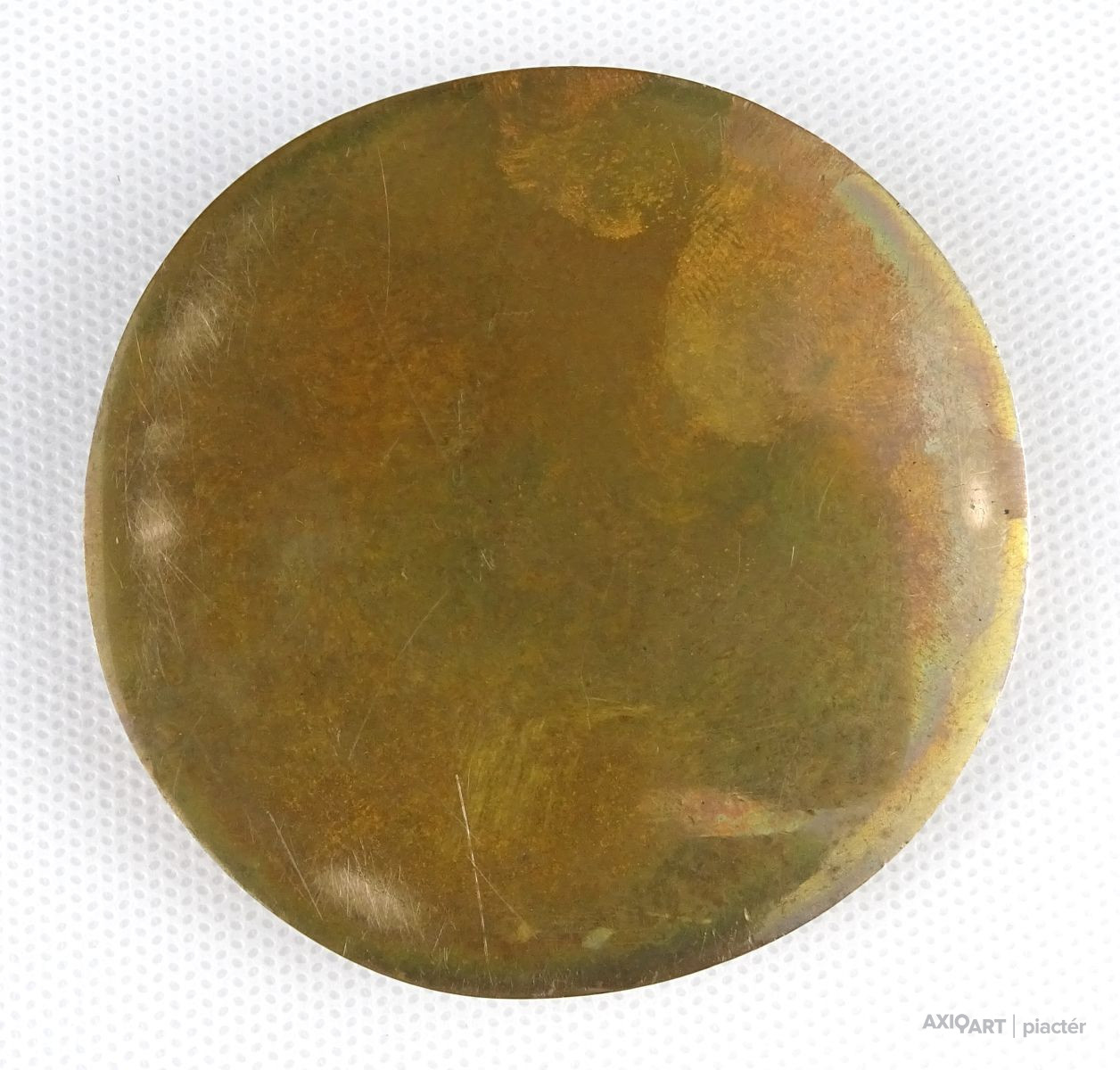 [0F946/X043] Hibátlan állapotú, kétoldalas bronz érem. Egyik oldalon felirat: ACHATIUS BARCSAI DE NAGYBARCSA Másik oldalon felirat: ÉREMGYŰJTŐK HAJDÚ-BIHAR MEGYEI SZERVEZETE 1925 - 1988 Jelzés: TS TÓTH S. Szélesség: 4.2 cm Súly: 0.03 kg Tóth Sándor (1933) szobrász szobrász Születési hely: Miskolc Születési dátum: 1933     Mesterei: Hincz Gyula, Pap Gyula, Barcsay Jenő, Kisfaludi Strobl Zsigmond. 1951-1959: Magyar Képzőművészeti Főiskola, mesterei: Hincz Gyula, Pap Gyula, Barcsay Jenő, Kisfaludi Strobl Zsigmond. 1959-ben a művészeti főiskolák Tanácsköztársasági Pályázatának nagydíját nyerte el. 1959-1960-ban a Művészeti Alap ösztöndíjával a hódmezővásárhelyi telepen alkotott. 1961-ben Szegeden telepedett le és 1974-ig a Művészeti Gimnázium tanára. Ezt követően Nyíregyházán kapott műtermet, ahol alkotótevékenysége mellett eredményes szakköröket vezetett. Egy évtizedig volt a szabolcsi művészek szervezetének titkára. Számos szegedi és nyíregyházi szobrászművészt indított el a pályán. 1977-ben kezdeményezte a Nyíregyháza-sóstói Nemzetközi Éremművészeti és Kisplasztikai Alkotótelep alapítását, az Alkotótelepi Tanácsnak indulástól fogva tagja. Főiskolás éveiben 1954-től nyaranta a hódmezővásárhelyi, 1969-ben a zsennyei, 1971-1975 között a villányi, 1973-ban a kecskeméti és oronskói (PL), 1974-1976 között, 1983-ban, 1985-ben, 1991-ben a nyíregyháza-sóstói, 1975-ben a burgaszi (BG), 1976-ban a potsdami (Német Demokratikus Köztársaság) és a zamosci (PL); 1977-ben a rzeszówi (PL), 1988-ban a palangai (Litvánia), a dzintari-i (Lettország) és a zsdennyevoni (UA), 1988-ban a körmöcbányai, 1992-ben a klaipédai (Litvánia) művésztelepen dolgozott. Eredményes munkásságát számos elismerés jelzi: 1962: Szegedi Nyári Tárlat III. díja; 1963: Szegedi Nyári Tárlat II. díja; 1964: Alföldi Tárlat díja, Gyula; 1968: Szegedi Nyári Tárlat díja; 1969: Szocialista Kultúráért; 1970: Békéscsabai Alföldi Tárlat Nívódíja; 1972: Szegedi Nyári Tárlat díja; Szabadka Város díja; 1973: Békéscsabai Alföldi Tárlat Munkácsy Emlékérme; 1974: Firenzei Giorgio Vasari Nemzetközi Éremverseny 3. díja; 1975: Felszabadulási Pályázat III. díja, Hódmezővásárhely; 1982: Munkácsy-díj; 1984: Szegedi Nyári Tárlat díja; 1986: a Magyar Éremgyűjtők Egyesülete az év legszebb egyesületi érme kitüntetése; 1989: Iserlohn Város díja; 1991: VI. Pál pápa ezüst Emlékérme; 1995: Ravenna Város Aranyérme; 1996: Hatvani Portré Biennálé díja; 1997: Hadtörténeti Múzem Kiállítási díja; Szeged Megyei Jogú Város Polgármesteri Hivatala díja. Az 1986-1987-es tanévben az Egri Tanárképző Főiskola tanszékvezető főiskolai tanára volt. Első kiállításain a szobrászati alkotások mellett festmények és rajzok is helyt kaptak. Rézlemez-domborításai és kisplasztikái témáit leginkább családja életéből vette. Realista stílusú - ritkán absztrakt felfogású (Madarak és halak sorozat, 1972) - alkotásai leggyakrabban bronzból készülnek, de jól bánik más anyagokkal is. Korábban gyakran készített terrakotta, mészkő-, márvány- és faszobrokat. Számos köztéri munkát készített, melyek között emléktáblák, emlékművek, büsztök, önálló térplasztikák sorakoznak. Legmonumentálisabb alkotásaként tarjuk számon a máriapócsi Bazilita templom kapuját. Vert és öntött érmeket is készít. Jelentős emlékérmeinek és orvosi vonatkozású érmeinek száma. Forrás: artportal.hu