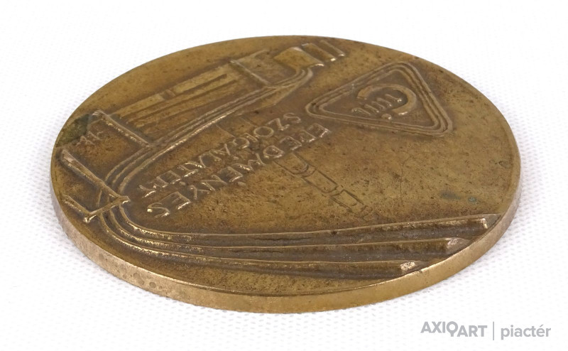 [1M123/X000] Kétoldalas plasztikus bronz plakett, emlék plakett. Ötágú csillag alatt felirat: FELSZABADULÁSUNK 40. ÉVFORDULÓJÁN MISKOLC VÁROS TANÁCSA Jelzés: CLS (CSL) Szélesség: 9.8 cm Súly: 0.35 kg Szabolcs Péter szobrász Diósgyőr, 1942-09-22 Névváltozat: Przetacznik Szabolcs 1967: Magyar Képzőművészeti Főiskola, mesterei: Szabó Iván, Somogyi József. 1967-től Zalaegerszegen él. 1975: Nemzetközi Dante Biennálé, aranyérem, Ravenna; Fiatal Képzőművészek Stúdiója Egyesület Jubileumi kiállítás, II. díj; 1978: III. Dunántúli Tárlat, Somogy megyei Tanács díja; Szocialista Kultúráért kitüntetés; 1983: Zala megyei Tanács Alkotói Díja; 1984: Munkácsy-díj. Kezdetektől a mintázás, a lágy anyagból készített plasztika határozza meg munkásságát. ~ alapvetően bronzszobrász. Az Egervári Művésztelepen, a 70-es évek elején fával is dolgozott, később gyakran fa-fém kompozíciókat is készített, olykor egészen pop-artos fölfogásban (Göcsej, 80-as évek). A rézlemez domborításával is finom, érzékeny plasztikákat hozott létre. A feladat különlegessége olykor kemény, feszített komponálásra készteti (Tulipán, 1985, Zalaegerszeg, Dísz tér). Bronz plasztikáinak legfőbb értéke az érzelmi töltést hordozó érzékeny mintázásmód. Irodalom  ~ Munkácsy-díjas szobrászművész (kat., bev. tan., Városi Hangverseny- és Kiállítóterem, Zalaegerszeg, 1992) Huszonöt év munkái. ~ retrospektív tárlata, Új Művészet, 1993/1.  ~ szobrászművésszel, Pannon Tükör, 1996/6.  Zalaegerszeg, 2000. Egyéni kiállítások Egyéni kiállítások 1975 • Ifjúsági Ház, Zalaegerszeg 1982 • Színház, Körmend • Kőolajipari Vállalat, Zalaegerszeg 1986 • Balatoni Múzeum, Keszthely • Thury Gy. Múzeum, Nagykanizsa • Képcsarnok, Kecskemét 1989 • Mannheim (Német Szövetségi Köztársaság) 1994 • Művész Színház • Vármúzeum, Esztergom 2000 • Az én Millenniumom, CIB Bank, Zalaegerszeg. Válogatott csoportos kiállítások Válogatott csoportos kiállítások 1971 • III. Országos Kisplasztikai Biennálé, Pécs 1973 • Pannonia Biennálé, Savaria Múzeum, Szombathely 1974 • Zalai művészek, Pécs 1975 • Jubileumi Képzőművészeti kiállítás, Műcsarnok, Budapest • Ifjúság a szocializmusban, Magyar Nemzeti Galéria, Budapest • Nemzetközi Dante Biennálé, Ravenna 1976 • Fiatal Képzőművészek Stúdiója Egyesület, Műcsarnok, Budapest • V. Országos Kisplasztikai Biennálé, Pécs • Fiatal művészek Magyarországról, Párizs 1977 • Nemzetközi Dante Biennálé, Ravenna • Művészet a Művészetben, Dél-Balatoni Kulturális Központ, Siófok 1978 • Magyar szobrászat, Műcsarnok, Budapest • Dunántúli Tárlat, Somogyi Képtár, Kaposvár 1979 • Faszobrászat, Csontváry Terem, Pécs • Zalai művészek, Herszon (Szovjetunió) 1981 • Dunántúli Tárlat, Somogyi Képtár, Kaposvár 1982 • Nemzetközi Éremművészeti Alkotótelep, Nyíregyháza • Magyar művészek, Tolbuchin (BG) • Zalai művészek, Zalaegerszeg, Keszthely • Szobrászat, Budapesti Történeti Múzeum, Budapest • Zalai művészek, Gorizia (OL) 1987 • Dunántúli Tárlat, Somogyi Képtár, Kaposvár 1989 • Téli Tárlat, Magyar Képzőművészek és Iparművészek Szövetsége, Műcsarnok, Budapest • VII. Országos Éremművészeti Biennálé, Lábasház, Sopron 1995 • Helyzetkép/Magyar szobrászat, Műcsarnok, Budapest 1996 • Corpus, Vaszary Képtár, Kaposvár • Vasarely Múzeum, Budapest 1997 • Magyar Szalon ’97, Műcsarnok, Budapest. Forrás: artportal.hu