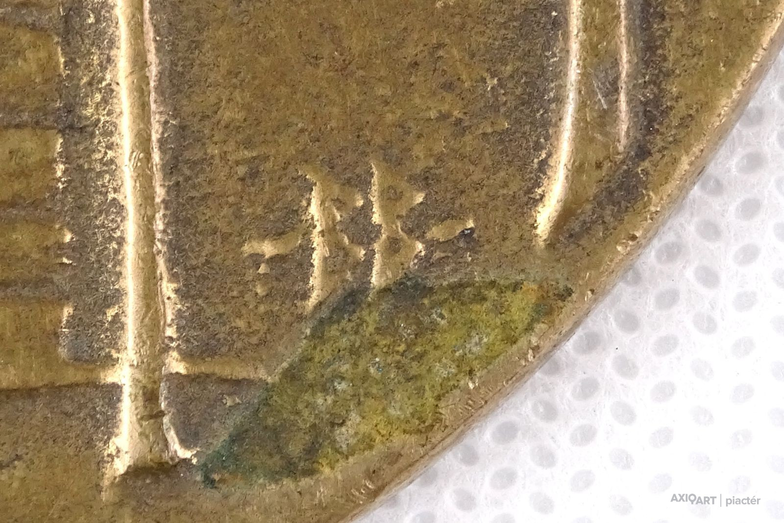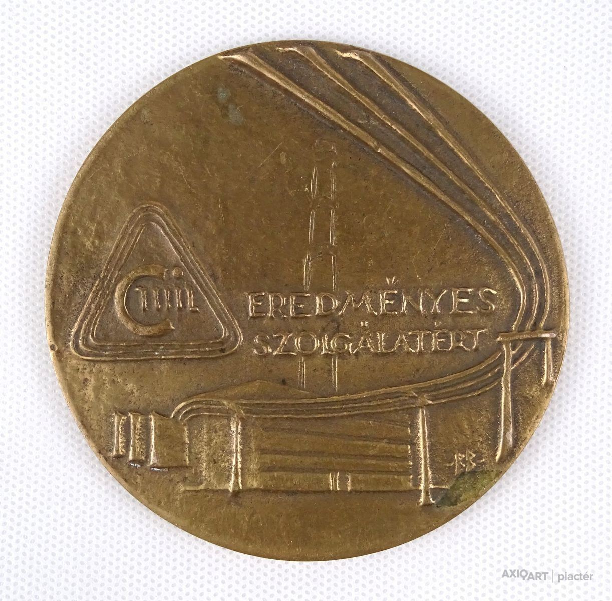 [0F946/X043] Hibátlan állapotú, kétoldalas bronz érem. Egyik oldalon felirat: ACHATIUS BARCSAI DE NAGYBARCSA Másik oldalon felirat: ÉREMGYŰJTŐK HAJDÚ-BIHAR MEGYEI SZERVEZETE 1925 - 1988 Jelzés: TS TÓTH S. Szélesség: 4.2 cm Súly: 0.03 kg Tóth Sándor (1933) szobrász szobrász Születési hely: Miskolc Születési dátum: 1933     Mesterei: Hincz Gyula, Pap Gyula, Barcsay Jenő, Kisfaludi Strobl Zsigmond. 1951-1959: Magyar Képzőművészeti Főiskola, mesterei: Hincz Gyula, Pap Gyula, Barcsay Jenő, Kisfaludi Strobl Zsigmond. 1959-ben a művészeti főiskolák Tanácsköztársasági Pályázatának nagydíját nyerte el. 1959-1960-ban a Művészeti Alap ösztöndíjával a hódmezővásárhelyi telepen alkotott. 1961-ben Szegeden telepedett le és 1974-ig a Művészeti Gimnázium tanára. Ezt követően Nyíregyházán kapott műtermet, ahol alkotótevékenysége mellett eredményes szakköröket vezetett. Egy évtizedig volt a szabolcsi művészek szervezetének titkára. Számos szegedi és nyíregyházi szobrászművészt indított el a pályán. 1977-ben kezdeményezte a Nyíregyháza-sóstói Nemzetközi Éremművészeti és Kisplasztikai Alkotótelep alapítását, az Alkotótelepi Tanácsnak indulástól fogva tagja. Főiskolás éveiben 1954-től nyaranta a hódmezővásárhelyi, 1969-ben a zsennyei, 1971-1975 között a villányi, 1973-ban a kecskeméti és oronskói (PL), 1974-1976 között, 1983-ban, 1985-ben, 1991-ben a nyíregyháza-sóstói, 1975-ben a burgaszi (BG), 1976-ban a potsdami (Német Demokratikus Köztársaság) és a zamosci (PL); 1977-ben a rzeszówi (PL), 1988-ban a palangai (Litvánia), a dzintari-i (Lettország) és a zsdennyevoni (UA), 1988-ban a körmöcbányai, 1992-ben a klaipédai (Litvánia) művésztelepen dolgozott. Eredményes munkásságát számos elismerés jelzi: 1962: Szegedi Nyári Tárlat III. díja; 1963: Szegedi Nyári Tárlat II. díja; 1964: Alföldi Tárlat díja, Gyula; 1968: Szegedi Nyári Tárlat díja; 1969: Szocialista Kultúráért; 1970: Békéscsabai Alföldi Tárlat Nívódíja; 1972: Szegedi Nyári Tárlat díja; Szabadka Város díja; 1973: Békéscsabai Alföldi Tárlat Munkácsy Emlékérme; 1974: Firenzei Giorgio Vasari Nemzetközi Éremverseny 3. díja; 1975: Felszabadulási Pályázat III. díja, Hódmezővásárhely; 1982: Munkácsy-díj; 1984: Szegedi Nyári Tárlat díja; 1986: a Magyar Éremgyűjtők Egyesülete az év legszebb egyesületi érme kitüntetése; 1989: Iserlohn Város díja; 1991: VI. Pál pápa ezüst Emlékérme; 1995: Ravenna Város Aranyérme; 1996: Hatvani Portré Biennálé díja; 1997: Hadtörténeti Múzem Kiállítási díja; Szeged Megyei Jogú Város Polgármesteri Hivatala díja. Az 1986-1987-es tanévben az Egri Tanárképző Főiskola tanszékvezető főiskolai tanára volt. Első kiállításain a szobrászati alkotások mellett festmények és rajzok is helyt kaptak. Rézlemez-domborításai és kisplasztikái témáit leginkább családja életéből vette. Realista stílusú - ritkán absztrakt felfogású (Madarak és halak sorozat, 1972) - alkotásai leggyakrabban bronzból készülnek, de jól bánik más anyagokkal is. Korábban gyakran készített terrakotta, mészkő-, márvány- és faszobrokat. Számos köztéri munkát készített, melyek között emléktáblák, emlékművek, büsztök, önálló térplasztikák sorakoznak. Legmonumentálisabb alkotásaként tarjuk számon a máriapócsi Bazilita templom kapuját. Vert és öntött érmeket is készít. Jelentős emlékérmeinek és orvosi vonatkozású érmeinek száma. Forrás: artportal.hu