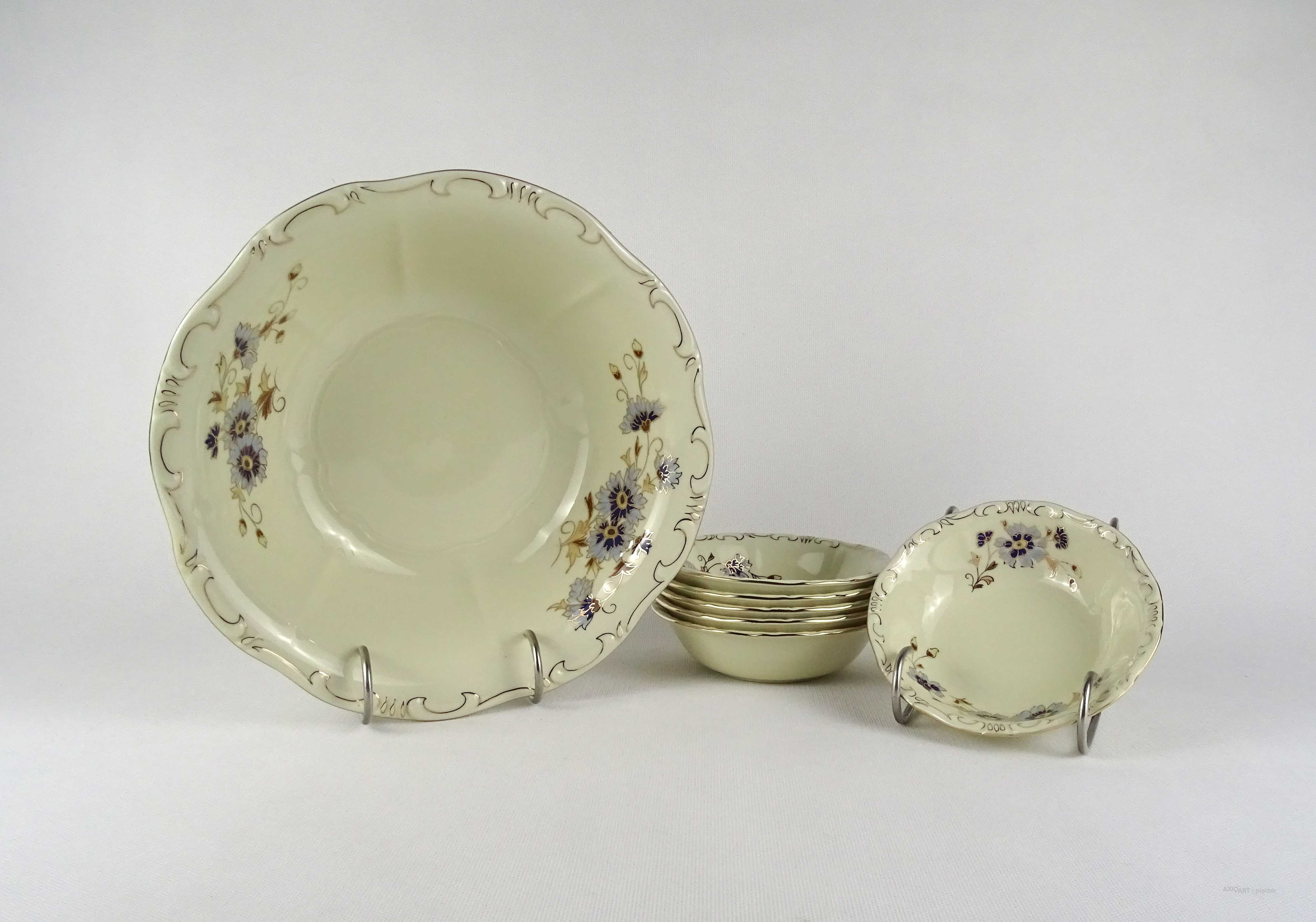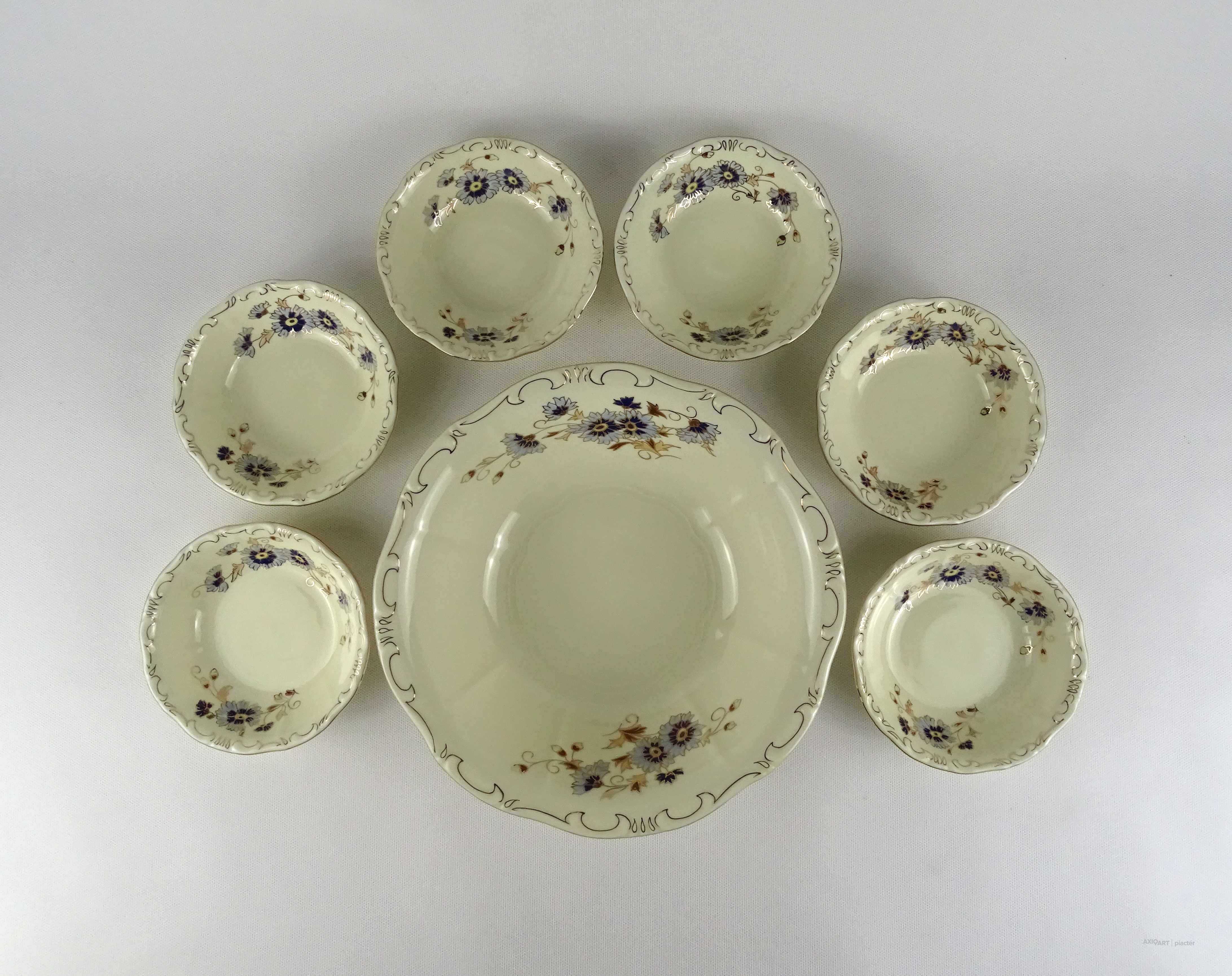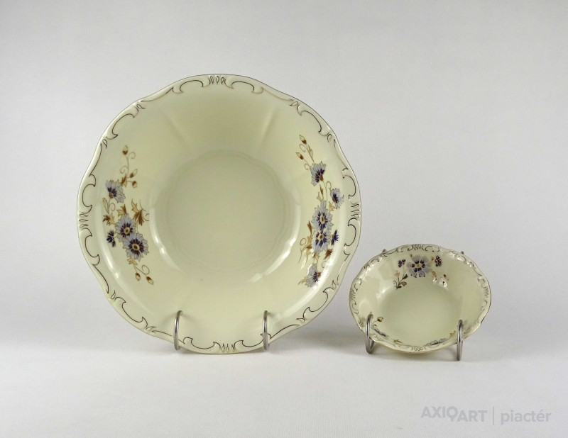 Búzavirág mintás vajszínű Zsolnay porcelán kompótos készlet