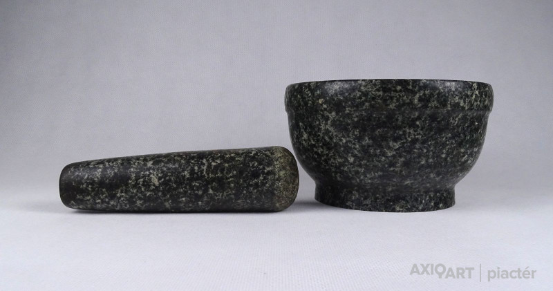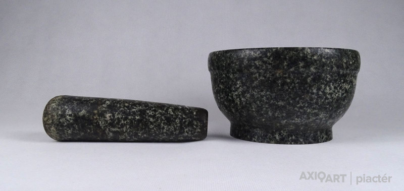 Régi, sérülésmentes, vastagfalú (2.5 cm) márvány mozsár törővel. Dísznek és használatra egyaránt alkalmas.