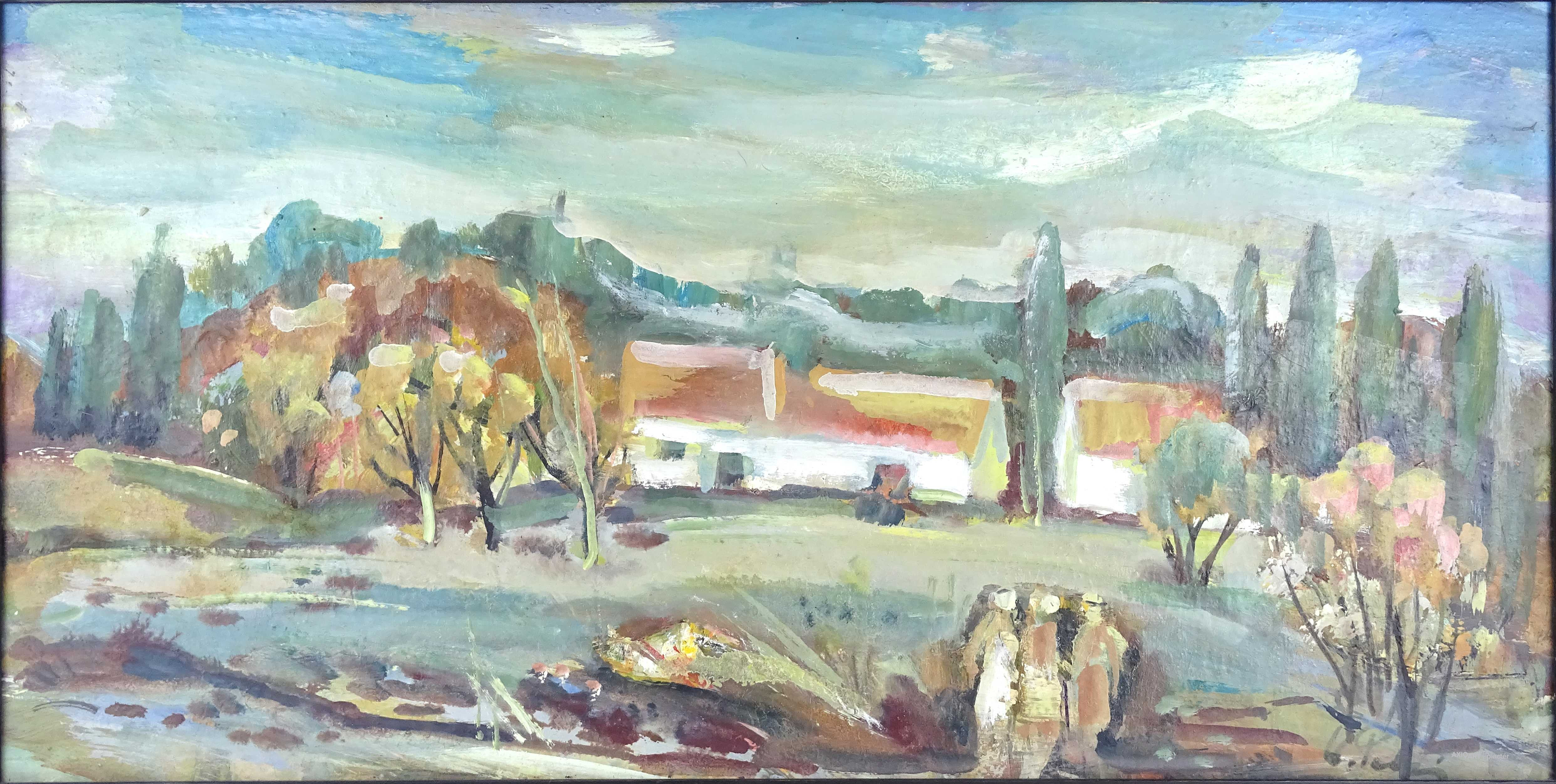 [FK2668/Bp301/4] A kép mérete: 50,5 x 80,5 cm keret nélkül. Készült: Olaj, Vászon A kép Moldován István (Kolozsvár, 1911) alkotása. Jelezve Jobbra lent "Moldován István" A festmény jó állapotban van. Keret: Ép A festmény hátoldalán a Képcsarnokvállalat raglapja láltható. Magyar festők és grafikusok életrajzi lexikona I-II. Festő. Tanulmányait Kolozsvárott, a Szépművészeti Főiskolán kezdte 1930-ban. A következő esztendőben a nagybányai Szépművészeti Iskolában Thorma János és Krizsán János korrektúráján képezte magát. 1931-ben a budapesti Képzőművészeti Főiskola hallgatója lett. Réti István, később Szőnyi István volt a mestere. Már mint főiskolás sok díjat és kitüntetést nyert. 1948-ban megkapta a római ösztöndíjat, de lemondva róla, Erdélybe ment. 1948-1950 között Erdélyben élt, és népművészetben gazdag vidékein festett. 1943-ban Kolozsvárott, 1946-ban Gyöngyösön, 1955-ben, 1959-ben és 1962-ben a Kulturális Kapcsolatok Intézetében, illetve a Csók Galériában rendezett egyéni bemutatókat. Ezen kívül több Európai országban, az USA-ban, Kanadában és Indiában is bemutatta munkáit. Eleinte sajátos atmoszférájú, lírai tájképeket, eleven színvilágú képmásokat festett, később mondernebb, erőteljesebben szerkesztett művekkel jelentkezett. A Pécsi Tanárképző Főiskola számára mozaikot készített. Erdély szerelmese volt. A székely népművészet gazdag formavilágának hatása döntő jelentőségűvé vált sokoldalú művészetében. Műv. díjak: a Szinyei Társaság elismerő oklevele, a Főváros festészeti-díja, "Kolozsvár a képzőművészetben" II. díj, állami ösztöndíj, római ösztöndíj, a Képzőművészek Szövetsége Észak-Magyarországi festészeti díja, SZOT festészeti díj. Több murális művet (mozaik) alkotott. A Magyar Nemzeti Galéria több alkotását őrzi. (M. L.: Műv. 1967/6, RI-NM) Magyar festők és grafikusok életrajzi lexikona I-II. Műgyűjtők és kereskedők kézikönyve Festő. Tanulmányait a kolozsvári Szépművészeti Főiskolán kezdte 1930-ban. A nagybányai szabadiskolában is megfordult. Itt Thorma János és Krizsán János korrektúráján képezte magát. 1931-ben Budapesten a Képzőművészeti Főiskola hallgatója lett. Réti István, később Szőnyi István volt a mestere. Már mint főiskolás sok díjat nyert. 1948-ban megkapta a római ösztöndíjat, de lemondva róla, Erdélybe ment. 1948-1950 k. Erdélyben élt, és népművészetben gazdag vidékein festett. 1943-ban Kolozsváron, 1946-ban Gyöngyösön, 1955-ben, 1959-ben és 1962-ben a Kulturális Kapcsolatok Intézetében, illetve a Csók Galériában rendezett önálló kiállítást. Ezen kívül több Európai országban, az USA-ban, Kanadában és Indiában is bemutatta műveit. Eleinte sajátos atmoszférájú, lírai tájképeket, eleven színvilágú képmásokat festett, később mondernebb, erőteljesebben szerkesztett művekkel jelentkezett. A Pécsi Tanárképző Főiskola számára mozaikot készített. Erdély szerelmese volt. A székely népművészet gazdag formavilágának hatása döntő jelentőségűvé vált sokoldalú művészetében. 1942-ben megkapta a Szinyei Társaság elismerését, és a Főváros festészeti-díjat,1943-ban elnyerte a "Kolozsvár a képzőművészetben" c. díjat. 1947-ben állami ösztöndíjat,1948-ban a római ösztöndíjat, 1972-ben a Képzőművészek Szövetsége Észak-Magyarországi festészeti díját kapta meg. A MNG több művét őrzi. (M. L.: Műv.-1976/6) Magyar festők és grafikusok adattára Tanulmányait Kolozsvárott a Képzőművészeti Főiskolán, majd Nagybányán Thorma János és Krizsán János irányítása mellett kezdte, 1931-től Budapesten megszakításokkal a Képzőművészeti Főiskolán Réti István és Szőnyi István növendékeként fejezte be. 1949-ben és 1950-ben ösztöndíjjal dolgozott Erdélyben, majd hosszú tanulmányutakra indult Nyugat-Európába, az Egyesült Államokba, s a Szovjetunióba. Először Kolozsvárott lépett a nyilvánosság elé 1943-ban, majd 1946-ban Egerben és Gyöngyösön, 1947-ben Miskolcon, 1948-ban Hatvanban, 1955, 1961 és 1981-ben a Csók Galériában, 1959-ben a KKI-ben, 1960-ban Nagykanizsán, 1963-ban Kiskunfélegyházán, 1966-ban Debrecenben, 1969 és 1975-ben Békéscsabán, 1971-ben a Mednyánszky Teremben, 1973-ban Gyöngyösön és Debrecenben, 1977-ben Egerben, 1979-ben Veszprémben, 1983-ban Miskolcon, 1984-ben Csepelen, 1986-ban a Vigadó Galériában rendezett önálló kiállítást. Külföldi kiállításai: Moszkva, Varsó, India, Szófia, Párizs, Bukarest, Belgrád, New York, Montreál és Toronto. Eddig közel kétezer színes táblaképet festett, de szívesen foglalkozik mozaikkészítéssel is. 1964-ben a Pécsi Pedagógiai Főiskola, 1968-ban a Salgótarjáni Kórház, 1969-ben a názáreti templom és 1970-ben a Videoton Vállalat díszterme részére mozaikot készített. - Erdély szerelmese. A székely népművészet gazdag formavilágának hatása döntő jelentőségűvé vált festészetében. Olyan formanyelvet alakított ki magának, amely színvilágában és summázó formaalakításában sajátos erdélyi zamat érződik, ugyanakkor korszerűen modern is konstruktivista stílusa. Munkásságát 1942-ben a Szinyei Társaság elismerésével és a Fővárosi festészeti-díjjal, 1943-ben Római-ösztöndíjjal, 1947-ben Állam ösztöndíjjal (Románai), 1963-ben a SZOT festészeti-díjával, 1972-ben a Képzőművészek Szövetsége Észak-Magyarországi festészeti-díjával tüntették ki. - Irod.: Bíró Béla: Kolozsváry Moldován István. Erdélyi Helikon, 1943.; Felvinczi Takács Zoltán: Kolozsváry Moldován István. Kolozsvár, 1943.; Dutka Mária: Magyar Nemzet, 1961.; Maksay László: Moldován István. Művészet, 1965.; D. Fehér Zsuzsa. Moldován István, Bp. 1971.; Theisler G