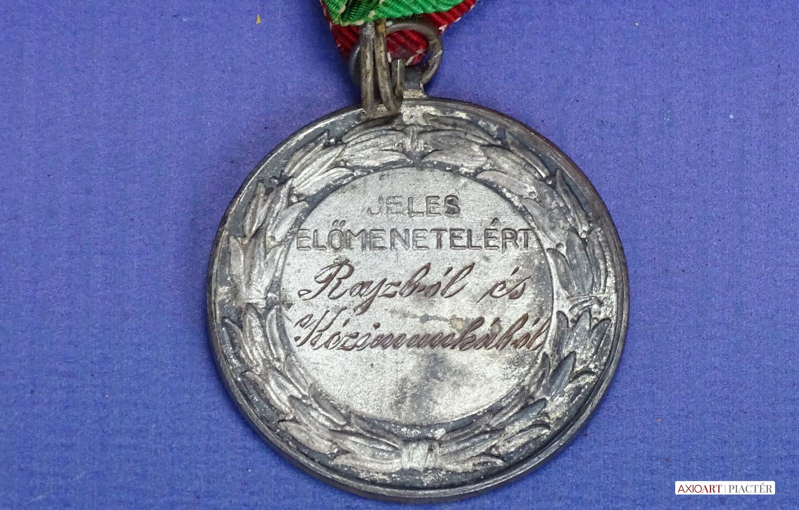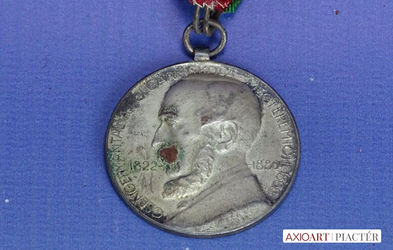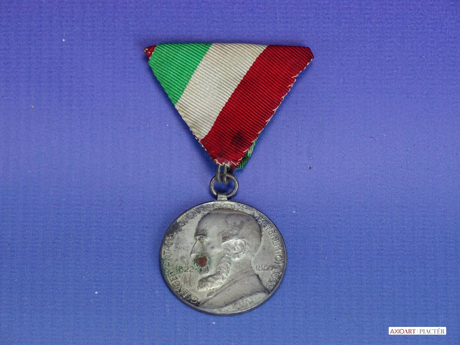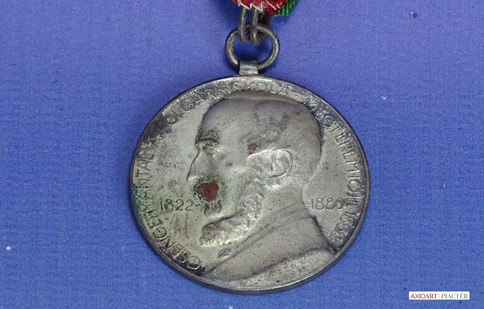 [0I726/X024/13] Régi, kétoldalas jelzett érem, emlékérem, piros-fehér-zöld trikoloron. Egyik oldalon Csengery Antal portréja és felirat: CSENGERY ANTAL A POLGÁRI ISKOLA MEGTEREMTŐJE 1868 Jelzés: ZS. CSISZÉR J. Másik körben koszorú és felirat: JELES ELŐMENETELÉRT RAJZBÓL ÉS KÉZIMUNKÁBÓL Szélesség: 3.5 cm Hosszúság: 8.3 cm Súly: 0.021 kg Csengery Antal [bevezető szerkesztése] A Wikipédiából, a szabad enciklopédiából Csengery Antal Született 1822. június 2. Nagyvárad Elhunyt 1880. július 13. (58 évesen) Budapest Foglalkozása politikus, országgyűlési képviselő, közgazdász, publicista A Wikimédia Commons tartalmazCsengery Antal témájú médiaállományokat. Csengery Antal (Nagyvárad, 1822. június 2. – Budapest, 1880. július 13.) politikus, közgazdász, publicista, a Magyar Tudományos Akadémia másodelnöke, a Magyar Földhitelintézetigazgatója, országgyűlési képviselő.   Forrás: www.wikipedia.hu   Csiszér János A Wikipédiából, a szabad enciklopédiából Csiszér János, zsákodi (Héjjasfalva, 1883. április 18. – Budapest, 1953. április 30.) szobrászművész. Pályafutása[forrásszöveg szerkesztése] A székelyudvarhelyi kő- és agyagipari szakiskola elvégzése után a budapesti Iparművészeti Iskolában tanult, majd a párizsi Académie de la Grande Chaumière növendéke lett. Auguste Rodinnél tanult. Itthon Zala Györgynél folytatta tanulmányait, majd önállóan dolgozott. Hősi emlékműveket, portrékat, zsáner- és egyházi témájú szobrokat, épület-domborműveket, síremlékeket, emléktáblákat készített. 1897 óta foglalkozott plakett- és éremművészettel. 1904 óta mellszobraival, plakettjeivel állandó szereplője volt a budapesti Műcsarnokkiállításainak. Ő mintázta Görgei Artúr visegrádi emlékművét 1933-ban és a városligeti hajdani Művészsétányra