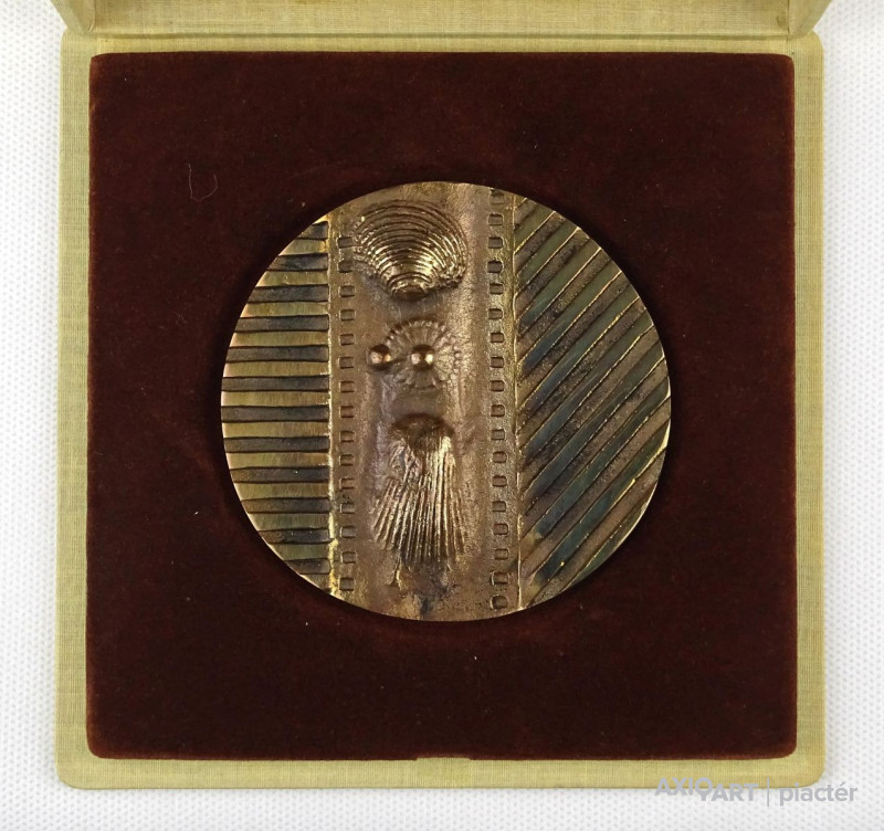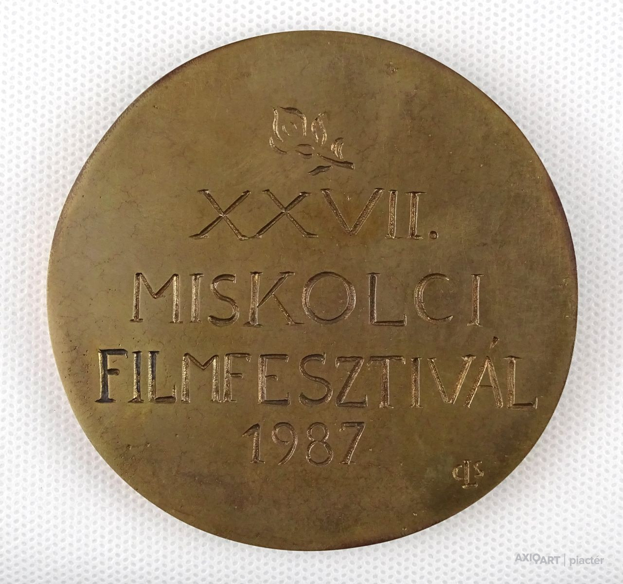 [1M083/X052] Szép állapotú, kétoldalas bronz érem, bronz plakett. Feliratok: XXVII. MISKOLCI FILMFESZTIVÁL 1987 Jelzés: CLS (CSL) Súly: 0.44 kg Cséri Lajos éremművész, szobrász Hajdúböszörmény, 1928-01-22 Névváltozat: Klein 1946-53: Magyar Képzőművészeti Főiskola, mesterei: Ferenczy Béni, Pátzay Pál. 1953-60: elsősorban a művészeti szervezeti életben dolgozott (Népművelési Intézet, MM, Művészeti Alap). Részt vett a tokaji művésztelep szervezésében. 1971-72-ben az USA több városában tanított szobrászatot (Syracuse, Cortland, Rochester). 1970 óta tagja a Nemzetközi Éremművészeti Szövetségnek. Klasszikus felfogásban készíti érmeit zeneszerzőkről (Haydn, Mozart, Bach, Liszt, Bartók), képzőművészekről (Picasso, Van Gogh, Egry, Kmetty, Nagy Balogh, Vilt Tibor, Zilahy György), népművészekről (Kapoli Antal, Kisjankó Bori), írókról (Petőfi, Babits, Kassák). Újabb művein expresszív jelleg mutatkozik. Először készített könyv alakú plakettet, amelyen a pozitív-negatív játékára épít. Irodalom SOÓS I.: Magyar művészek Van Gogh-érmei, Művészet, 1966/5. plakettjei Tokajban, Művészet, 1970/9. SOÓS I.: ~ szobrászművész érmeiről, Művészet Barátai, 1994/3. CHIKÁN B.: ~, a portré mestere, The Medal, London, 1995/27. L. KOVÁSZNAI V.: Három portré, Numizmatikai Közlemények, 1993-94/5. Egyéni kiállítások Egyéni kiállítások 1972 • USA egyetemi galériái (Syracuse, Cortland) • egyetemi könyvtár, Rochester 1972, 1975-76, 1989 • Darves Gallery, Naples, Florida. Válogatott csoportos kiállítások Válogatott csoportos kiállítások 1954-től • az 5., 6., 8. Magyar Képzőművészeti kiállításon 1955 • Fiatal Képző- és Iparművészek kiállítása, Ernst Múzeum, Budapest • Soproni Éremművészeti Biennálé • FIDEM kiállításai: Krakkó, Lisszabon, Budapest, Stockholm, Colorado Springs, Helsinki 1971 • Új művek, Műcsarnok, Budapest 1986, 1988 • Dante Biennálék, Ravenna, Centro Dantesco 1995 • Helyzetképkiállítás, Műcsarnok, Budapest. Művek közgyűjteményekben Művek közgyűjteményekben Forrás: artportal.hu