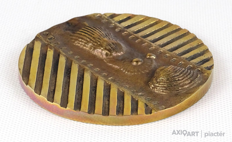[0F946/X043] Hibátlan állapotú, kétoldalas bronz érem. Egyik oldalon felirat: ACHATIUS BARCSAI DE NAGYBARCSA Másik oldalon felirat: ÉREMGYŰJTŐK HAJDÚ-BIHAR MEGYEI SZERVEZETE 1925 - 1988 Jelzés: TS TÓTH S. Szélesség: 4.2 cm Súly: 0.03 kg Tóth Sándor (1933) szobrász szobrász Születési hely: Miskolc Születési dátum: 1933     Mesterei: Hincz Gyula, Pap Gyula, Barcsay Jenő, Kisfaludi Strobl Zsigmond. 1951-1959: Magyar Képzőművészeti Főiskola, mesterei: Hincz Gyula, Pap Gyula, Barcsay Jenő, Kisfaludi Strobl Zsigmond. 1959-ben a művészeti főiskolák Tanácsköztársasági Pályázatának nagydíját nyerte el. 1959-1960-ban a Művészeti Alap ösztöndíjával a hódmezővásárhelyi telepen alkotott. 1961-ben Szegeden telepedett le és 1974-ig a Művészeti Gimnázium tanára. Ezt követően Nyíregyházán kapott műtermet, ahol alkotótevékenysége mellett eredményes szakköröket vezetett. Egy évtizedig volt a szabolcsi művészek szervezetének titkára. Számos szegedi és nyíregyházi szobrászművészt indított el a pályán. 1977-ben kezdeményezte a Nyíregyháza-sóstói Nemzetközi Éremművészeti és Kisplasztikai Alkotótelep alapítását, az Alkotótelepi Tanácsnak indulástól fogva tagja. Főiskolás éveiben 1954-től nyaranta a hódmezővásárhelyi, 1969-ben a zsennyei, 1971-1975 között a villányi, 1973-ban a kecskeméti és oronskói (PL), 1974-1976 között, 1983-ban, 1985-ben, 1991-ben a nyíregyháza-sóstói, 1975-ben a burgaszi (BG), 1976-ban a potsdami (Német Demokratikus Köztársaság) és a zamosci (PL); 1977-ben a rzeszówi (PL), 1988-ban a palangai (Litvánia), a dzintari-i (Lettország) és a zsdennyevoni (UA), 1988-ban a körmöcbányai, 1992-ben a klaipédai (Litvánia) művésztelepen dolgozott. Eredményes munkásságát számos elismerés jelzi: 1962: Szegedi Nyári Tárlat III. díja; 1963: Szegedi Nyári Tárlat II. díja; 1964: Alföldi Tárlat díja, Gyula; 1968: Szegedi Nyári Tárlat díja; 1969: Szocialista Kultúráért; 1970: Békéscsabai Alföldi Tárlat Nívódíja; 1972: Szegedi Nyári Tárlat díja; Szabadka Város díja; 1973: Békéscsabai Alföldi Tárlat Munkácsy Emlékérme; 1974: Firenzei Giorgio Vasari Nemzetközi Éremverseny 3. díja; 1975: Felszabadulási Pályázat III. díja, Hódmezővásárhely; 1982: Munkácsy-díj; 1984: Szegedi Nyári Tárlat díja; 1986: a Magyar Éremgyűjtők Egyesülete az év legszebb egyesületi érme kitüntetése; 1989: Iserlohn Város díja; 1991: VI. Pál pápa ezüst Emlékérme; 1995: Ravenna Város Aranyérme; 1996: Hatvani Portré Biennálé díja; 1997: Hadtörténeti Múzem Kiállítási díja; Szeged Megyei Jogú Város Polgármesteri Hivatala díja. Az 1986-1987-es tanévben az Egri Tanárképző Főiskola tanszékvezető főiskolai tanára volt. Első kiállításain a szobrászati alkotások mellett festmények és rajzok is helyt kaptak. Rézlemez-domborításai és kisplasztikái témáit leginkább családja életéből vette. Realista stílusú - ritkán absztrakt felfogású (Madarak és halak sorozat, 1972) - alkotásai leggyakrabban bronzból készülnek, de jól bánik más anyagokkal is. Korábban gyakran készített terrakotta, mészkő-, márvány- és faszobrokat. Számos köztéri munkát készített, melyek között emléktáblák, emlékművek, büsztök, önálló térplasztikák sorakoznak. Legmonumentálisabb alkotásaként tarjuk számon a máriapócsi Bazilita templom kapuját. Vert és öntött érmeket is készít. Jelentős emlékérmeinek és orvosi vonatkozású érmeinek száma. Forrás: artportal.hu