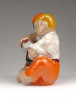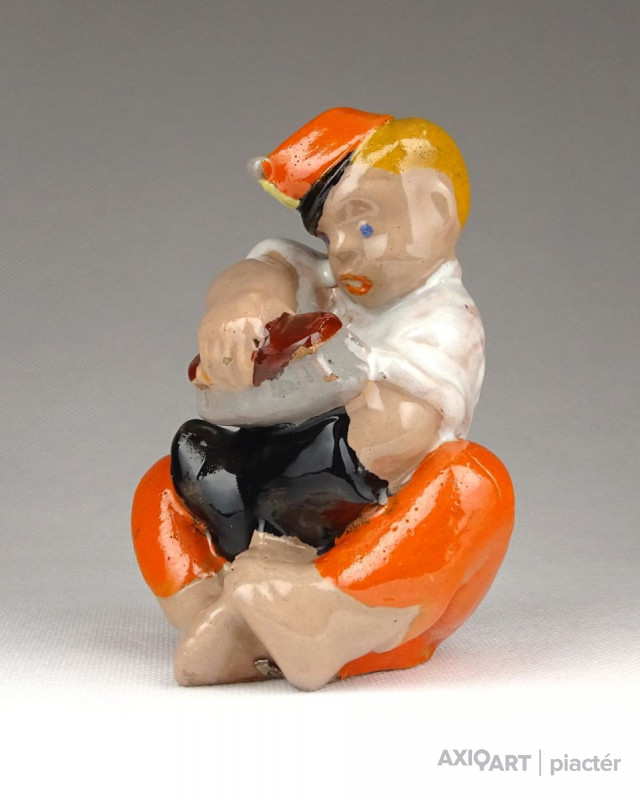 [1A012/BX-9] Régi, hibátlan állapotú, art deco Komlós kerámia figura. Kisméretű, huszárcsizmát fényesítő katona gyerek. Alján gumibélyegzős Komlós jelzés: KOMLÓS KERÁMIA BUDAPEST Mellette címke, rajta felirat: KOMLÓS KERÁMIA BUDAPEST Magasság: 10 cm Szélesség: 7.5 cm Súly: 0.215 kg
