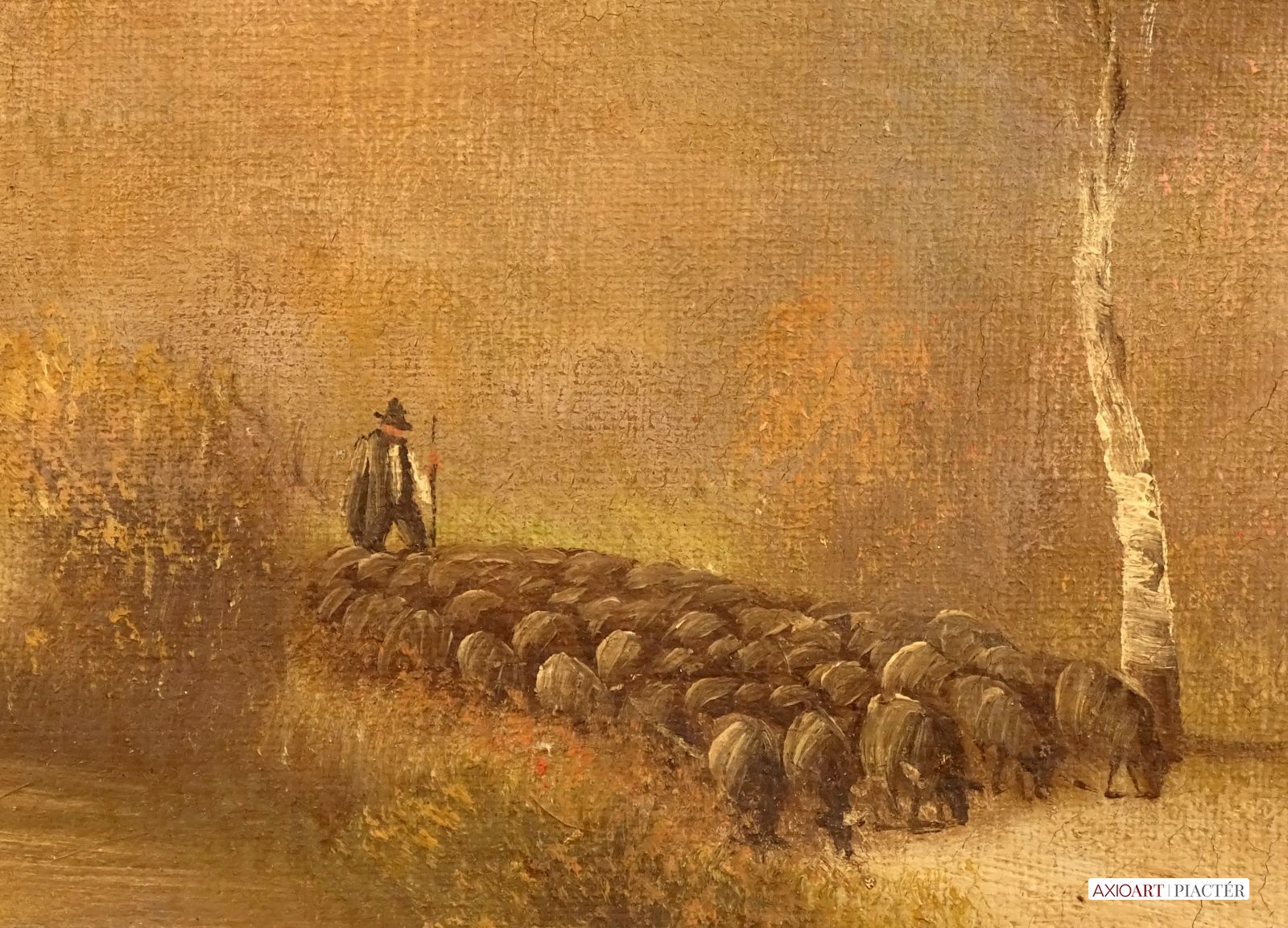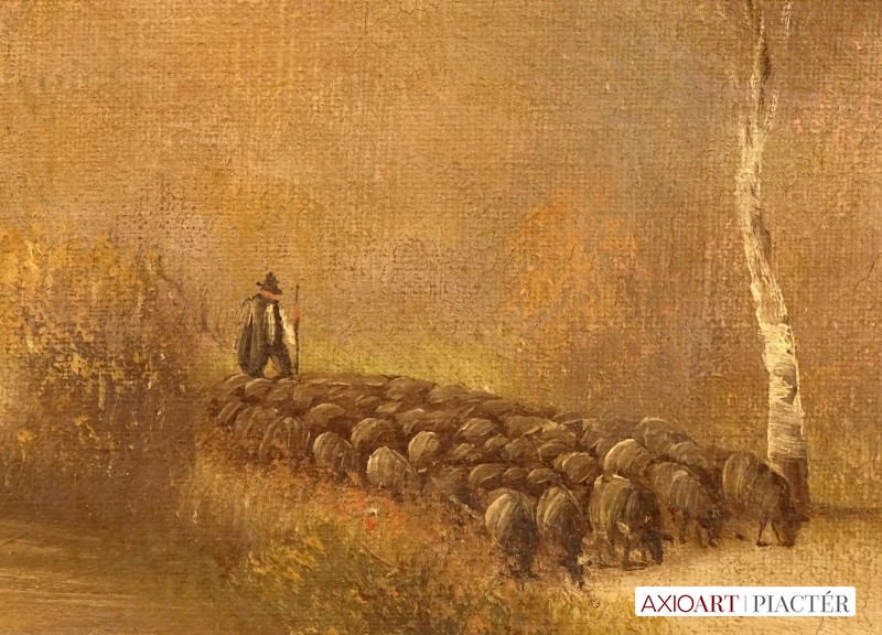 Olaj vászon festmény, széles, hibátlan arany keretben.