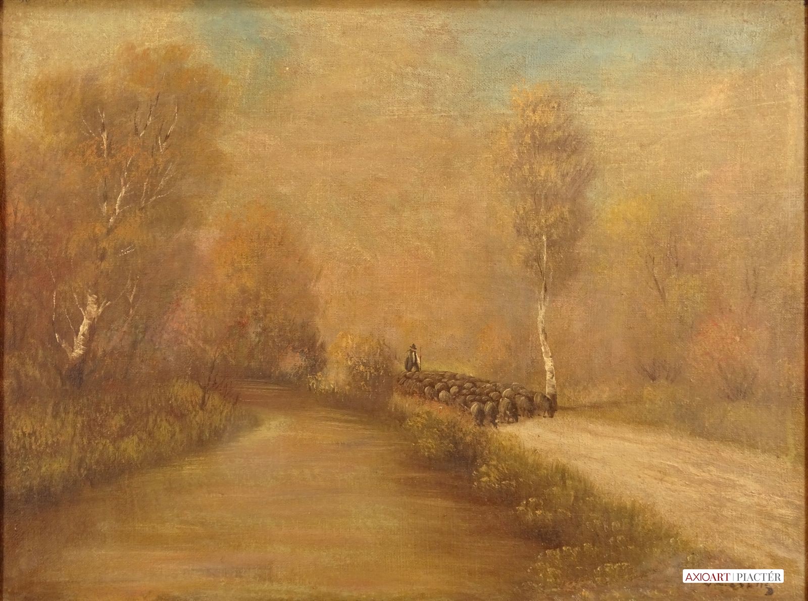 [FK0037/Z018] A kép mérete: 50 x 70 cm keret nélkül. Készült: Olaj, Vászon A kép Paizs László (Szentpéterúr, 1935) alkotása. Jelezve Jobbra lent "P. L." A festmény jó állapotban van. Keret: Ép A festmény hátoldalán a Képcsarnokvállalat címkéje található. Magyar festők és grafikusok életrajzi lexikona I-II. Festő. Tanulmányait a budapesti Iparművészeti Főiskolán végezte 1959-ben. Z. Gács György, Rákosy Zoltán és Szentiványi Lajos növendéke volt. A '60-as évek első felében hagyományosabb felfogású olajképeket festett, mozaikokat, freskókat, utóbb a pop-art körébe tartozó, a francia Arman munkáival rokon műveket alkotott. 1961 óta kiállító művész. Egyéni (Fényes Adolf Terem, Csók Galéria, Műcsarnok, Magyar Nemzeti Galéria, Halászbástya, Bástya Galéria, Vigadó Galéria, Budapest Galéria, Győr, Szombathely, Szeged, Zalaegerszeg, Duisburg, Aix-en-Provence, stb). és vegyes (Ernst Múzeum, Műcsarnok, Óbuda Galéria, Magyar Nemzeti Galéria, Csók Galéria, Vigadó Galéria, Székesfehérvár, Kaposvár, Pécs, Hódmezővásárhely, Firenze, Milano, Padova, Nápoly, Velence, Düsseldorf, Aachen, Genf, stb) tárlatokon vett részt. 1980-ban Munkácsy-díjjal jutalmazták, 1988-ban Érdemes Művész kitüntető elismerésben részesült. Munkáit őrzi a Magyar Nemzeti Galéria, a Fővárosi Képtár, a szombathelyi képtár, a pécsi Janus P. Múzeum, a székesfehérvári István Király Múzeum és a dunaszerdahelyi Kortárs Magyar Galéria. (H.B.: Műv, 1972/4, K.Gy.: Műv. 1977/2, K.G.: Műv. 1978/10, M.L.: Műv, 1983/5, R.G.: Műv, 1987/9, Sz.Gy.: Új Műv. 1995/4, MK) Magyar festők és grafikusok életrajzi lexikona I-II. Műgyűjtők és kereskedők kézikönyve Festő. Tanulmányait a bp.-i Iparművészeti Főiskolán végezte. Mozaikokat ferskókat, utóbb a pop-art körébe tartozó, a francia Arman műveivel rokon műveket alkotott. Mozaikok: a Szegedi Megyei Tanács, a Pécsi Óvoda, a Gödöllői Agrártudományi Egyetem. Freskók: Budapest - Csatárka úti Gyermekotthon. 1971-ben a Fényes Adolf Teremben volt kiállítása, 1983-ban pedig a szegedi Móra Ferenc Múzeumban nagyszabású tárlatokon mutatta be munkáit. 1988-ban érdemes művész kitüntető elismerésben részesült. (MK) Magyar festők és grafikusok adattára Az Iparművészeti Főiskolán végzett 1959-ben. Mozaikokat (Szeged, Megyei Tanács; Pécs, Óvoda; Gödöllő, Agrártudományi Egyetem), freskókat (Budapest, Csatárka úti Gyermekotthon), újabban a pop art körébe tartozó, a francia Arman műveivel rokon műveket alkotott. 1971-ben a Fényes Adolf Teremben nyílt kiállítása. 1983 februárjában a szegedi Móra Ferenc Múzeumban megrendezett nagyszabású tárlaton mutatta be alkotásait. 1988-ban érdemes művész kitüntető elismerésben részesült. - MK Művészeti lexikon I-IV. (Szentpéterur, 1935. dec. 26.- ): festő. Az Iparművészeti Főiskolán 1959-ben végzett Rákosy Zoltán, Z. Gách György és Szentiványi Lajos növendékeként. Épületdiszítő mozaikokat, (Szeged, Megyei Tanács, 1961; Pécs, Óvoda, 1964), műanyagfreskókat (Bp., Csatárka úti Gyermekotthon, 1964) és gobelinterveket készít. Kortárs magyar művészeti lexikon I-III. Festő, szobrász, grafikus. 1959: MIF, mesterei: Z. Gács György, Rákosy Zoltán, Szentiványi Lajos. 1980: Munkácsy-díj; 1988: érdemes művész. Főiskolás éveinek második felében, majd azt követően számos murális munka kivitelezésében vett részt, Fónyi Géza, Konecsni György, Z. Gács György, Rákosi Zoltán és Domanovszky Endre mellett dolgozva. A 60-as évek első felének hagyományosabb fölfogású olajképeket festett. 1964-ben a Velencei B.-n megismerkedett az amerikai pavilonban a pop art Európában akkor még újnak számító törekvésével, és részben ez inspirálta, hogy 1967-ben textil, fém, bőr anyagú "varrottas" képeket küldjön az FKS éves tárlatára; a megnyitó előtt többek között az ő munkáit is eltávolították a falról. A 70-es években pop art-os objekteket (A trónörököspár politikai gyilkosság áldozata lett, 1970, plexiüveg, újság, szarvasbogarak), majd konstruktív, átlátszó plexiüveg plasztikákat készített belső fénytörő határfelületekkel. A 80-as években készültek az anyagában színezett, konstruktív, nagyméretű poliészter szobrai, majd színes poliészter táblaképeket alkotott, mesterségesen roncsolt felületekkel, mintha régészeti leletek vagy atomtámadás utáni festmény-szurrogátumok lennének. Ekkor kezdett organikus plaszikájú bronzszobrokat is mintázni. A 90-es években, a táblaképek és szobrok mellett nagyméretű, egyedi grafikákat készített, formavilágában némileg a roncsolt táblaképekből kiindulva, de szinte kizárólag az emberi alakból elvonatkoztatott torzókat megjelenítve. Ek: 1966: Művészklub, Győr; 1971: Fényes A. T.; 1972: Bercsényi 28-30 G.; 1973: BME B-épület; 1976: Csók G.; 1977: G. Hildebrandt, Duisburg (NSZK); 1979: Bástya G., Halászbástya; Helyőrségi Műv. H., Nagyatád; József A. Műv. Közp., Szeged; Göcsej M., Zalaegerszeg; 1982: Bezzegh G., Küsnacht (CH); 1983: Móra F. M., Szeged; 1987: Műcsarnok (kat.); MNG; 1988: Pandora G., Badacsonytomaj; 1989: Parktheatter, Iserlohn (NSZK); Qualitas G.; Hevesi S. Színház, Zalaegerszeg; 1990: Vasarely Fondation (Ferdinánd Judittal, Fóth Ernővel), Aix-en-Provence (FR); 1994: Vigadó G.; 1997: Pest Center G.; 1998: Budapest G. (kat.); 1999: Pest Center G. (kat); G. Arcis, Sárvár; MMA, Bp.; 2001: SZK, Szhely; Ernst M. (kat.) Vcsk: 1961, 1964, 1966: FKS, Ernst M.; 1962: 9. Magyar Képzőműv. kiállítás, Műcsarnok; 1967: Mai magyar festészet, Új-Delhi; 1969: Vas megyei művészek, Savaria M., Szhely; V. Orsz. Grafikai B., Miskolc; 1971: Új művek, Műcsarnok; 1972: Fiatal művészek Budapestről. Likovni Salon, Újvidék (YU); 1972, 1973: Balatonboglár