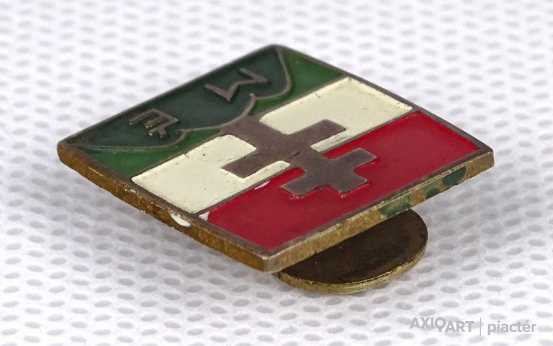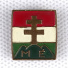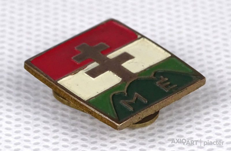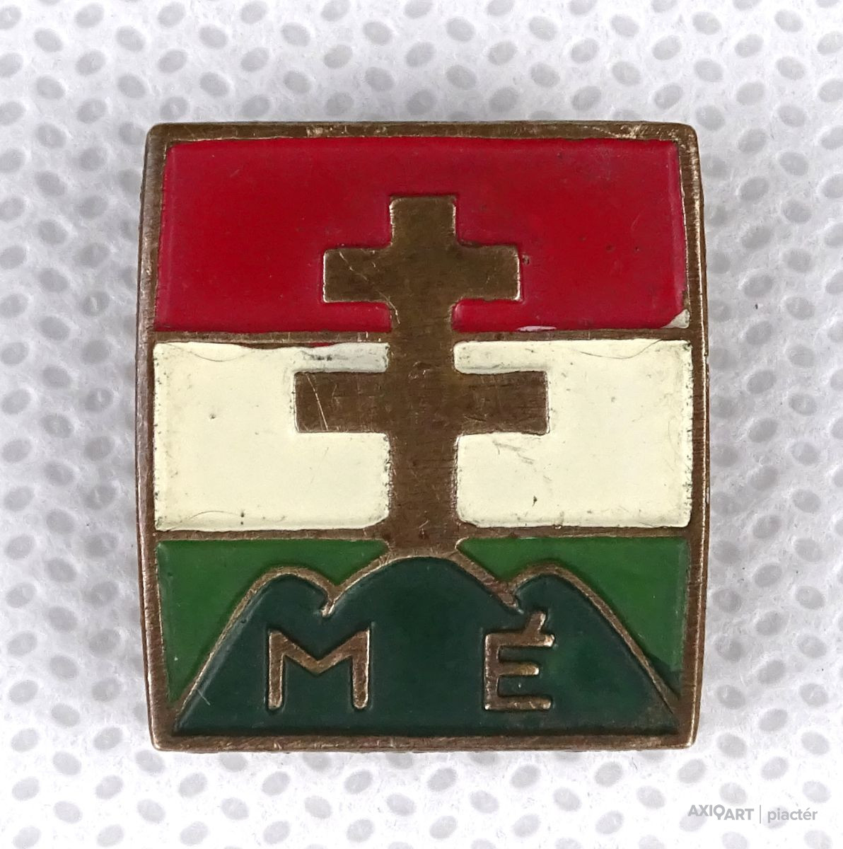 [1Q199/X024/16] Régi, hibátlan állapotú, jelzett, zománcozott bronz gomblyukjelvény, kitűző, az 1930-as évekből. Rajta a hármas halom és kettős kereszt, trikolór háttér előtt, felirat: M É (M.É. Magyar Élet) Hátulján jelzés: LUDVIG BP. Magasság: 1.95 cm Szélesség: 1.8 cm Súly: 0.003 kg Magyar Élet Pártja Magyar Élet Pártja: az 1939-1944 közötti →kormánypárt a →Képviselőházban. 1939. márc.7-én alakult a →Magyar Élet Mozgalom beolvadásával az addigi korm.pártba, a Nemzeti Egység Pártjába, az utóbbi febr.22-i orsz. értekezletének határozata alapján. A máj.28-29-i →pünkösdi választásokon 187 mandátumot szerzett, ami 72%-os parlamenti többséghez juttatta. Képviselőcsoportjának pol. összetételében visszaszorult a bethleni konzervatív irányzat, csak 19 olyan képviselő maradt, aki az 1931-es választások során szerzett mandátumot, viszont mintegy 100 olyan jobb- vagy szélsőjobboldali képviselő került be, aki a n. orientáció és a bel-pol. fasizálódás híve volt. Ez súlyos tehertételt jelentett a →Teleki-, →Kállay- és →Lakatos-kormány számára, mert a nyilaspártokkal megerősödött ~ határozta meg a tv.hozás arculatát a háború egész időtartama alatt. 1944 őszén a ~ alkotta a →Törvényhozók Nemzeti Szövetsége pol. bázisát.  Forrás: https://www.arcanum.com/hu/online-kiadvanyok/Lexikonok-magyarorszag-a-masodik-vilaghaboruban-lexikon-a-zs-F062E/m-F0B8D/magyar-elet-partja-F0B9D/