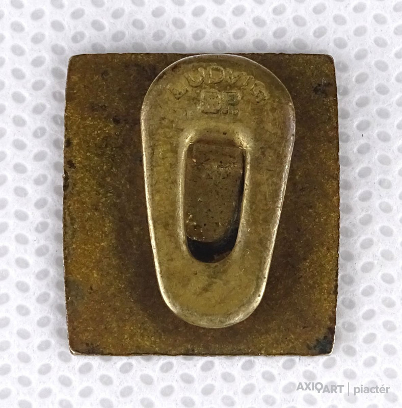 Régi, hibátlan állapotú, jelzett, zománcozott bronz gomblyukjelvény, kitűző, az 1930-as évekből.