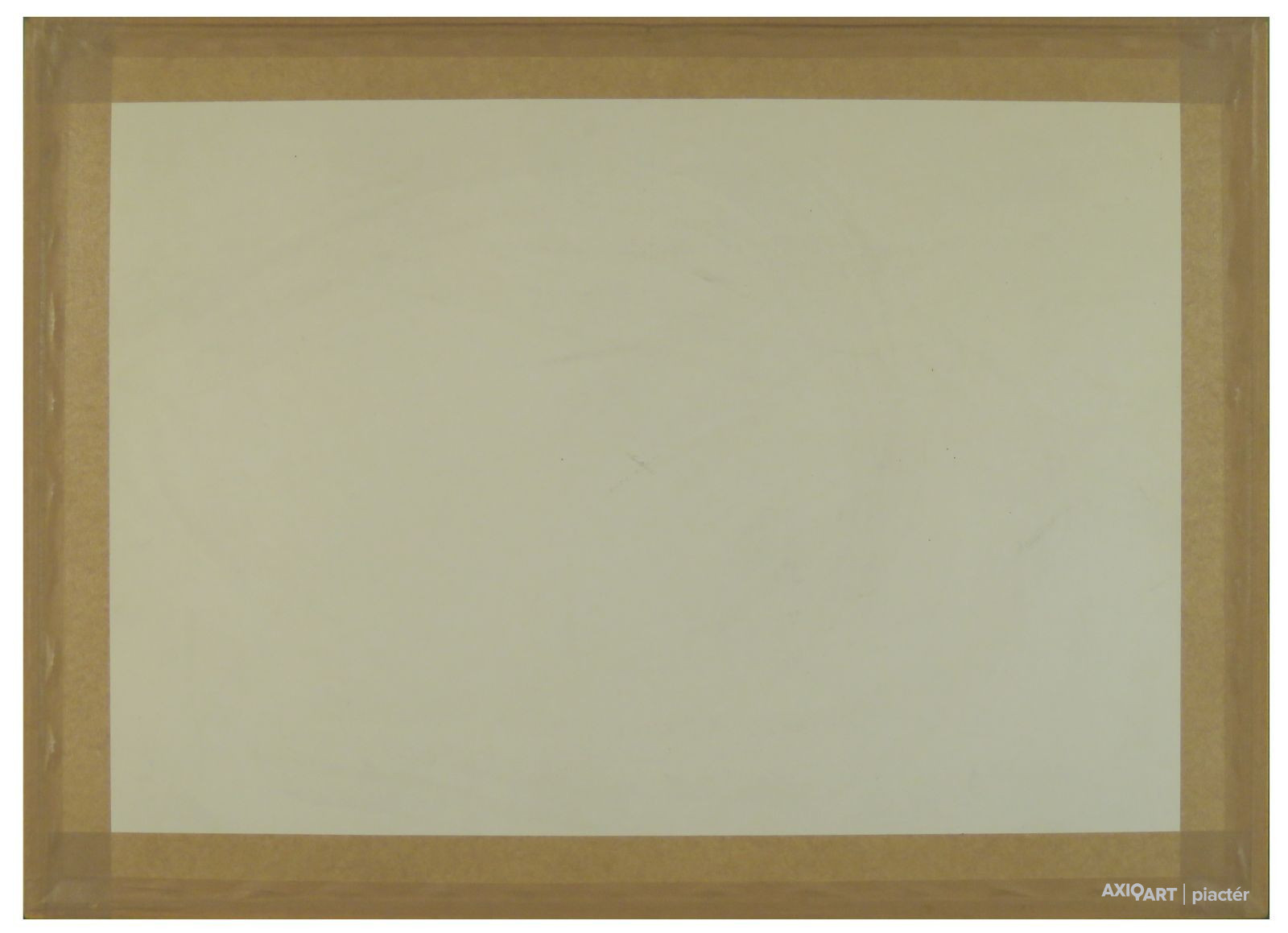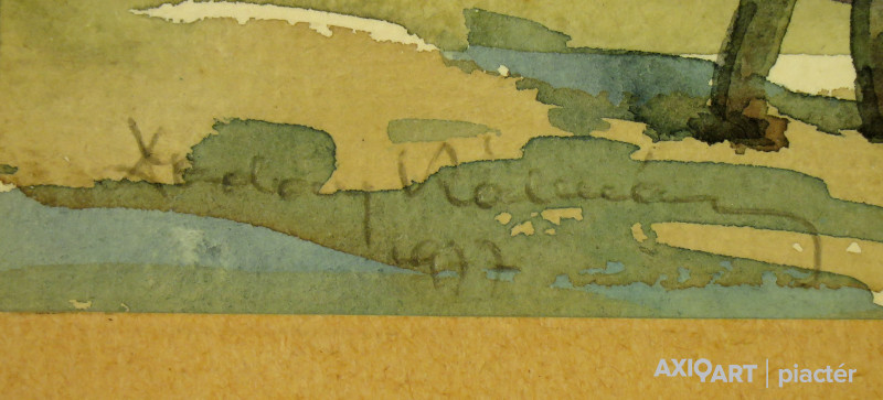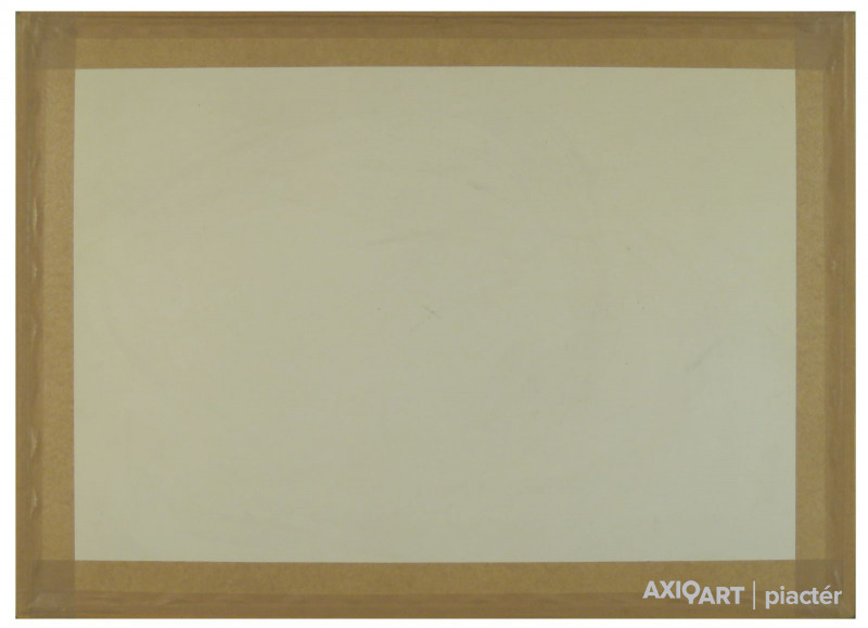 [FKA431/Bp305/89] A kép mérete: 14,5 x 13 cm keret nélkül. Készült: Akvarell, Papír A kép Hajdú László (Léva, 1938) alkotása. Jelezve jobbra fent "Hajdú L. 81" A festmény jó állapotban van. Keret: Ép Kortárs magyar művészeti lexikon I-III. Festő. Léva, 1938. dec. 17. 1957-63: MKF, mesterei: Domanovszky Endre, Kádár György, Barcsay Jenő. 1964-ben Stuttgart; München; 1971-ben Francia-, Olaszország; 1977-ben Pocitelju (YU) Nközi Művésztelep; 1965-82 között adriai-, égei-, földközi-tengeri utazásokat tett. 1966-69 között Derkovits-ösztöndíjas. 1984-ben elnyerte a Szentendrei Grafikai Műhely nagydíját. Alapító tagja a Szentendrei Grafikai Műhelynek, az Art'éria Galériának. 1989-től 1991-ig a Belvedere c. művészeti folyóirat képszerkesztője. 1968-tól Szentendrén él. Soha nem a naturalisztikus formától vagy konkrét tájélményből indul el a lírai absztrakt foltfestészet felé, hanem a természeti erők: víz, levegő, föld formáját kutatja. A 80-as évekre egy új tendencia mutatkozik az oeuvre-ben: az érzékeny, indulatosan megfestett felület mögül idolok, ferde tornyok sejlenek fel, sarkukra állított négyzetek állnak a pszeudohorizonton. A 90-es évek elején összefoglaló igényű kiállítást rendez a budapesti Francia Int.-ben, neogeometrikus sorozataiban Saint-John Perse gondolataira hivatkozva. Ezeken a munkákon mediterrán hangulatú emlékanyagra utalnak a mértanias formák. Négyzetei nem síkgeometriai jelek, hanem kultúrhistóriai szimbólumok. A 90-es évek derekára Hajdú festészete egyre filozofikusabbá válik. Tábláin okkerek, sárgák, szürkék különféle árnyalatai töltik ki a képmezőt. A felületet sötét, határozott vibrálások, diagonálisok, horizontális rendek tagolják. Archetipikus hangulatú munkáinak legjellemzőbb vonása a tér virtuális felosztása. Hajdú piktúrája mégis tartalmat szociális vonatkozásokat, amennyiben festészetét a monetáris világ elleni halk, de határozott tiltakozásnak tekinti. Ek.: 1975: Művésztelepi G., Szentendre, (kat.); 1977: Műcsarnok (kat.); 1986: Hotel Kastély G., Szirák; 1989: Dorottya u.-i G. (kat.); 1990: Francia Int., Bp., (kat.); 1991: Kunstsammlungen der Stadt Limburg (Farkas Ádámmal és Regős Istvánnal); 1992: Art'éria G., Szentendre; 1996: Kanzlei Gartner; Stübel, Baumann & Partner, Stuttgart; 1997: Kaposfüredi G., Kaposfüred. Vcsk: 1966: Stúdió '66, Ernst Ml; 1971: Új művek, Műcsarnok; 1976: Szentendrei Művészet, MNG; 1978: Festészet '77, Műcsarnok; 1983: Szentendrei Tárlat, Szentendrei Képtár, Szentendre; 1985: El Studio Grafico de Szentendre, Madrid; 1985: Szentendrei Tárlat, Szentendrei Képtár; 1986: Delmenhorst Zeitgenössische Kunst aus Ungarn; 1987: Art'éria G. kiállítása, Stadtm., Woerden (NL); Szentendrei Tárlat, Szentendrei Képtár, Szentendre; 1990: Otto Nagel, Hans der Staatlichen M., Berlin; 1993: Szentendre művészete, G. Contact, Böblingen (D); Az Art'éria művészei, Vigadó G.; 1996: Az én Múzeumom, A Vass-gyűjtemény, Ernst M.; 15 magyar művész, Hans Des Deutschen Oftens, München. Mk: Dajmanich J. M., Szolnok; Ferenczy M., Szentendre; MNG; Nközi Modern M., Hajdúszoboszló; R. Riz Collection, Bolzano; Kim Colleciton, Szöul. Km: mozaik (1970, Lábatlan, Papírgyár); gobelin (1970, Lábatlan, Papírgyár); mozaik (1983, Bp., Pest megyei Köjál) Irod.: Mucsi A.: Előszó Hajdú kiállításához (kat., bev., Szentendre, 1975); Mucsi A.: Előszó Hajdú kiállításához (kat., bev., Műcsarnok, 1977); Horváth Gy.: Hajdú képei a Műcsarnokban, Új Tükör, 1977. márc. 6; Hann F.: Mai mitológiák Hajdú kiállítása a Dorottya utcában, Belvedere, 1989/2; Wehner T.: (kat., előszó, Dorottya u. G.); Van Dam J.: Utazás a háromszög körül. Hajdú képeiről, MŰV. 1989/9; Hann F.: (kat., előszó, Francia Int., Bp.); Hann F.: HL-GEO, Playboy G., 1993; Wehner T.: Ék-képek. Hajdú festészetéről, Kortárs, 1994/7.; Sík Cs.: Mégsem veszett el. Hajdú retrospektív katalógusa, 1996; Krimmel G.: Helyzetek és érzetek. Hajdú festészete, ÚJ, 1997. máj-jún. Portréfilm: Gulyás J.: Hajdú kiállítása a Kaposfüredi Galériában MTV, 1997 (H.F.) Magyar festők és grafikusok életrajzi lexikona I-II. Műgyűjtők és kereskedők kézikönyve Léva, 1938 - Festő. Székesfehérvárott Áron Nagy Lajos szakkörében ismerkedett meg a rajzolás és festés alapelemeivel. A bp.-i Képzőművészeti Főiskolán Domanovszky Endre és Kádár György tanítványa volt. A főiskola után két évig általános iskolában tanított. 1969 óra Szentendrén dolgozik és azóta szerepel különböző hazai és külhoni tárlatokon. Sokszor szerepelt országos tárlatokon, Stúdió Kiállításokon. 1974-ben bemutatkozott Párizsban is, a fiatal magyar festők tárlatán. 1967-1970 k. Derkovits-ösztöndíjban részesült. Színgazdag műveinek tárgya a természet és a tenger. Lendületes ecsetvonásokkal alakít ki vibráló, lüktető foltokat. Festői előadása a nonfiguráció kereteiben mozog. Táblaképei mellett jelentősek kárpitjai, kék, fekete, szürke, barna színekre komponált faliszőnyegei. Mozaiktervezéssel is foglalkozik. (MÉ, M.M.: Műv.-1970/9, K.Gy.: műv.-1970/10, Máv.-1977/1) Magyar festők és grafikusok életrajzi lexikona I-II. Léva, 1938 - Festő. Székesfehérvárott Áron Nagy Lajos szakkörében ismerkedett meg a rajzolás és festés alapelemeivel. A budapesti Képzőművészeti Főiskolán Domanovszky Endre és Kádár György tanítványa volt. A főiskola után két évig általános iskolában dolgozott, mint pedagógus. 1968 óta Szentendrén dolgozik és azóta szerepel hazai és külhoni tárlatokon. Sokszor szerepelt országos bemutatókon, Stúdió kiállításokon. 1974-ben bemutatkozott Párizsban is, a fiatal magyar festők tárlatán. 1967-1970 között Derkovits-ösztöndíjban részesült. Német-, Francia-