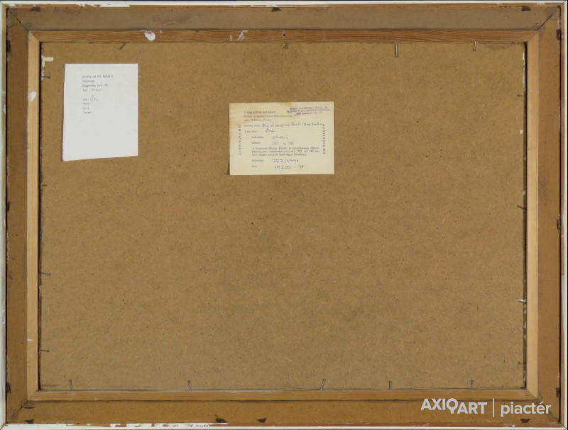 [FK2668/Bp301/4] A kép mérete: 50,5 x 80,5 cm keret nélkül. Készült: Olaj, Vászon A kép Moldován István (Kolozsvár, 1911) alkotása. Jelezve Jobbra lent "Moldován István" A festmény jó állapotban van. Keret: Ép A festmény hátoldalán a Képcsarnokvállalat raglapja láltható. Magyar festők és grafikusok életrajzi lexikona I-II. Festő. Tanulmányait Kolozsvárott, a Szépművészeti Főiskolán kezdte 1930-ban. A következő esztendőben a nagybányai Szépművészeti Iskolában Thorma János és Krizsán János korrektúráján képezte magát. 1931-ben a budapesti Képzőművészeti Főiskola hallgatója lett. Réti István, később Szőnyi István volt a mestere. Már mint főiskolás sok díjat és kitüntetést nyert. 1948-ban megkapta a római ösztöndíjat, de lemondva róla, Erdélybe ment. 1948-1950 között Erdélyben élt, és népművészetben gazdag vidékein festett. 1943-ban Kolozsvárott, 1946-ban Gyöngyösön, 1955-ben, 1959-ben és 1962-ben a Kulturális Kapcsolatok Intézetében, illetve a Csók Galériában rendezett egyéni bemutatókat. Ezen kívül több Európai országban, az USA-ban, Kanadában és Indiában is bemutatta munkáit. Eleinte sajátos atmoszférájú, lírai tájképeket, eleven színvilágú képmásokat festett, később mondernebb, erőteljesebben szerkesztett művekkel jelentkezett. A Pécsi Tanárképző Főiskola számára mozaikot készített. Erdély szerelmese volt. A székely népművészet gazdag formavilágának hatása döntő jelentőségűvé vált sokoldalú művészetében. Műv. díjak: a Szinyei Társaság elismerő oklevele, a Főváros festészeti-díja, "Kolozsvár a képzőművészetben" II. díj, állami ösztöndíj, római ösztöndíj, a Képzőművészek Szövetsége Észak-Magyarországi festészeti díja, SZOT festészeti díj. Több murális művet (mozaik) alkotott. A Magyar Nemzeti Galéria több alkotását őrzi. (M. L.: Műv. 1967/6, RI-NM) Magyar festők és grafikusok életrajzi lexikona I-II. Műgyűjtők és kereskedők kézikönyve Festő. Tanulmányait a kolozsvári Szépművészeti Főiskolán kezdte 1930-ban. A nagybányai szabadiskolában is megfordult. Itt Thorma János és Krizsán János korrektúráján képezte magát. 1931-ben Budapesten a Képzőművészeti Főiskola hallgatója lett. Réti István, később Szőnyi István volt a mestere. Már mint főiskolás sok díjat nyert. 1948-ban megkapta a római ösztöndíjat, de lemondva róla, Erdélybe ment. 1948-1950 k. Erdélyben élt, és népművészetben gazdag vidékein festett. 1943-ban Kolozsváron, 1946-ban Gyöngyösön, 1955-ben, 1959-ben és 1962-ben a Kulturális Kapcsolatok Intézetében, illetve a Csók Galériában rendezett önálló kiállítást. Ezen kívül több Európai országban, az USA-ban, Kanadában és Indiában is bemutatta műveit. Eleinte sajátos atmoszférájú, lírai tájképeket, eleven színvilágú képmásokat festett, később mondernebb, erőteljesebben szerkesztett művekkel jelentkezett. A Pécsi Tanárképző Főiskola számára mozaikot készített. Erdély szerelmese volt. A székely népművészet gazdag formavilágának hatása döntő jelentőségűvé vált sokoldalú művészetében. 1942-ben megkapta a Szinyei Társaság elismerését, és a Főváros festészeti-díjat,1943-ban elnyerte a "Kolozsvár a képzőművészetben" c. díjat. 1947-ben állami ösztöndíjat,1948-ban a római ösztöndíjat, 1972-ben a Képzőművészek Szövetsége Észak-Magyarországi festészeti díját kapta meg. A MNG több művét őrzi. (M. L.: Műv.-1976/6) Magyar festők és grafikusok adattára Tanulmányait Kolozsvárott a Képzőművészeti Főiskolán, majd Nagybányán Thorma János és Krizsán János irányítása mellett kezdte, 1931-től Budapesten megszakításokkal a Képzőművészeti Főiskolán Réti István és Szőnyi István növendékeként fejezte be. 1949-ben és 1950-ben ösztöndíjjal dolgozott Erdélyben, majd hosszú tanulmányutakra indult Nyugat-Európába, az Egyesült Államokba, s a Szovjetunióba. Először Kolozsvárott lépett a nyilvánosság elé 1943-ban, majd 1946-ban Egerben és Gyöngyösön, 1947-ben Miskolcon, 1948-ban Hatvanban, 1955, 1961 és 1981-ben a Csók Galériában, 1959-ben a KKI-ben, 1960-ban Nagykanizsán, 1963-ban Kiskunfélegyházán, 1966-ban Debrecenben, 1969 és 1975-ben Békéscsabán, 1971-ben a Mednyánszky Teremben, 1973-ban Gyöngyösön és Debrecenben, 1977-ben Egerben, 1979-ben Veszprémben, 1983-ban Miskolcon, 1984-ben Csepelen, 1986-ban a Vigadó Galériában rendezett önálló kiállítást. Külföldi kiállításai: Moszkva, Varsó, India, Szófia, Párizs, Bukarest, Belgrád, New York, Montreál és Toronto. Eddig közel kétezer színes táblaképet festett, de szívesen foglalkozik mozaikkészítéssel is. 1964-ben a Pécsi Pedagógiai Főiskola, 1968-ban a Salgótarjáni Kórház, 1969-ben a názáreti templom és 1970-ben a Videoton Vállalat díszterme részére mozaikot készített. - Erdély szerelmese. A székely népművészet gazdag formavilágának hatása döntő jelentőségűvé vált festészetében. Olyan formanyelvet alakított ki magának, amely színvilágában és summázó formaalakításában sajátos erdélyi zamat érződik, ugyanakkor korszerűen modern is konstruktivista stílusa. Munkásságát 1942-ben a Szinyei Társaság elismerésével és a Fővárosi festészeti-díjjal, 1943-ben Római-ösztöndíjjal, 1947-ben Állam ösztöndíjjal (Románai), 1963-ben a SZOT festészeti-díjával, 1972-ben a Képzőművészek Szövetsége Észak-Magyarországi festészeti-díjával tüntették ki. - Irod.: Bíró Béla: Kolozsváry Moldován István. Erdélyi Helikon, 1943.; Felvinczi Takács Zoltán: Kolozsváry Moldován István. Kolozsvár, 1943.; Dutka Mária: Magyar Nemzet, 1961.; Maksay László: Moldován István. Művészet, 1965.; D. Fehér Zsuzsa. Moldován István, Bp. 1971.; Theisler G