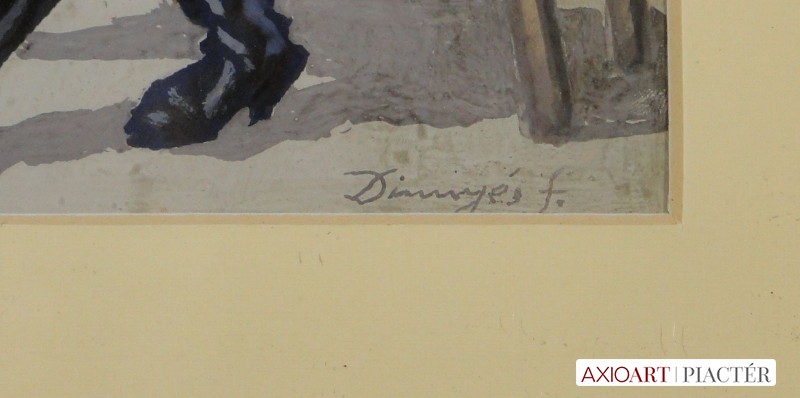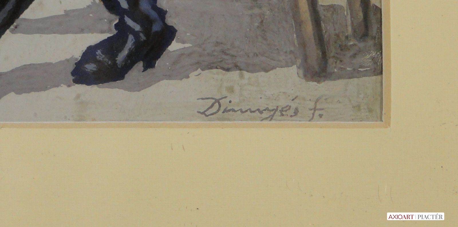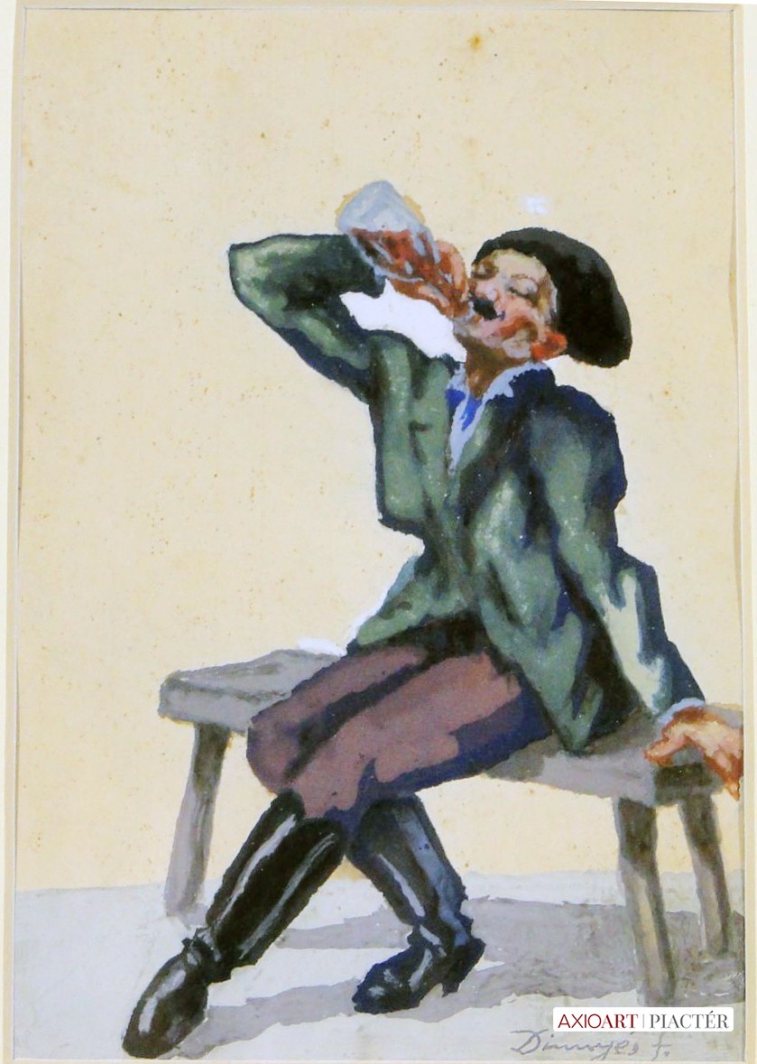Dinnyés Ferenc : Mulatozó akvarell papír
