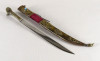 Díszes rézveretes kőberakásos indiai kard díszkard tokjában 58 cm